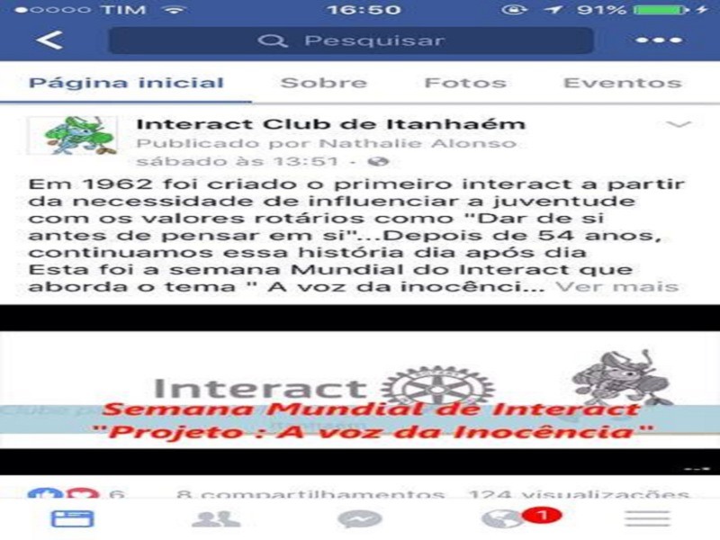 A semana do dia 05/11, foi a semana Mundial do Interact que aborda o tema A voz da inocência , onde cada clube de interact irá fazer um projeto!