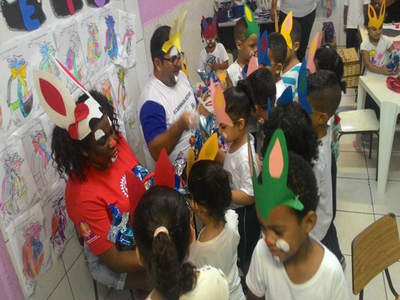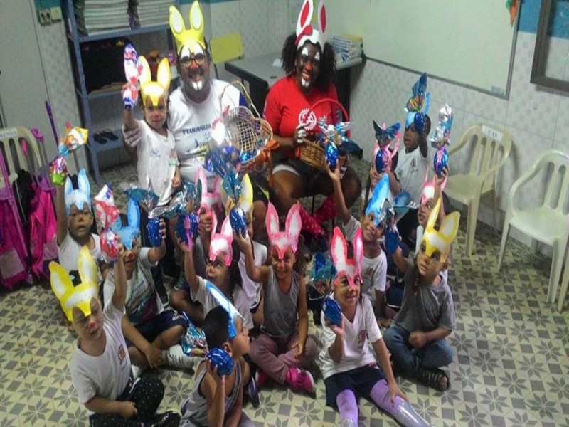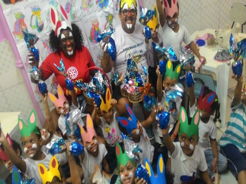 Foi uma tarde de alegria quando a presidente Iracema do Rotary Club de Santos Vila Belmiro juntamente com voluntário da entidade Cruzada das Senhoras Católicas Juvenal se transformaram em coelhinhos da Páscoa.