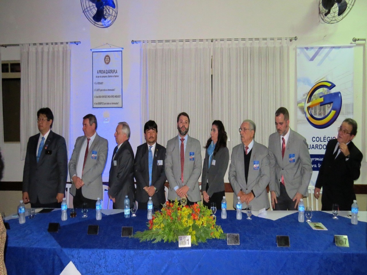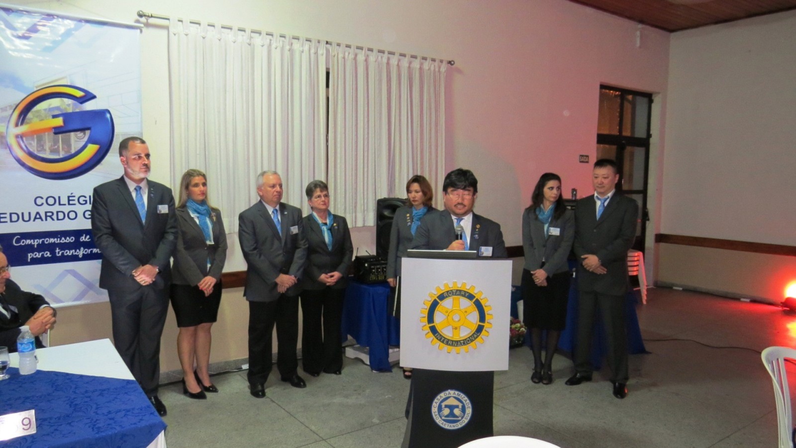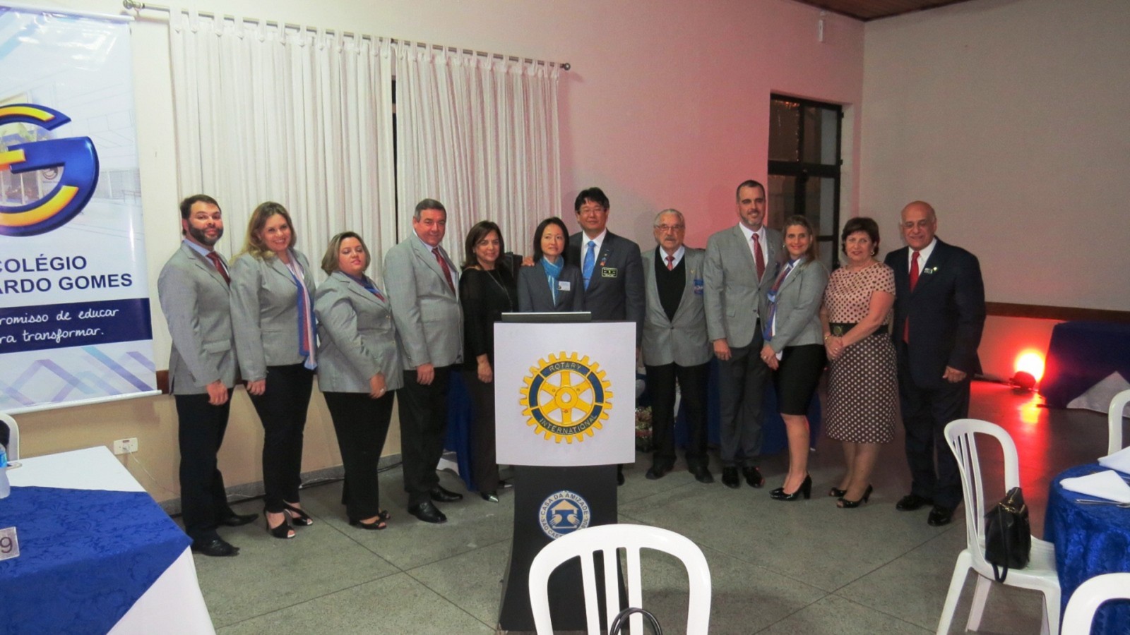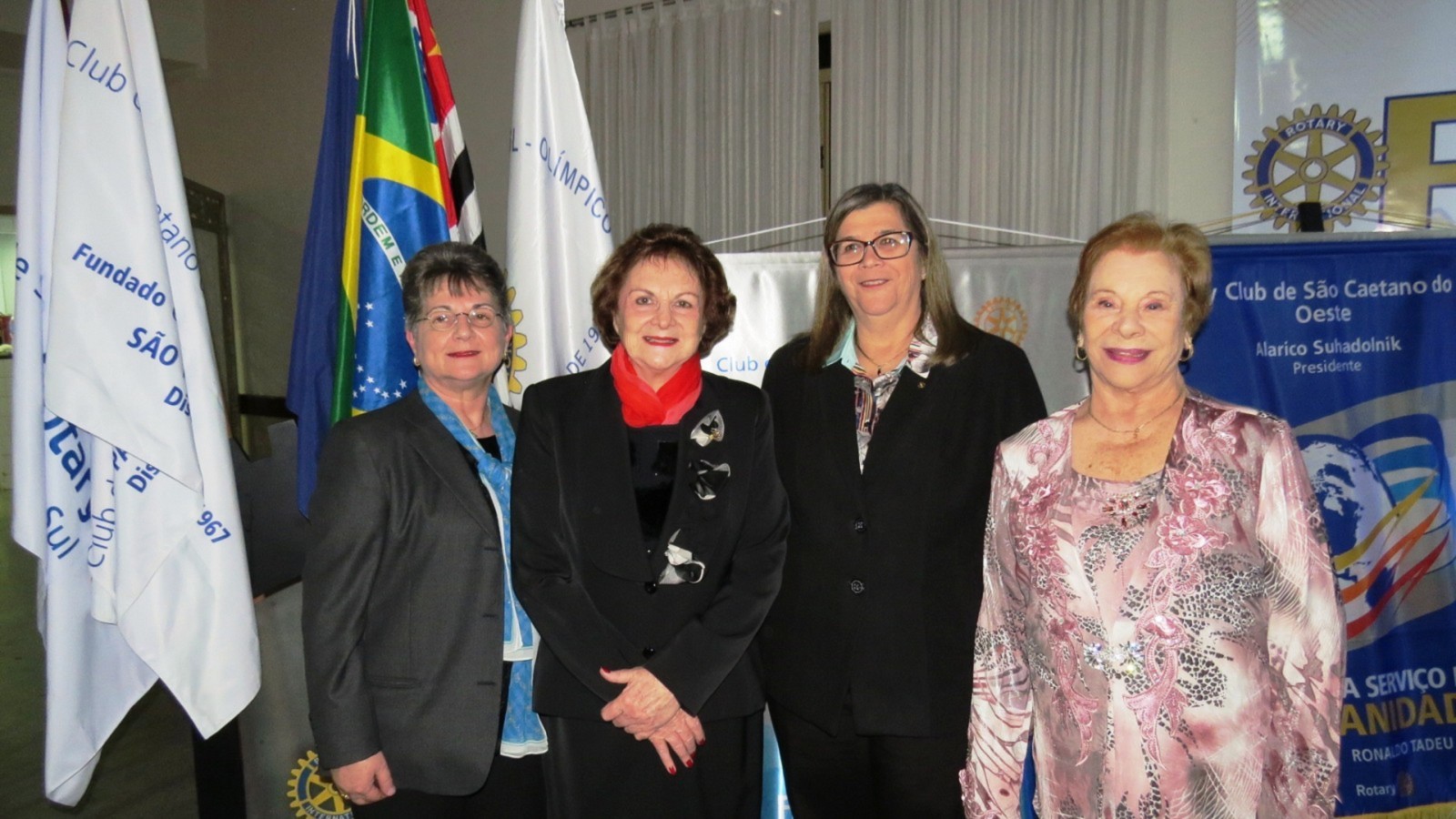Em concorrida reunião festiva, realizada no Salão Nobre da Casa da Amizade de São Caetano do Sul, na noite do último dia 24 de junho de 2017 , mais de 150 pessoas, entre rotarianos e convidados, prestigiaram o evento, onde ocorreu a transmissão de cargo dos 4 presidentes dos Rotary Clubs de São Caetano do Sul. Com a presença do casal governador do Distrito 4420, Marie e Cláudio Hiroshi Takata, os presidentes humanitários, gestão 2016-2017, Alessandro Arnoni (R.C. São Caetano do Sul), Alarico Suhaldonik (R.C. S.C.Sul Oeste), Marcos Viola (R.C. S.C.Sul Leste) e Rodrigo Feola (R.C. S.C.Sul Olímpico), transmitiram o cargo de presidentes, respectivamente, para Jorge Ishi, Sandra Scarpin, Donizeti Moretti e Rodrigo Feola (que continua no cargo no R.C. S.C.Sul Olímpico), para gerirem seus clubes no ano rotário 2017-2018, seguindo o novo lema rotário 2017-2018, O ROTARY FAZ A DIFERENÇA. Na ocasião, discursou em nome dos novos presidentes, Jorge Ishi, do Rotary Club de São Caetano do Sul, parabenizando os presidentes humanitários 2016-2017 pela brilhante gestão e pelos grandes feitos realizados em prol da comunidade sulsancaetanense. O Governador do Distrito 4420 do Rotary International (que abrange os Rotary Clubs situados na região sul da cidade de São Paulo; os Rotary Clubs da região do Grande ABC e da baixada santista), Cláudio Hiroshi Takata e sua esposa Maria (ambos associados ao Rotary Club de São Paulo Aeroporto), em seu discurso de encerramento, parabenizou os presidentes dos Rotary Clubs de São Caetano do Sul, pelos feitos no ano rotário 2016-2017 e destacou algumas metas para o ano rotário 2017-2018 e agradeceu a presença de muitos outros presidentes de Rotary Clubs do Distrito 4420 que prestigiaram essa festiva. Encerrando sua fala, Cláudio Takata lembrou a importância dos Rotary Clubs de São Caetano do Sul, solicitando que todos os rotarianos continuem desempenhando seu papel de contribuir para um mundo melhor, auxiliando comunidades carentes e, especialmente nesse ano rotário, FAZENDO A DIFERENÇA, no que foi muito aplaudido ao final de sua fala. Encerrando a parte protocolar, os presidentes 2016-2017 deram juntos, a última badalada no sino rotário e na sequencia os presidentes 2017-2018 deram, também juntos, a primeira badalada no sino e partiram para a troca dos banners de suas gestões. Encerrando o evento, foi servido aos presentes um delicioso jantar, seguido de um café colonial, coroando mais um evento rotário, com muito companheirismo e amizade.