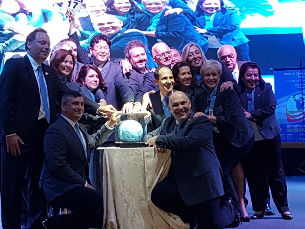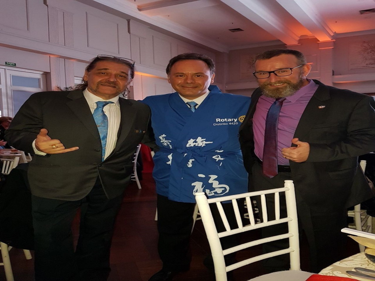 Cerimônia de Transmissão e Posse da Governadoria do Distrito 4420, em São Paulo. Iniciando o evento os governadores Ronaldo Varella e Claudio Takata, acompanhados dos Governadores Assistentes 2017-18 efetuaram a cerimônia da quebra da tampa do barril de sakê, que na tradição japonesa proporciona boa sorte para o período que se inicia.
