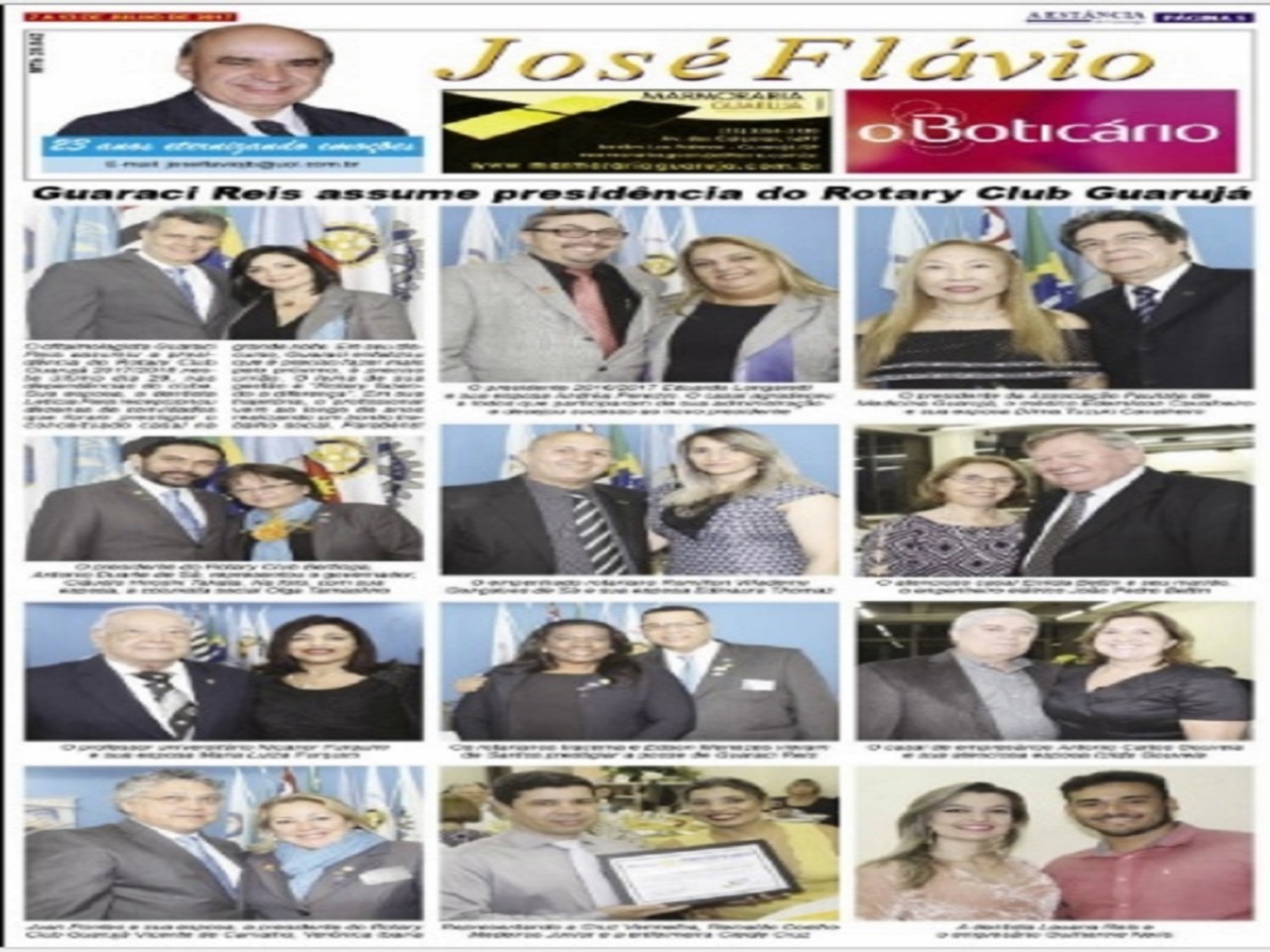 A posse do Rotary Club de Guarujá do presidente Guaraci Reis foi destaque na Coluna Social de José Flavio do Jornal A Estância do Guarujá
