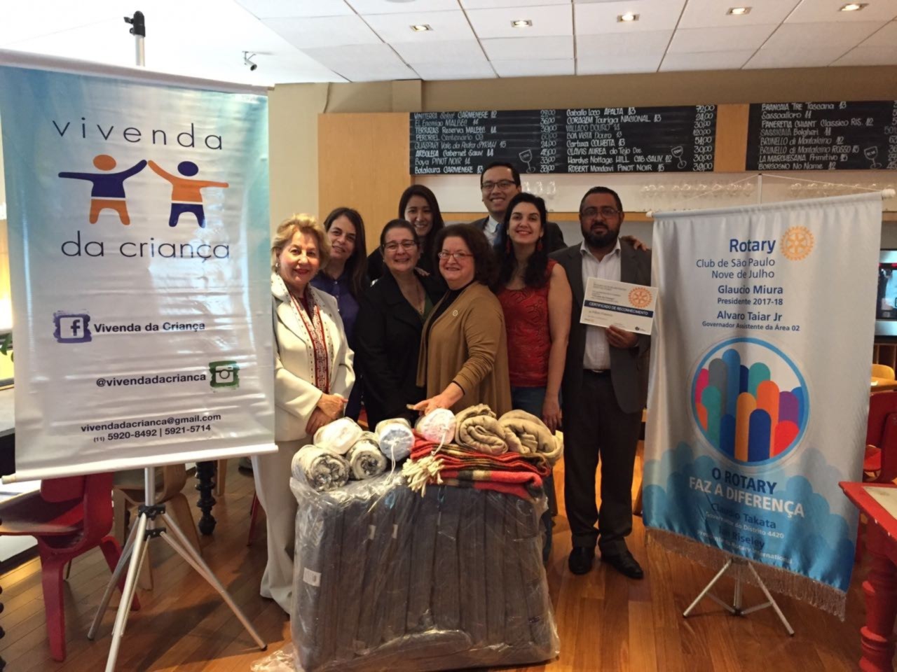 Fábio Fonseca, responsável pela captação de recursos da Vivenda da Criança falou-nos sobre o trabalho da entidade. O RCSP Nove de Julho já foi parceiro e respeitamos muito o trabalho dessa instituição. E hoje, mais uma vez juntos, participamos da campanha de arrecadação de cobertores para atender mais de 1000 famílias.