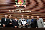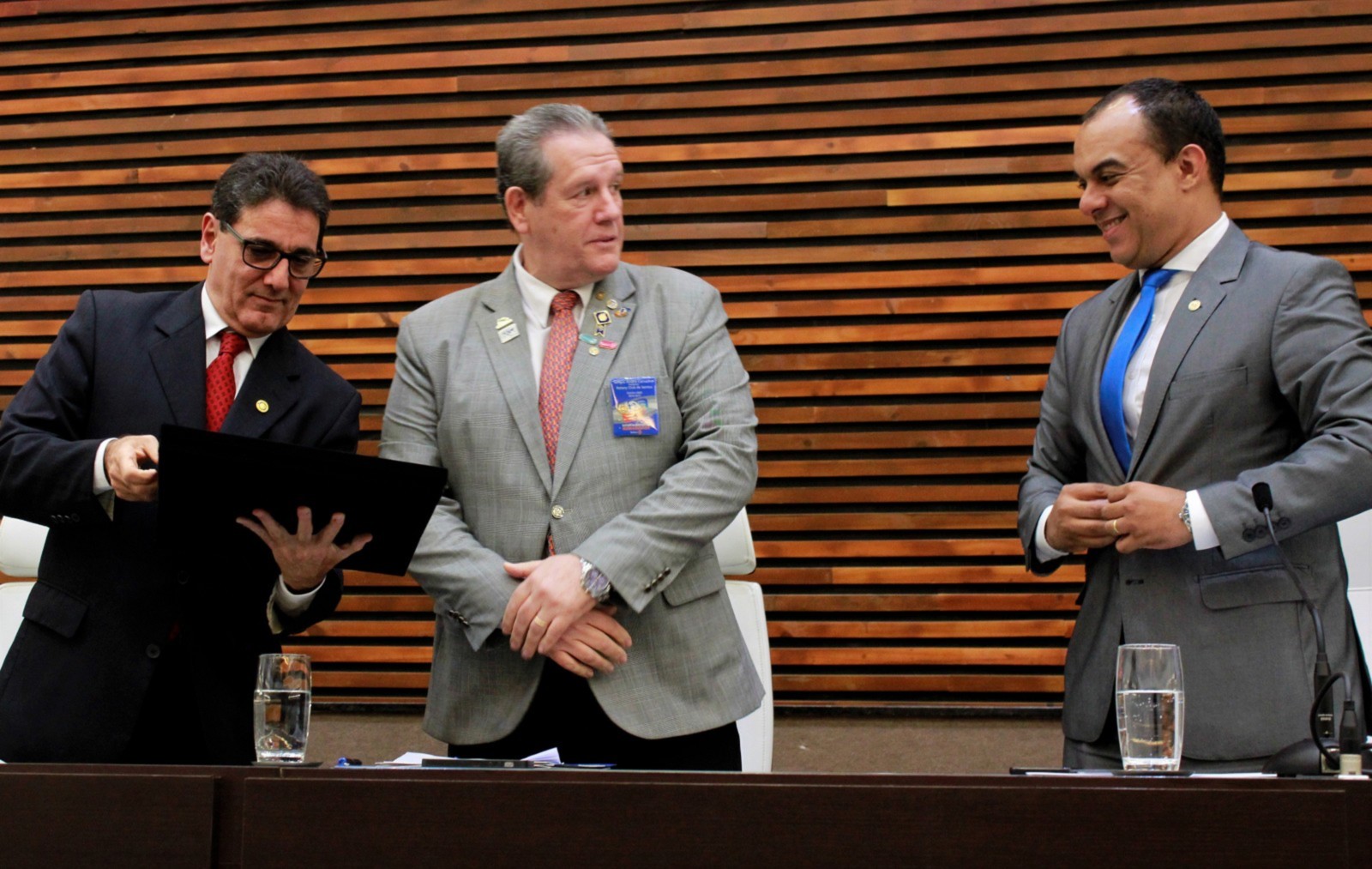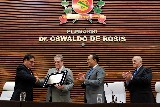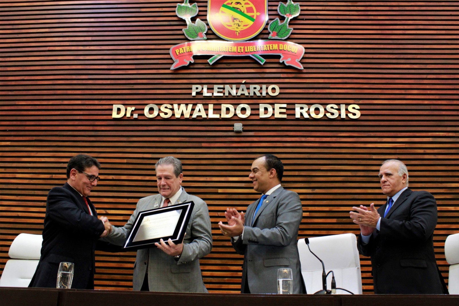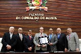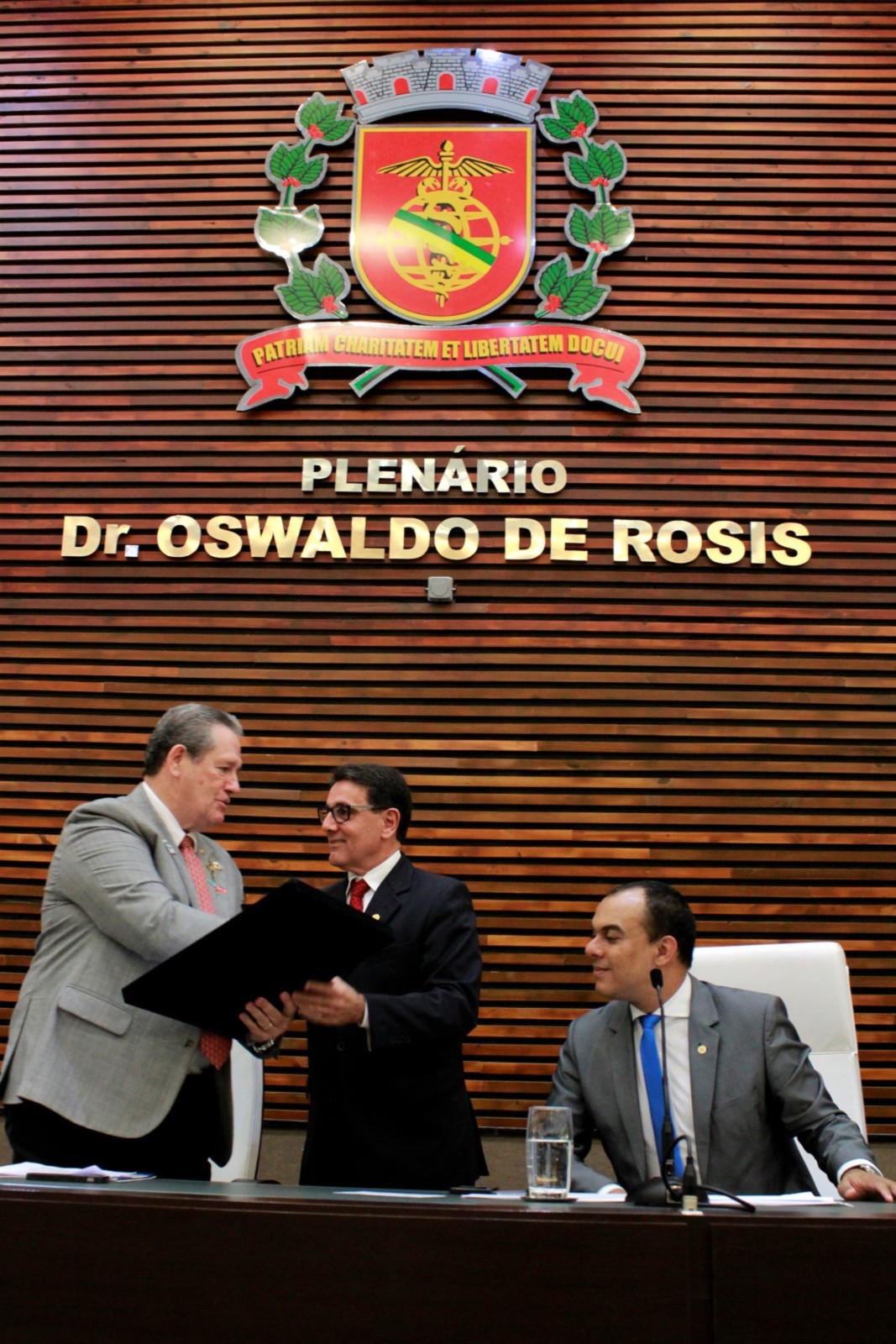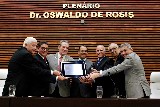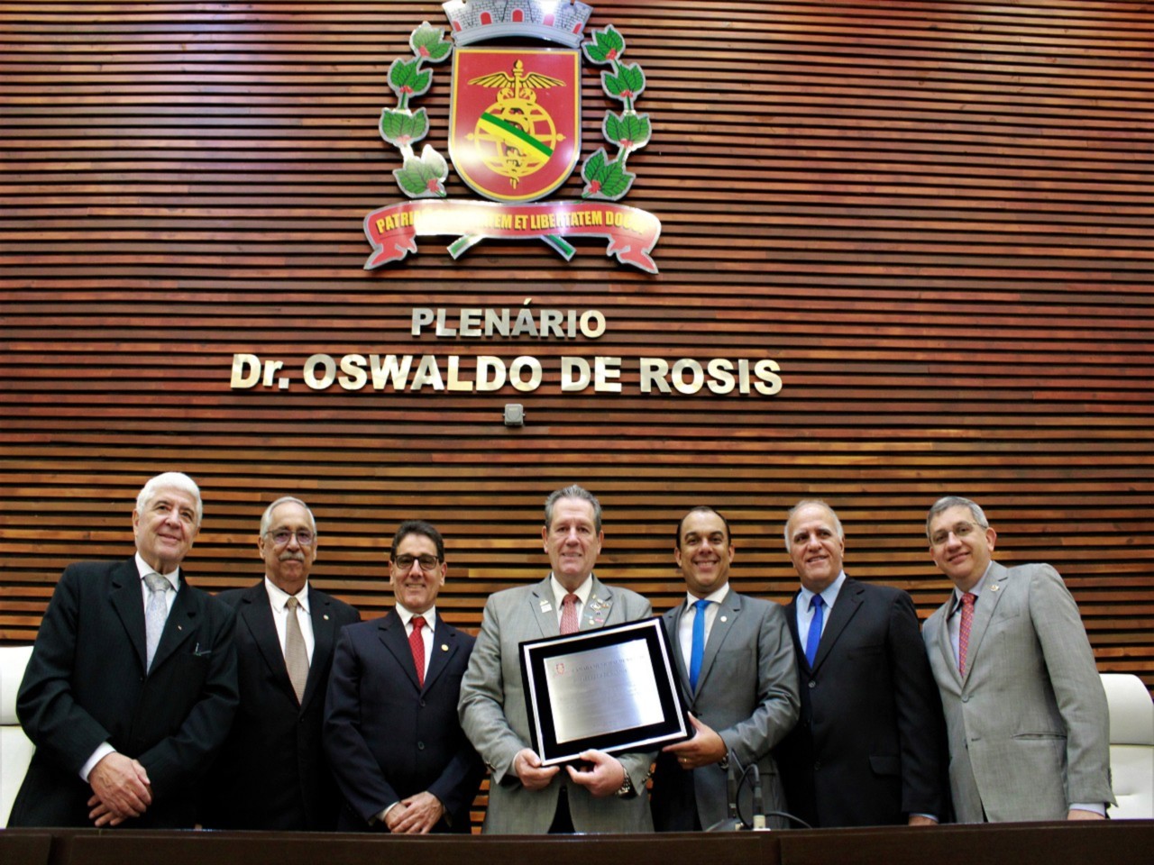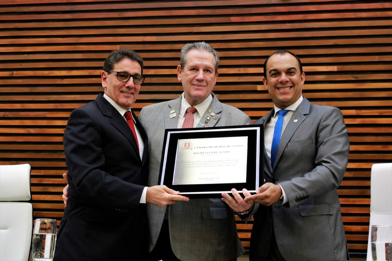 Após os discursos, o Presidente da Câmara Municipal de Santos, Legislatura 2017-2018, Adilson Santos Junior, em nome da mesma, entregou a placa alusiva aos 90 anos de fundação do Rotary Club de Santos. Por fim, encerrou esta emocionante homenagem com palavras de agradecimento a todos os Companheiros por suas ações e contribuições em prol da humanidade.