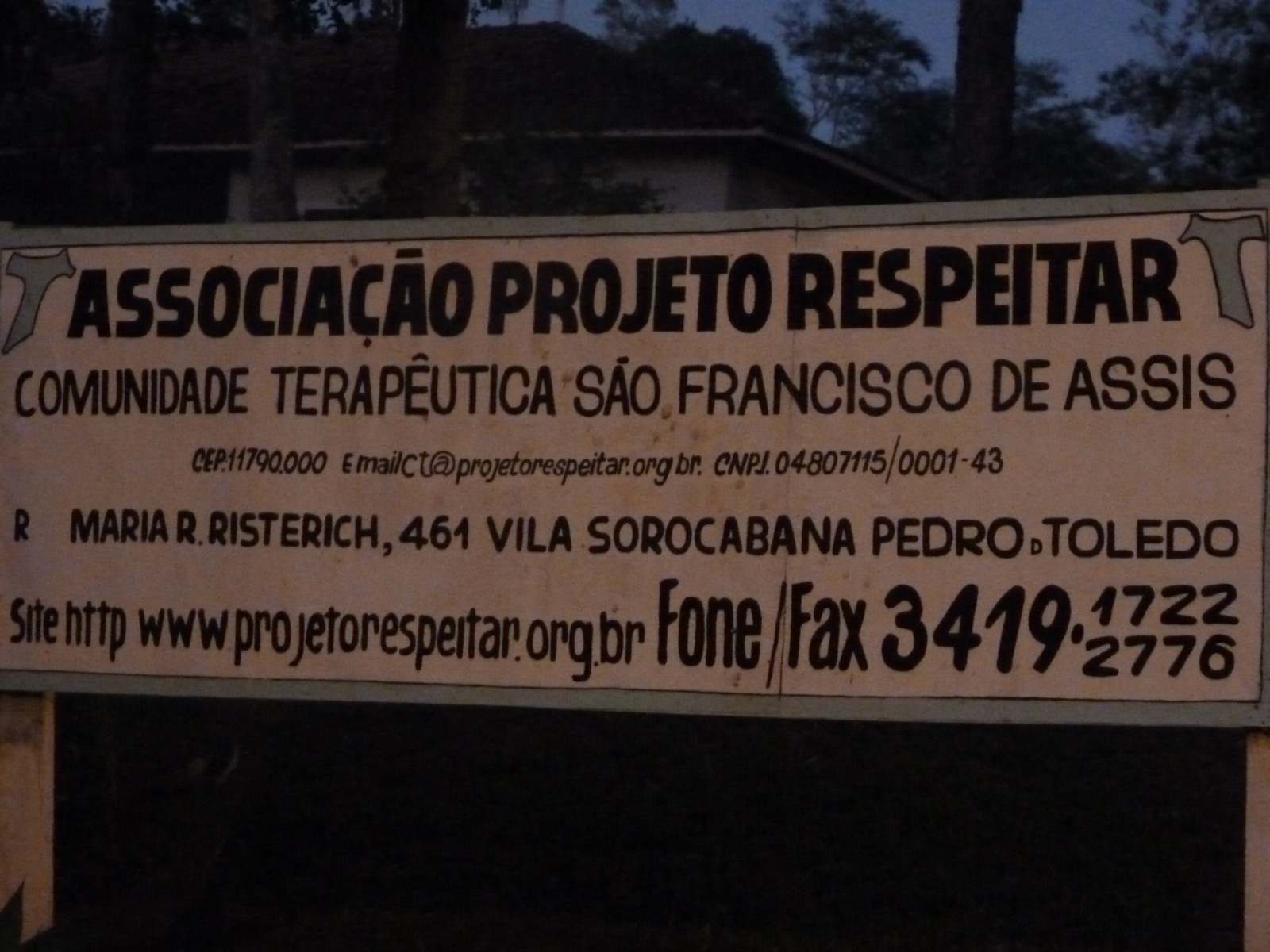 O último local visitado foi a Comunidade Terapêutica São Francisco de Assis, clínica de acolhimento e apoio a dependentes químicos da comunidade, onde é realizado o Projeto Respeitar. A equipe foi recebida por José Luiz Rosa, diretor da instituição. Os pacientes são parceiros no Projeto Semear do RC Itariri. Neste local, além da horta orgânica, estão sendo cultivadas mudas de árvores para serem plantadas em áreas degradadas da região, como parte do Projeto de Rotary International Preserve o Planeta Terra. Durante a visita, Claudio Takata ouviu depoimentos de alguns pacientes que estão sendo ajudados na recuperação de sua dependência. O objetivo desta parceria é semear a esperança entre estes jovens.