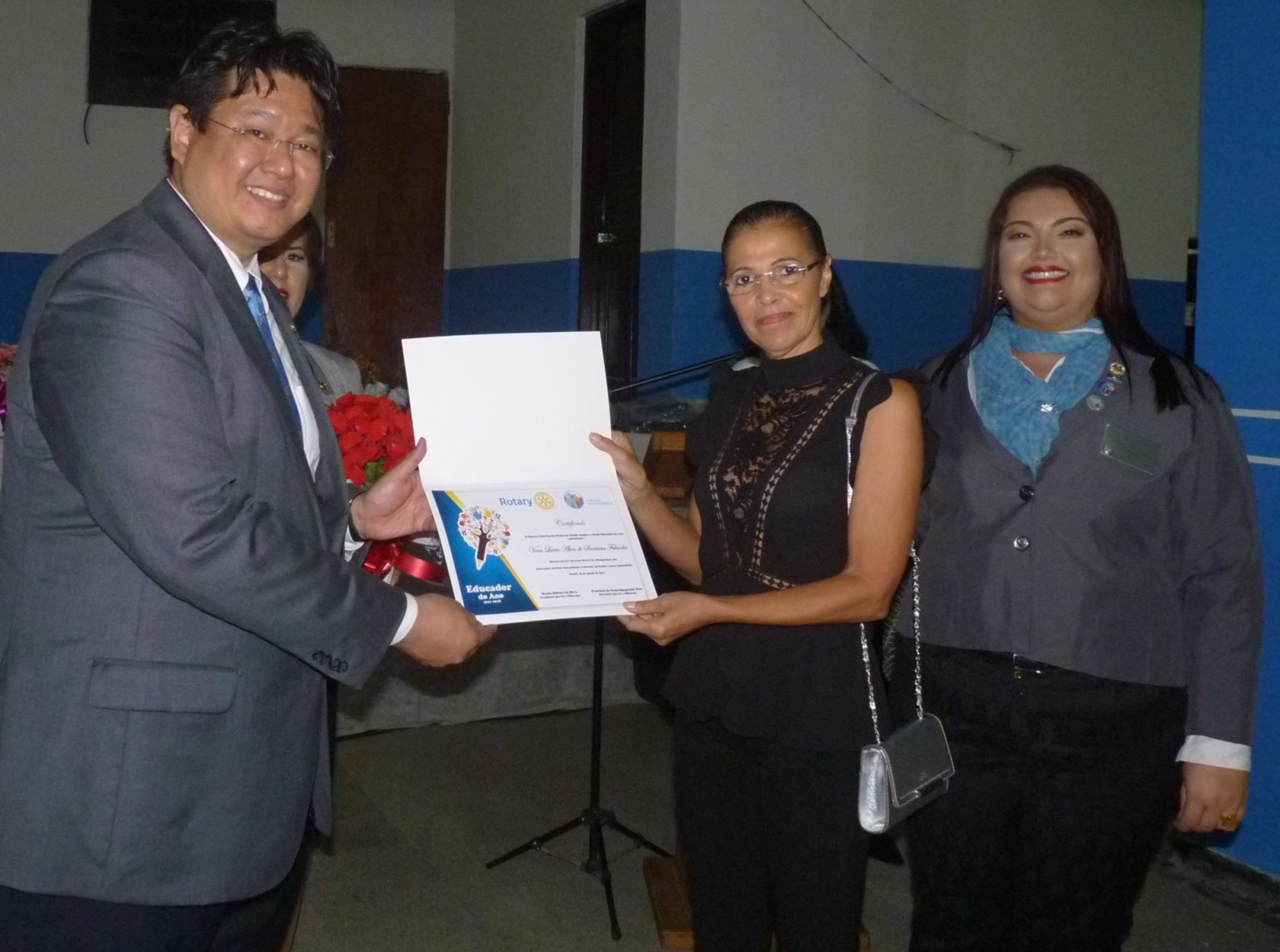 Vera Lúcia de Santana Fukuoka, diretora da Escola Estadual Otaviano Soares Albuquerque, foi homenageada como a Educadora do Ano, recebeu das mãos do governador do Distrito 4420, um certificado do Rotary em forma de agradecimento.