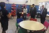O primeiro projeto visitado foi à Escola Estadual Otaviano Soares Albuquerque, em Pedro de Toledo. O colégio atende cerca de 870 alunos, divididos entre o Ensino Fundamental II e Médio. Os companheiros foram recepcionados pela diretora Vera Lúcia Alves Santana Fukuoka, que os apresentou as dependências da unidade. O Rotary Club Itariri auxilia na sala de leitura através da aquisição de novos livros. O Projeto Rumo, desenvolvido há dois anos, voltará a ser realizado na escola. O encontro reúne jovens para bate-papo sobre a profissionalização, além de palestras e workshops. Agradeço a parceria oferecida pela instituição, sempre disponibilizando os espaços para as reuniões do Interact e eventos do clube, Denise.