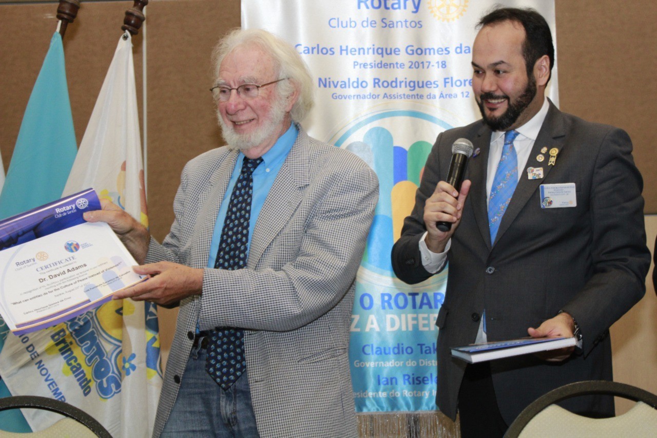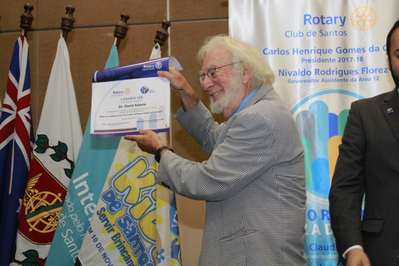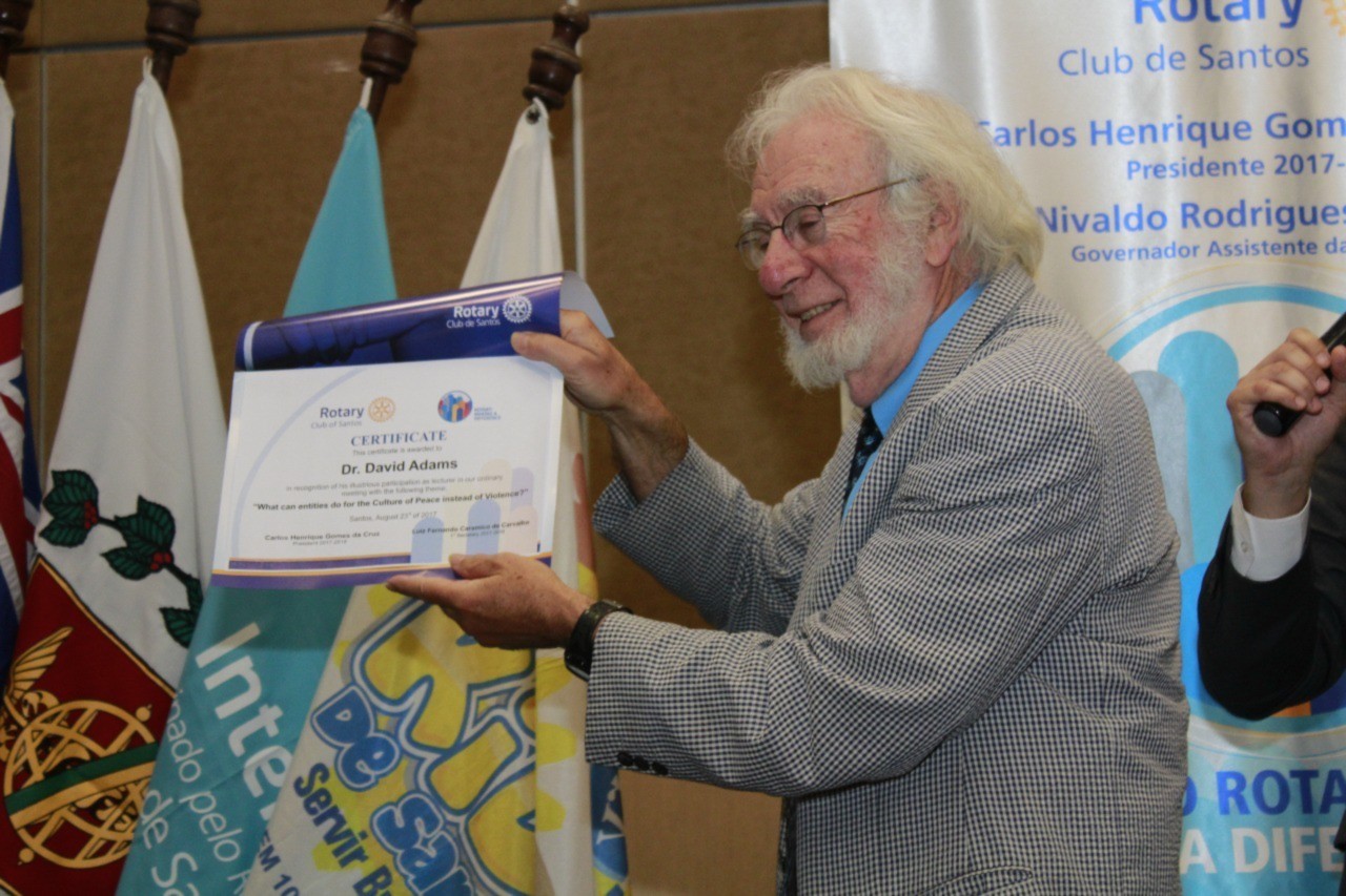 Na reunião ordinária do dia 23 de agosto, tivemos como palestrante o Dr. David Adams, com o tema: O que as entidades podem fazer pela Cultura de Paz e Não Violência?.
