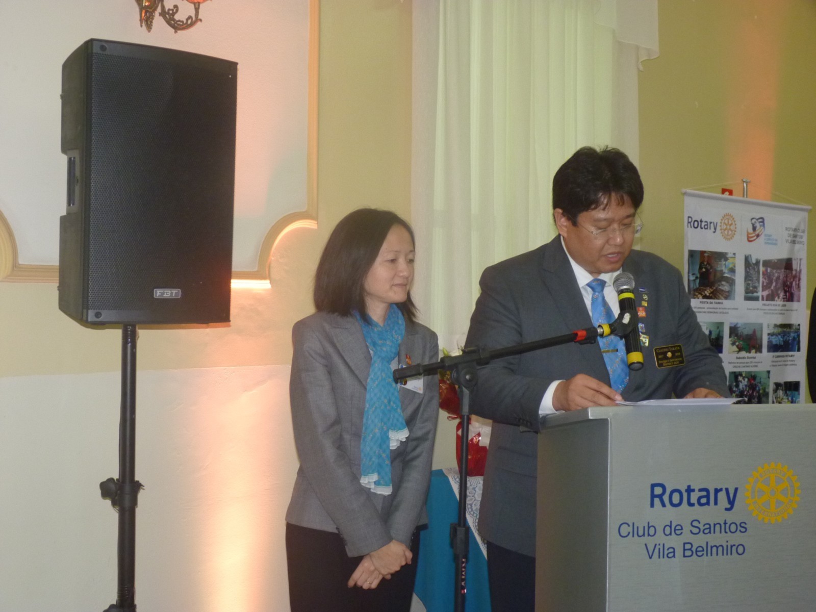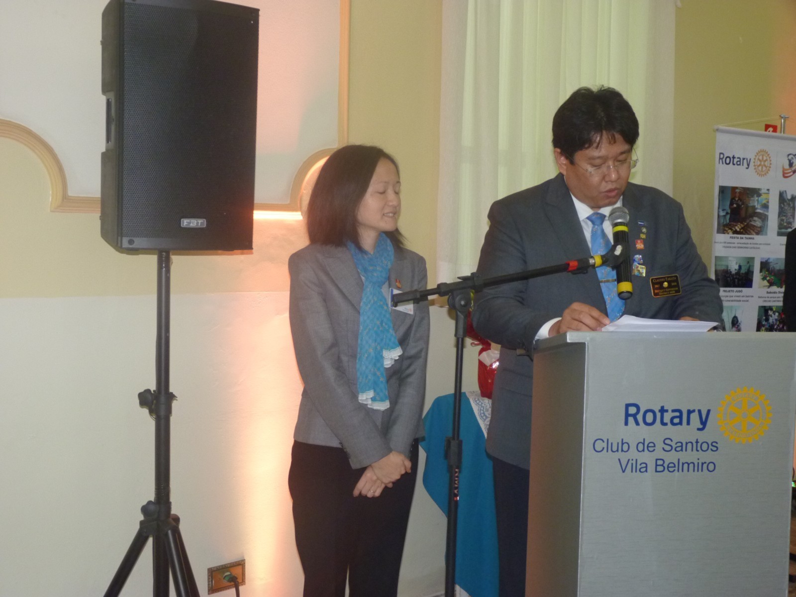 A solenidade aconteceu na Associação Palácio Maçônico de Santos, reuniu autoridades rotárias, membros da equipe distrital, companheiros rotarianos, o governador 2017/2018, Claudio Takata e sua esposa Marie, além de familiares e amigos.
