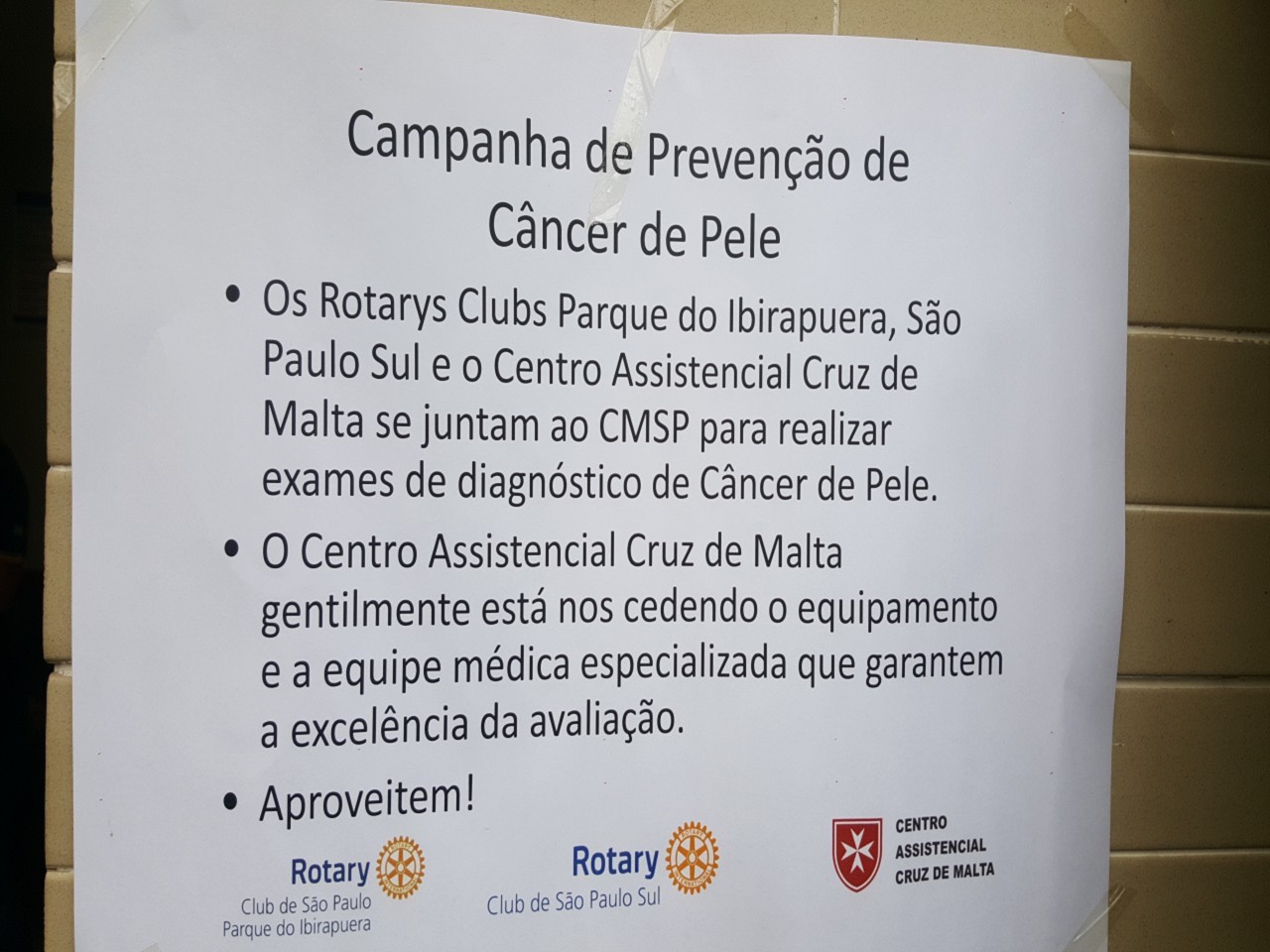 No último sábado dia 7 de outubro o RCSPPIbirapuera juntamente com o RCSPSul e o Centro Assistencial Cruz de Malta proporcionaram a mais de 60 pessoas previamente inscritas exame dermatológico visando a detecção precoce do Cãncer de Pele.