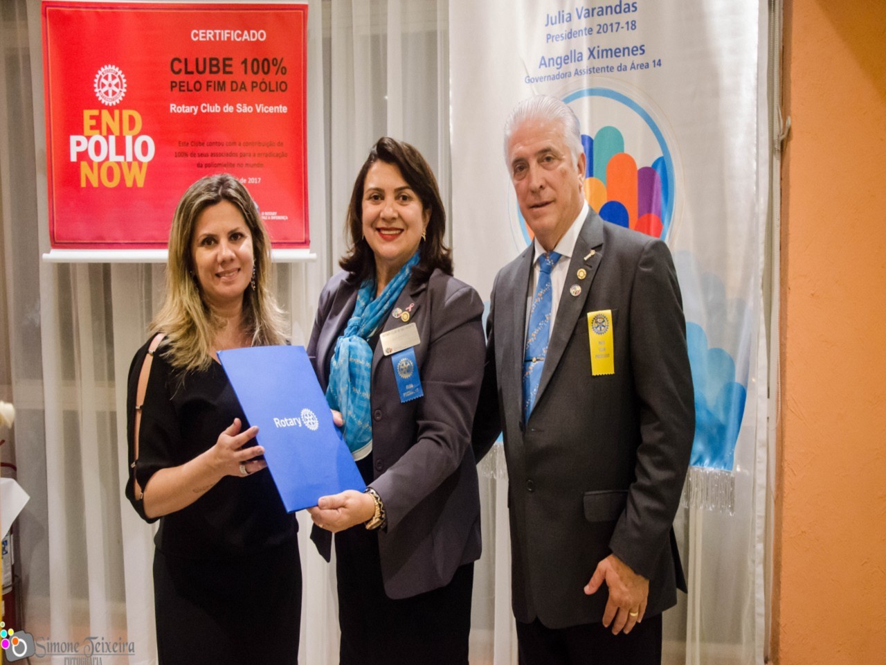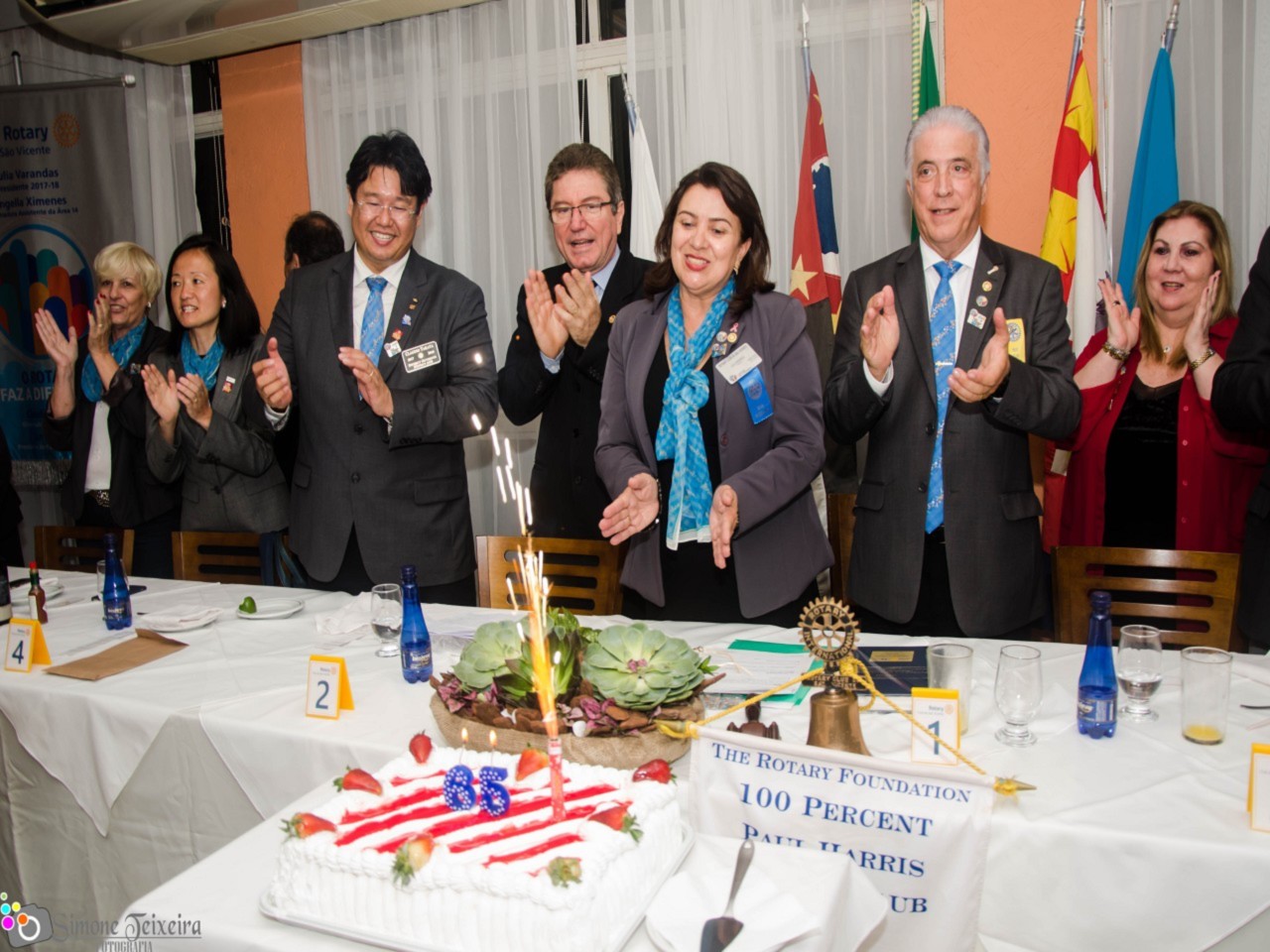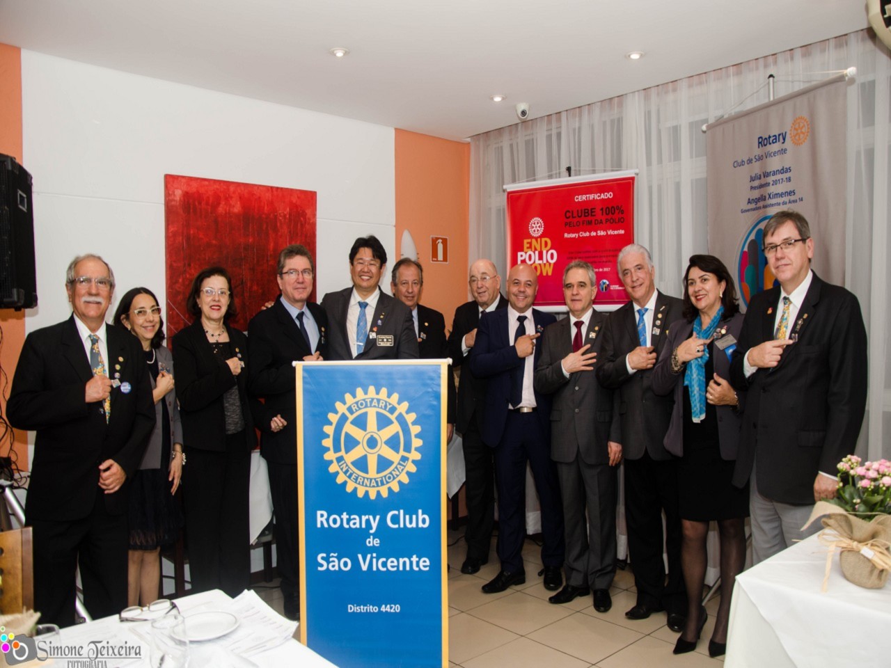 Visita do Governador do Distrito 4420 Claudio Takata, junto com sua esposa Marie Takata, nesse dia foi visitada a Instituição APAE, depois teve uma Homenagem na Câmara Municipal de São Vicente, idealizada pelo Vice Presidente da Câmara, Vereador Higor Ferreira, pelo 65 anos de fundação do Rotary Club de São Vicente, fundado em 10/10/1952. Após a Reunião do Governador Claudio Takata com a Presidente Julia Varandas e também reunião de conselho, aconteceu em seguida, o jantar, quando então foi feita Homenagem a Professora Maristela Motta Morato, mérito de reconhecimento profissional por todos os companheiros do clube. Aconteceu também a Posse de mais uma nova sócia, Maristela Marques Bechara.