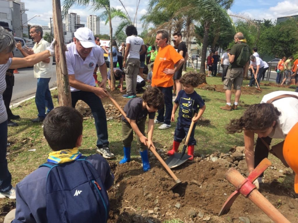 Com a ajuda da prefeitura municipal, da secretaria do Verde e do Meio Ambiente e da sub prefeitura da Lapa foi realizado o plantio de 70 mudas de árvores, inclusive frutíferas, no Canteiro Central do cruzamento das Avenidas Gastão Vidigal e Major Paladino no bairro da Lapa em São Paulo!