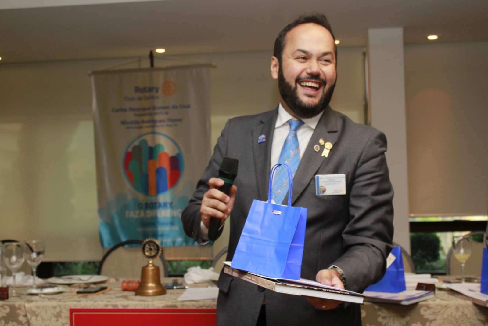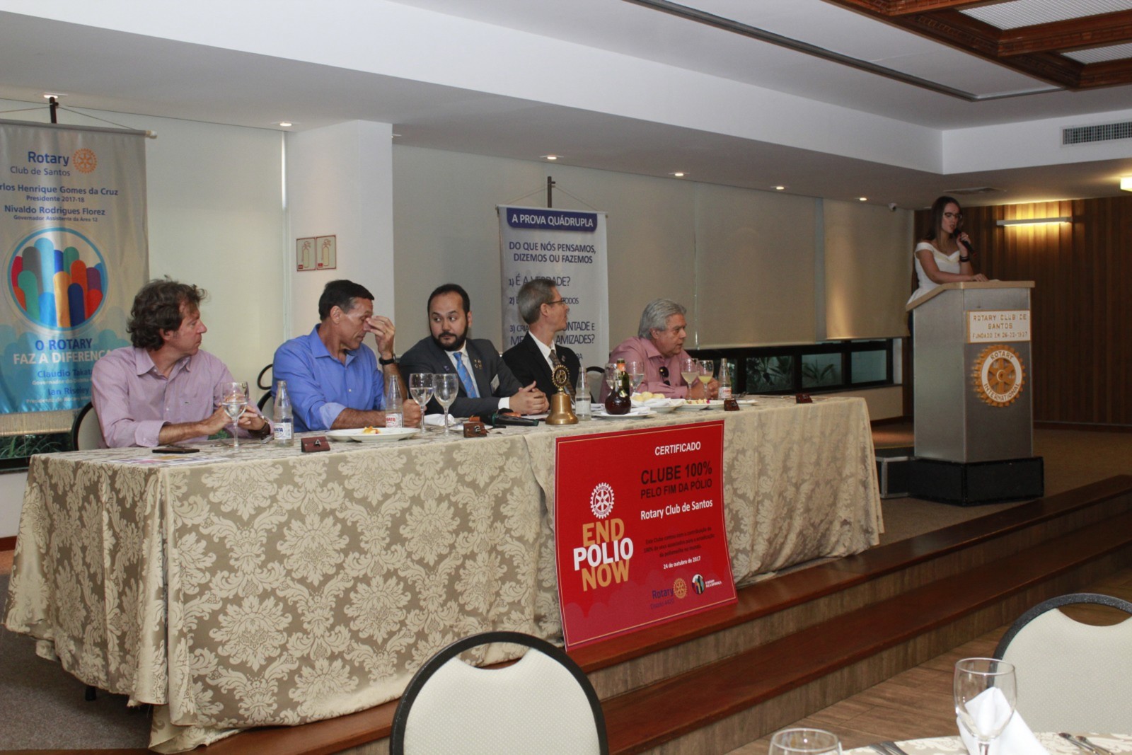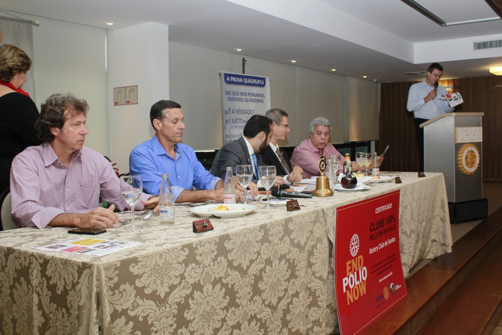 Em outro momento, foi iniciada a palestra da reunião e o tema foi: Momento Profissional ? Rotary Club de Santos e os Companheiros Alexandre Ribeiro Alonso, Edison da Silva Monteiro, Roberto Luiz Barroso Filho e Tiago Vallejo Marsaioli, puderam apresentar a todos suas profissões. A ideia tem como objetivo trazer mais visibilidade e interação entre Companheiros, dando a todos a oportunidade de trocarem suas ideias e experiências profissionais.