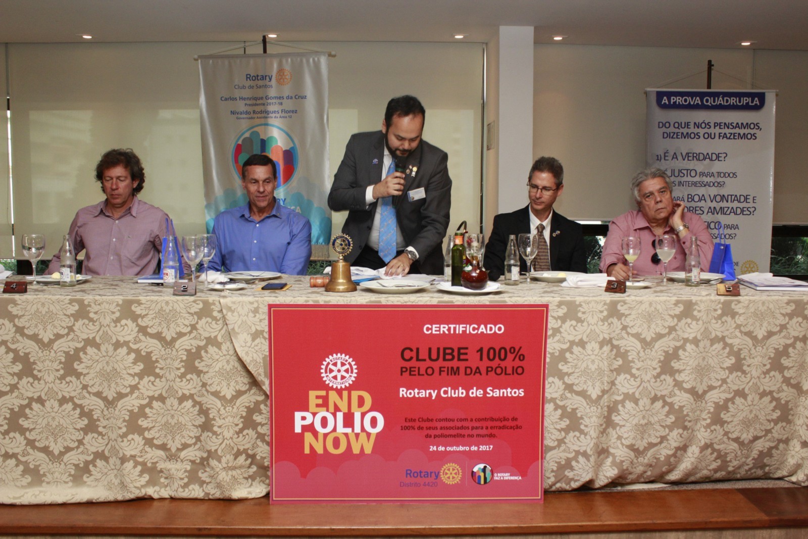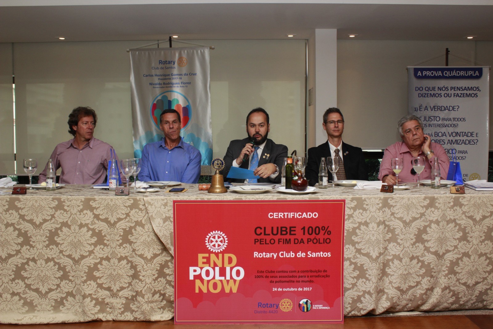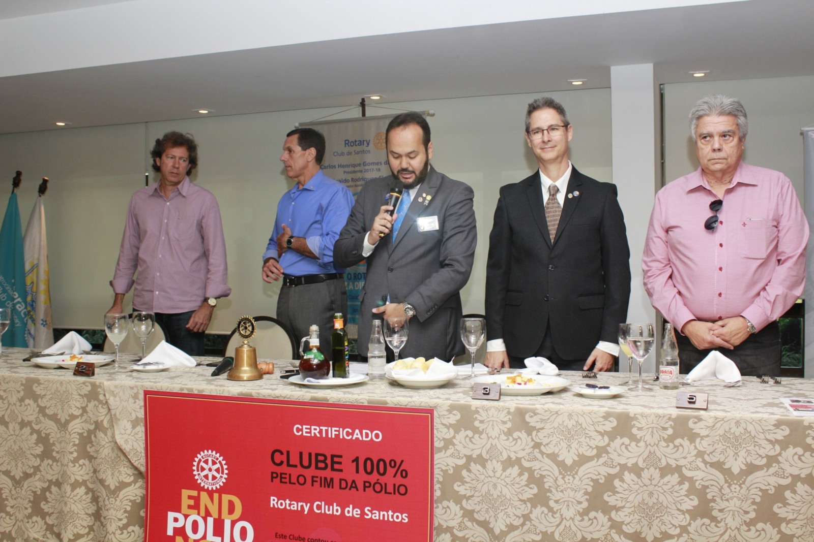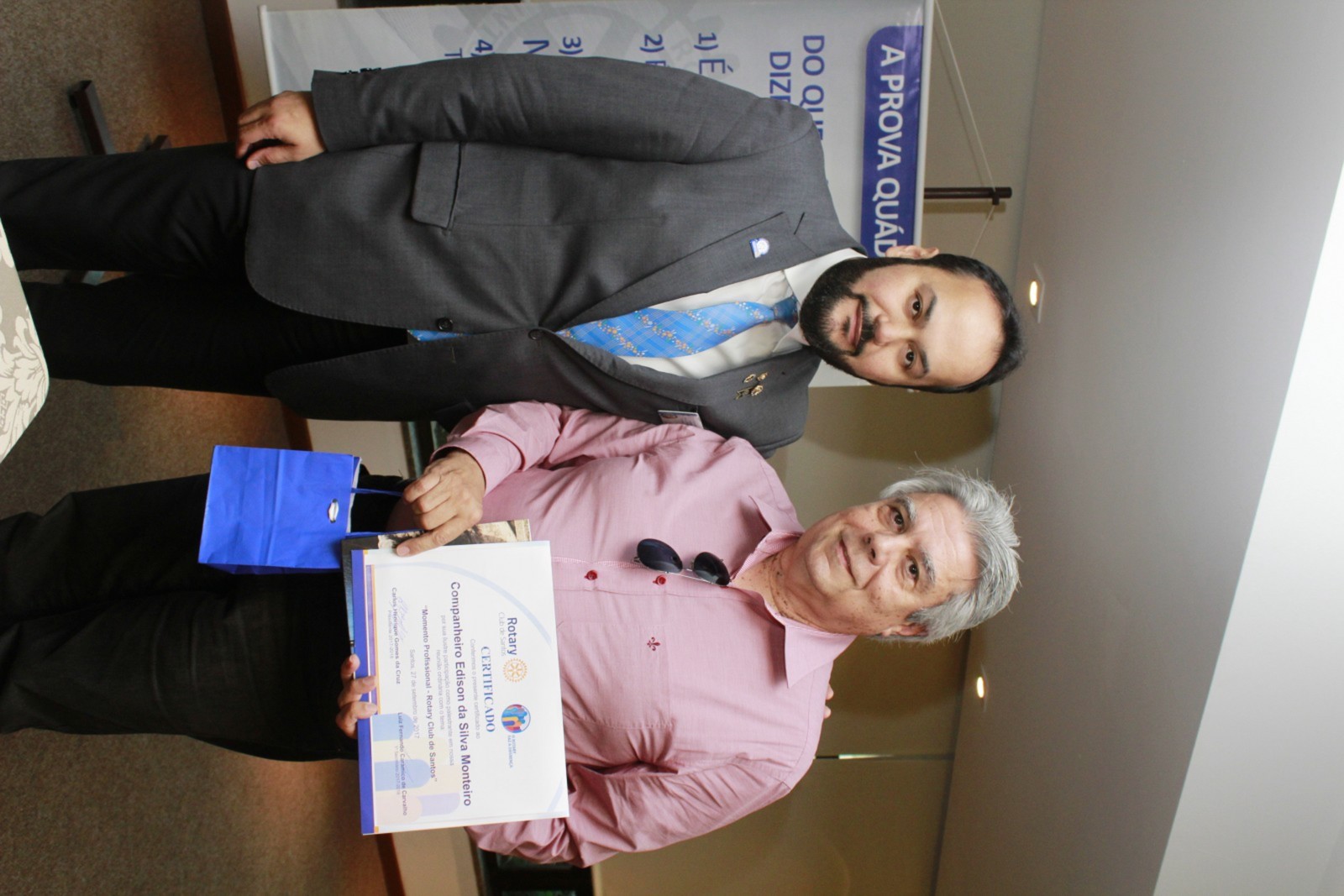 Em outro momento, foi iniciada a palestra da reunião e o tema foi: Momento Profissional ? Rotary Club de Santos e os Companheiros Alexandre Ribeiro Alonso, Edison da Silva Monteiro, Roberto Luiz Barroso Filho e Tiago Vallejo Marsaioli, puderam apresentar a todos suas profissões. A ideia tem como objetivo trazer mais visibilidade e interação entre Companheiros, dando a todos a oportunidade de trocarem suas ideias e experiências profissionais.