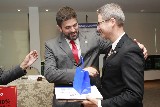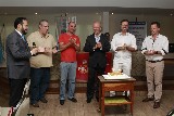 Após o sorteio, a presidente do Rotaract Club de Santos, Maísa Borges, fez a entrega do cheque simbólico ao Companheiro Charles Ferreira Dias ? presidente da Casa da Esperança de Santos, referente a parte do valor arrecadado na Noche Mexicana.