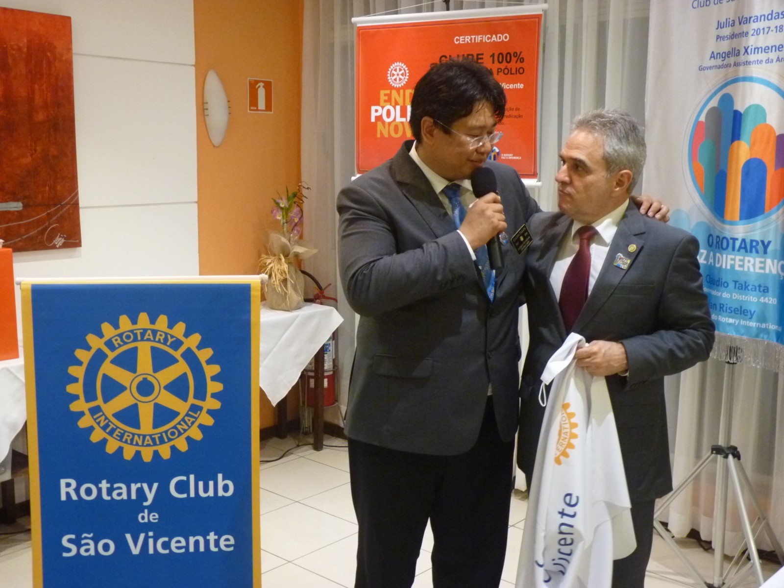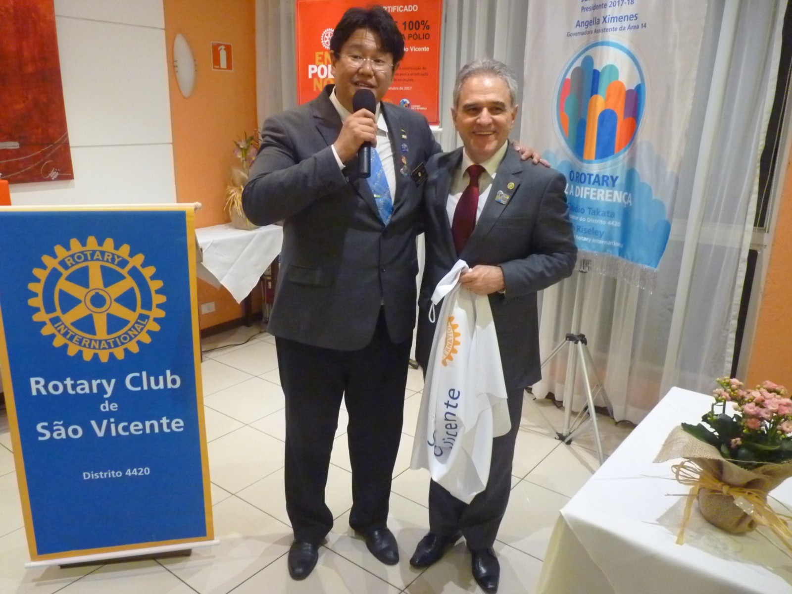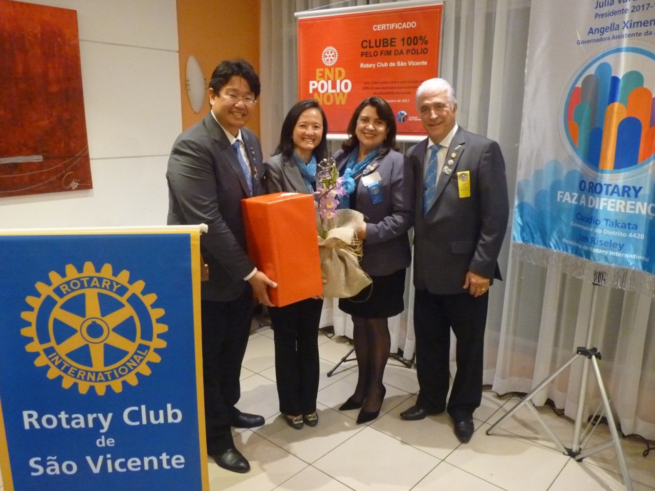 No tarde do dia 9 de outubro, o Rotary Club São Vicente recebeu a visita oficial do governador do Distrito 4420, Claudio Takata e sua esposa Marie. A noite foi realizada a Festiva no Terraço Chopp, localizado na Ilha Porchat, em São Vicente. O evento reuniu autoridades locais, rotárias, membros da equipe distrital, familiares e amigos.