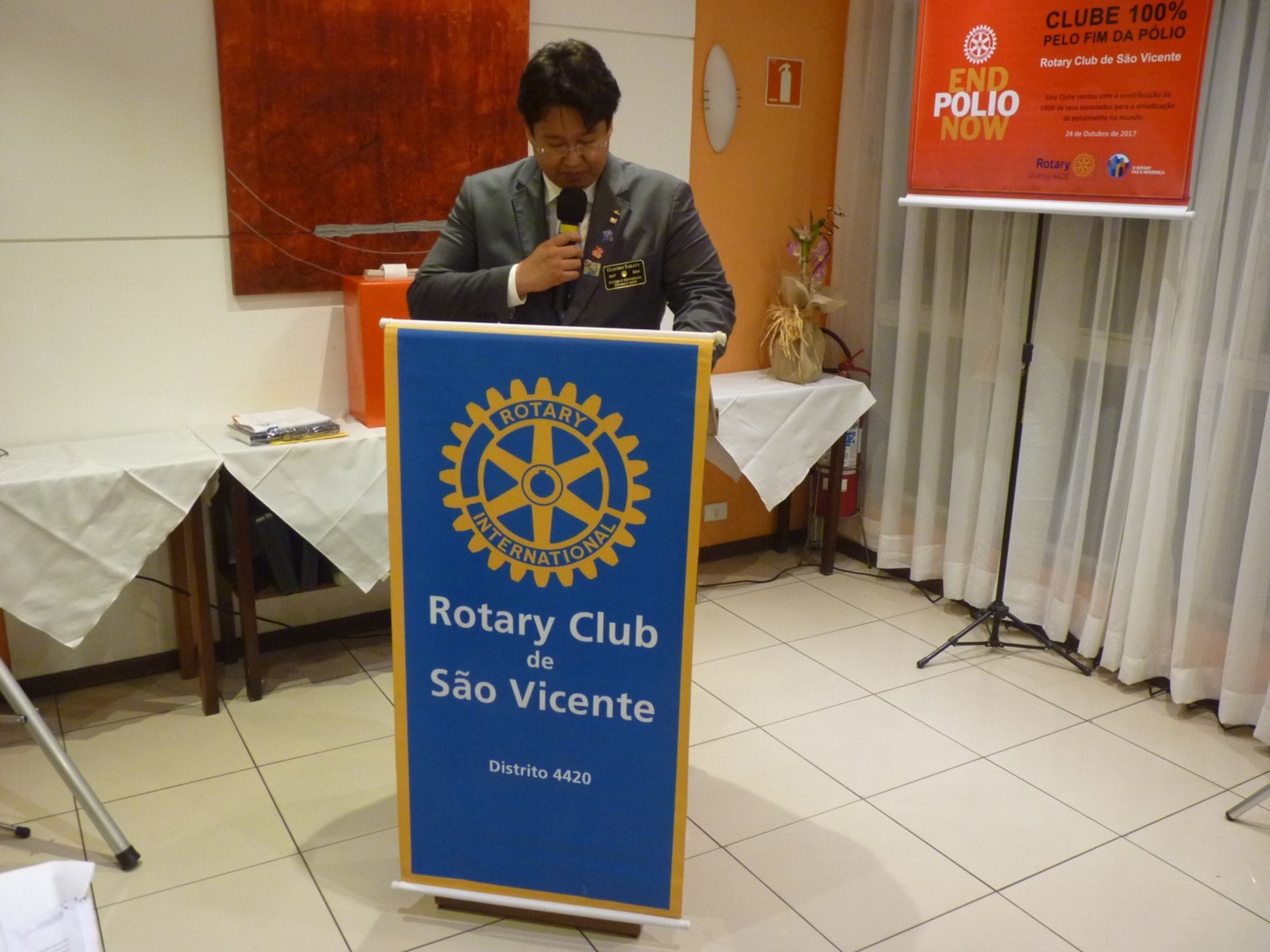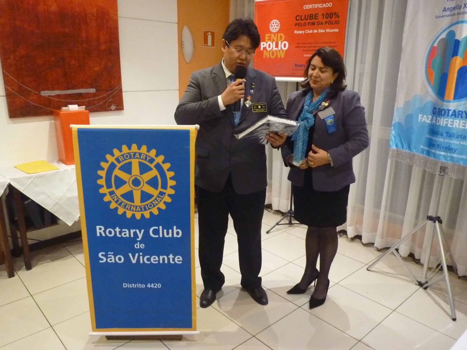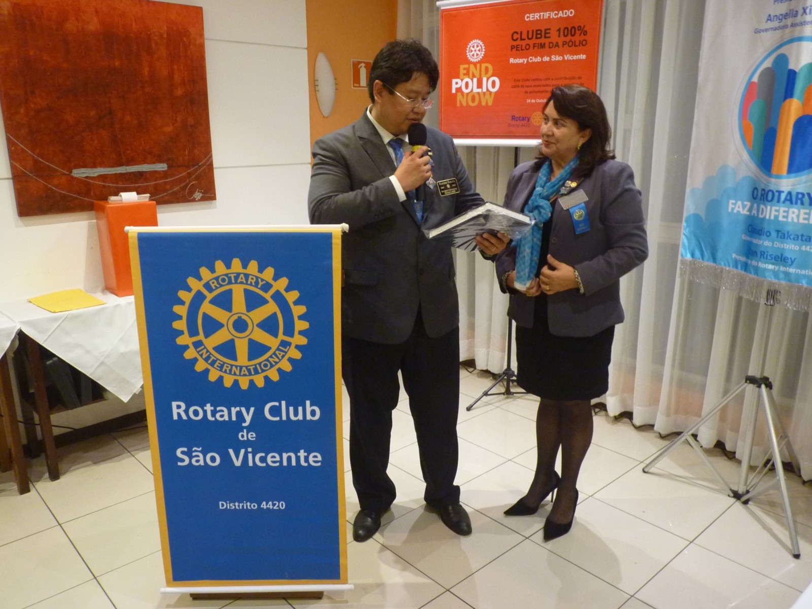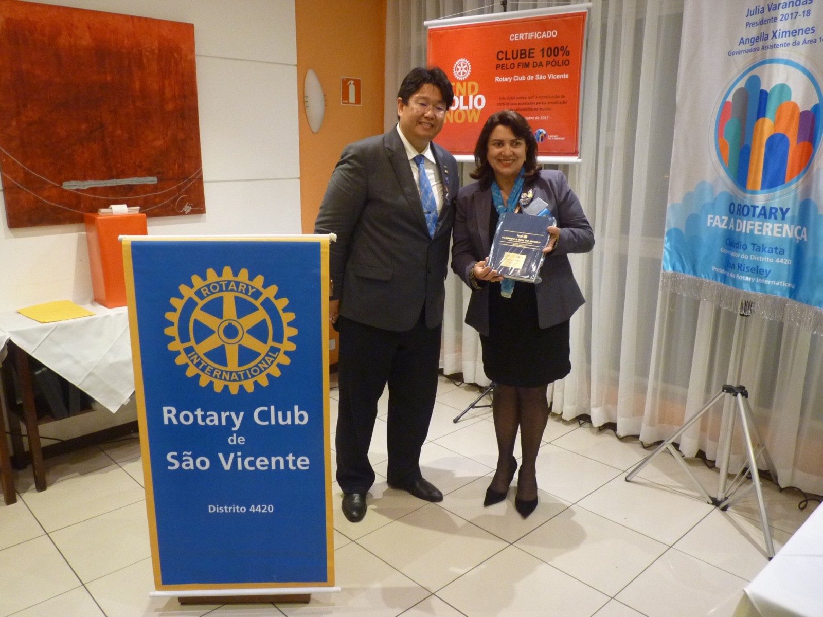No tarde do dia 9 de outubro, o Rotary Club São Vicente recebeu a visita oficial do governador do Distrito 4420, Claudio Takata e sua esposa Marie. A noite foi realizada a Festiva no Terraço Chopp, localizado na Ilha Porchat, em São Vicente. O evento reuniu autoridades locais, rotárias, membros da equipe distrital, familiares e amigos.
