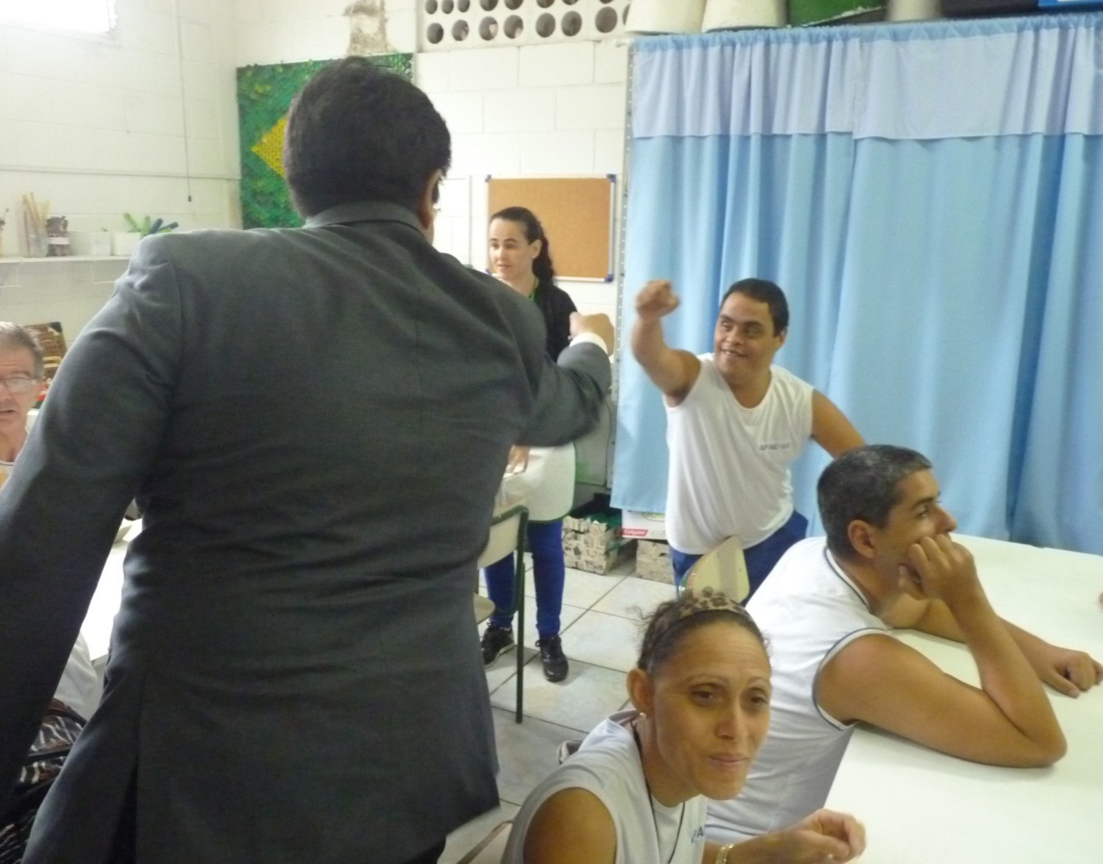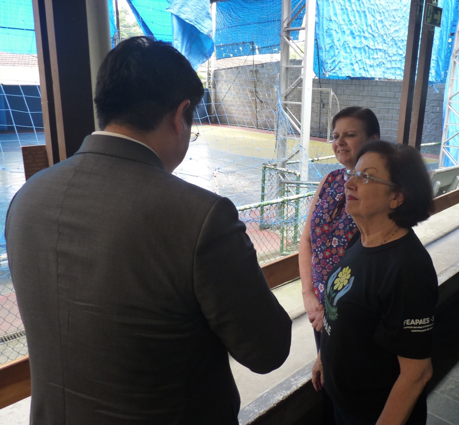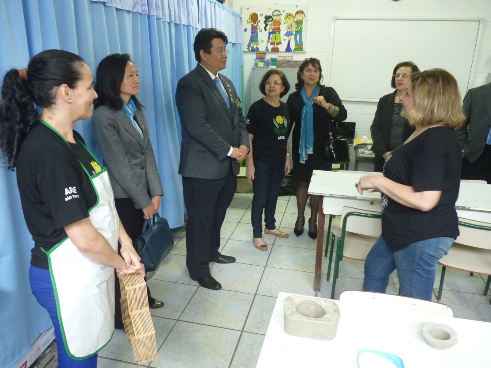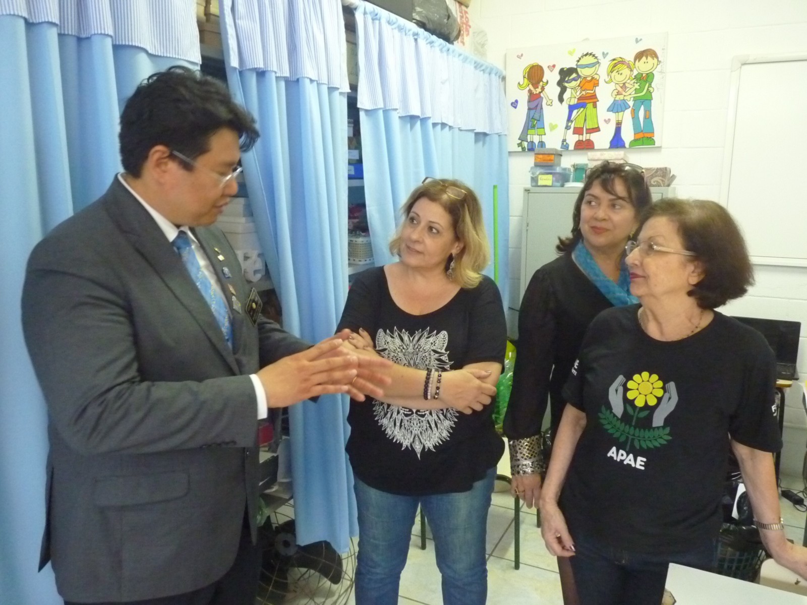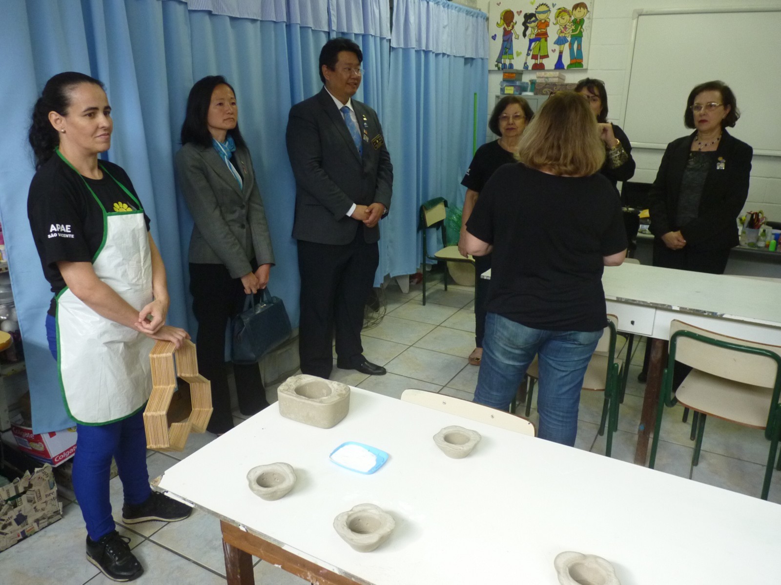O governador foi conhecer um dos projetos desenvolvidos pelo clube. O início da visita aconteceu na Associação de Pais e Amigos dos Excepcionais de São Vicente (APAE), com sede à Rua Feliciana Marcondes da Silva, 205, no bairro do Catiapoã. É uma entidade filantrópica historicamente contextualizada com seu compromisso em favor da defesa e garantia de direitos da pessoa com deficiência intelectual, seguida da prestação de serviços voltados à sua emancipação e inclusão social.