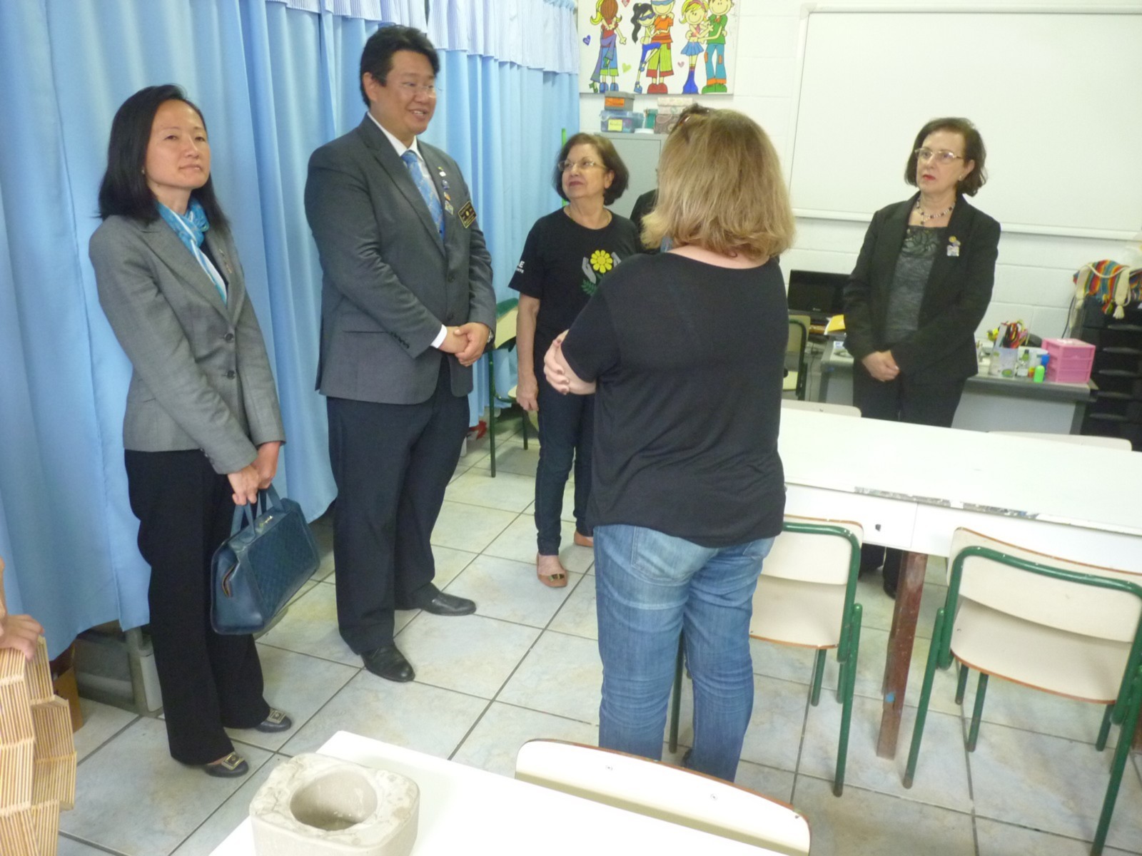 O casal foi recebido pela governadora assistente da área 14, Angella Ximenes, acompanhada pela presidente do clube, Julia Varandas e seu cônjuge Carlos Varandas, Carlos Torci, governador eleito 2018-19, companheiros rotarianos, Nilza Ribeiro Afonso, presidente da APAE, Wanda Maria G. Christo, vice-presidente, Regina Helena L. Alvarez, diretora social, Antônio Iris Mazza, diretor de patrimônio e Enyde Apparecida Moretti, secretária. O Rotary Club São Vicente é parceiro da instituição desde 2015, como é um projeto permanente, atende as demandas pontuais através de Subsídio Global e Distrital.