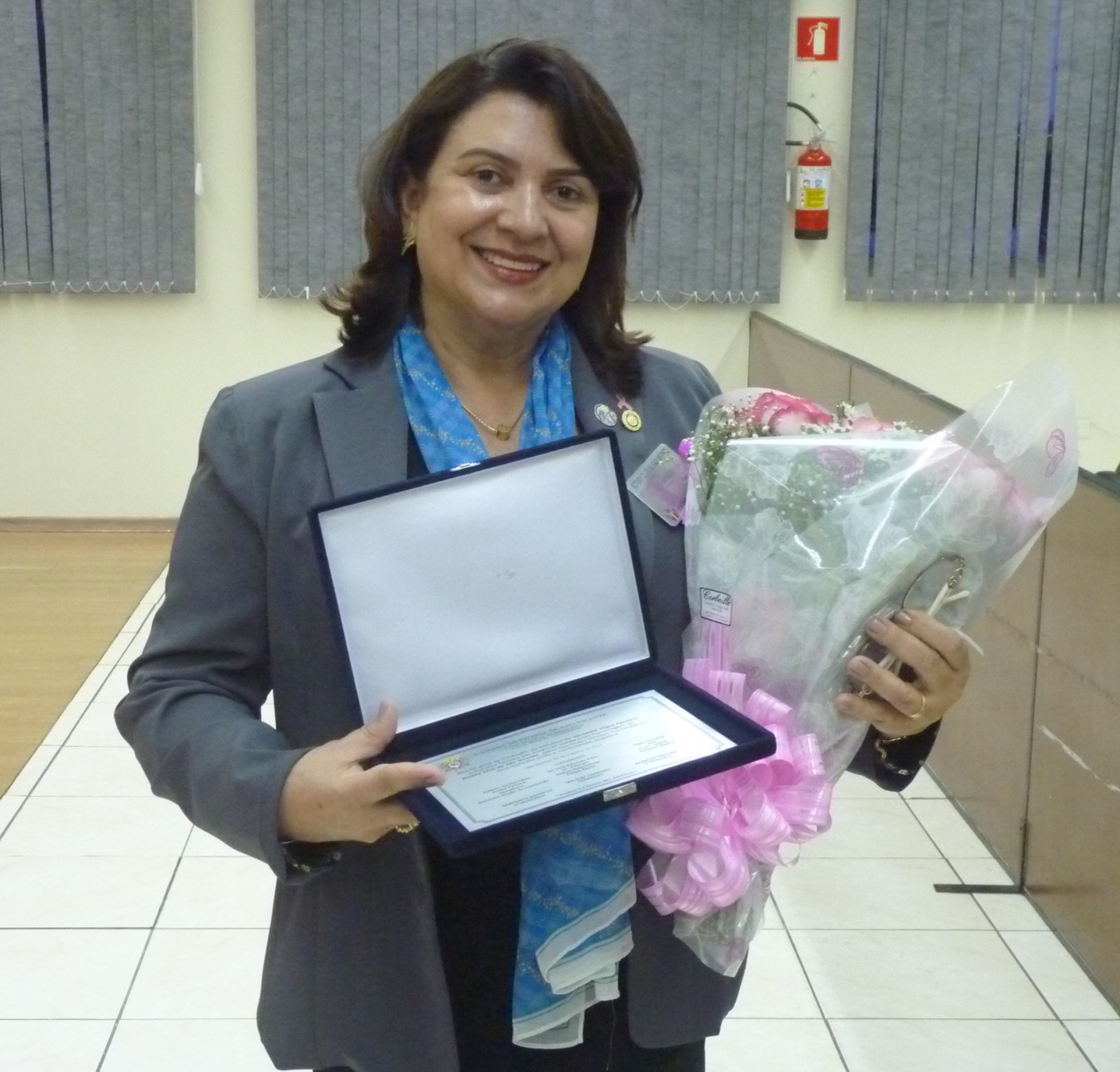 Presidida pelo vereador, a solene contou com a presença de Marici Mazei, secretária parlamentar, representando o vice-governador Márcio Franca; Dênis Rogério, assessor parlamentar, representando o deputado estadual Caio França; Rogério do Carmo, assessor parlamentar; Sargento Rogério Barreto, vereador; Vitor Carlos Vitório do Espírito Santo, secretário de Meio Ambiente; Kellerson Júlio, secretário de Comércio; Regina Ponte do Carmo, presidente da Associação Comercial, além de autoridades rotária, familiares e amigos da homenageada.