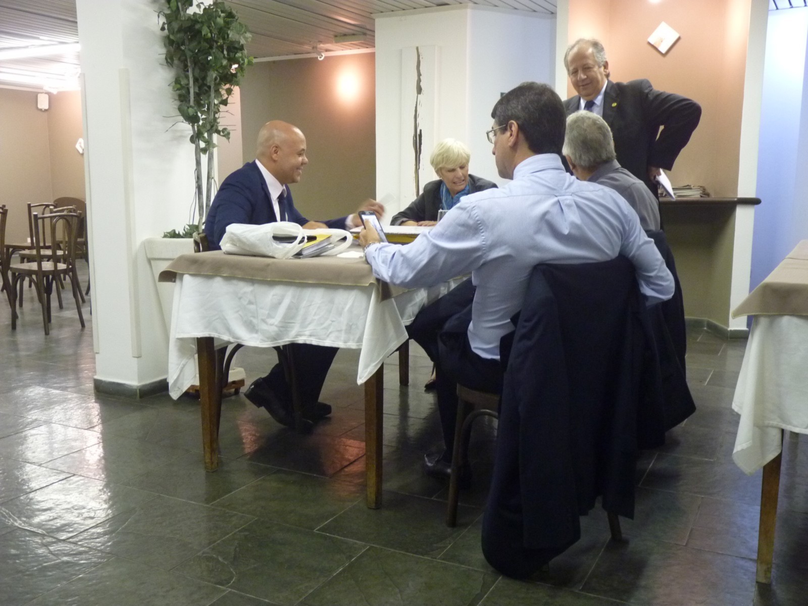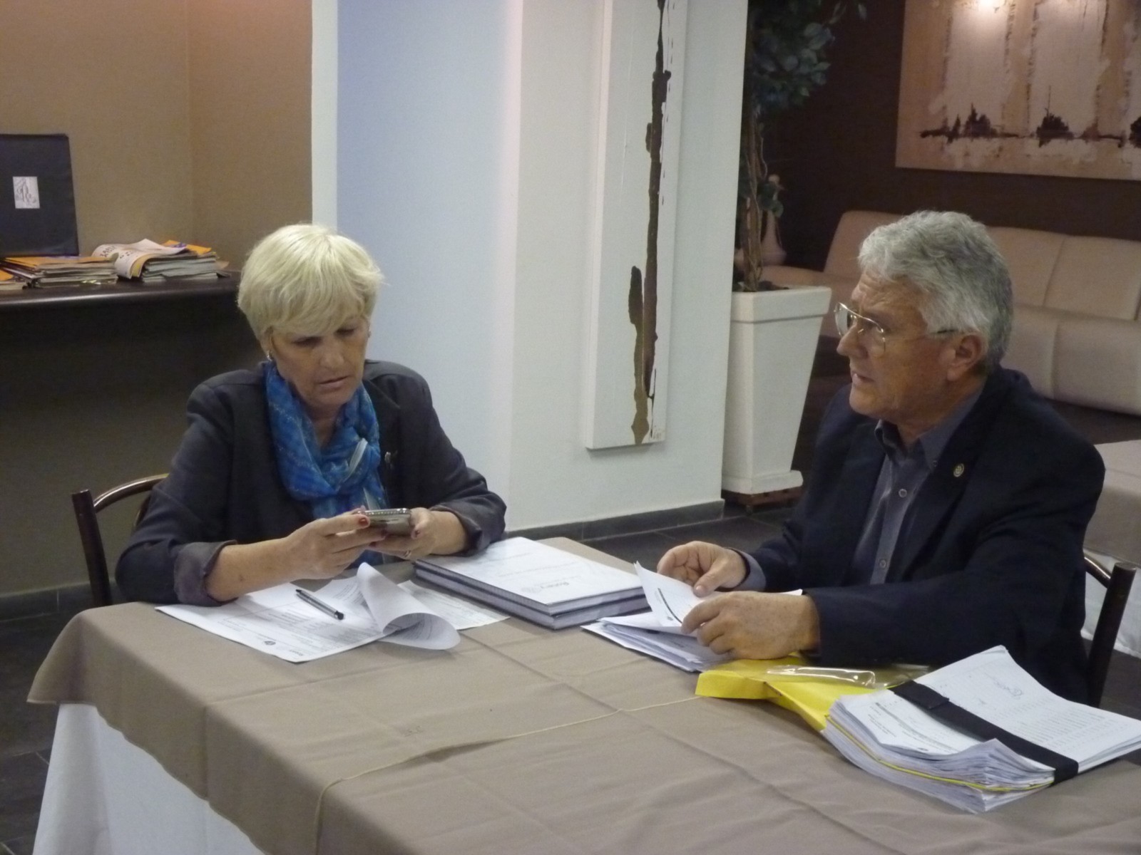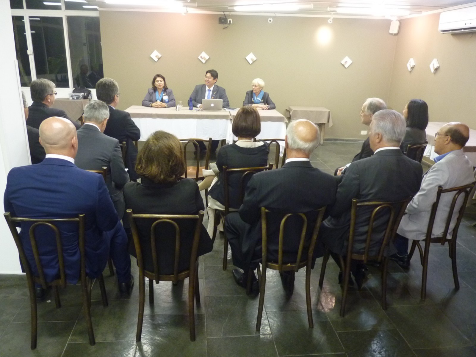 Em seguida, a equipe distrital retornou ao Terraço Chopp, onde foi realizada uma breve reunião entre o governador e a presidente do clube, enquanto Angella Ximenes, governadora assistente, reunia-se com membros da secretaria e tesouraria.