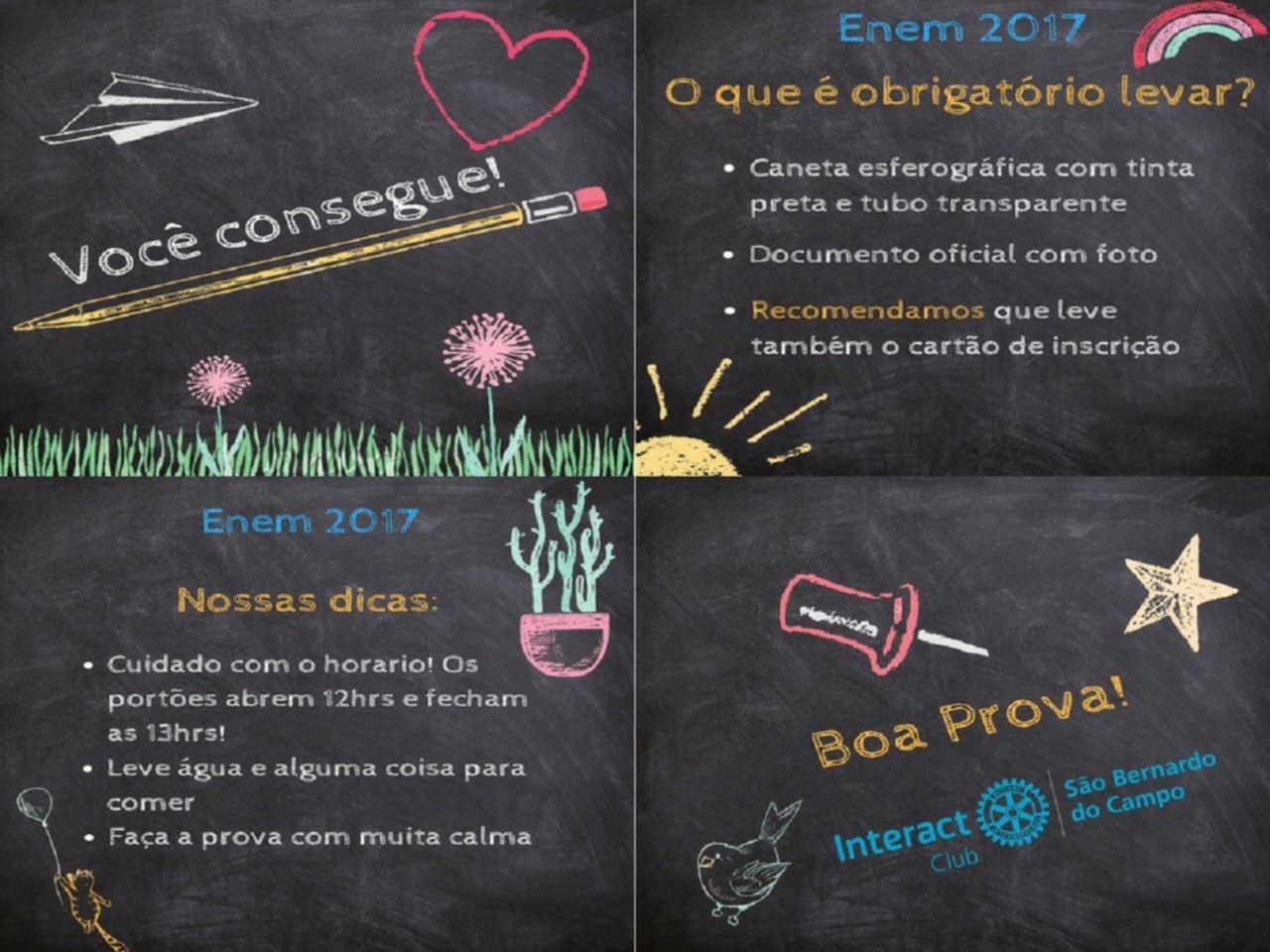 O Interact Club de São Bernardo do Campo, também se preocupou com os vestibulandos, não os deixando esquecer o que é necessário levar para o ENEM e dando dicas.