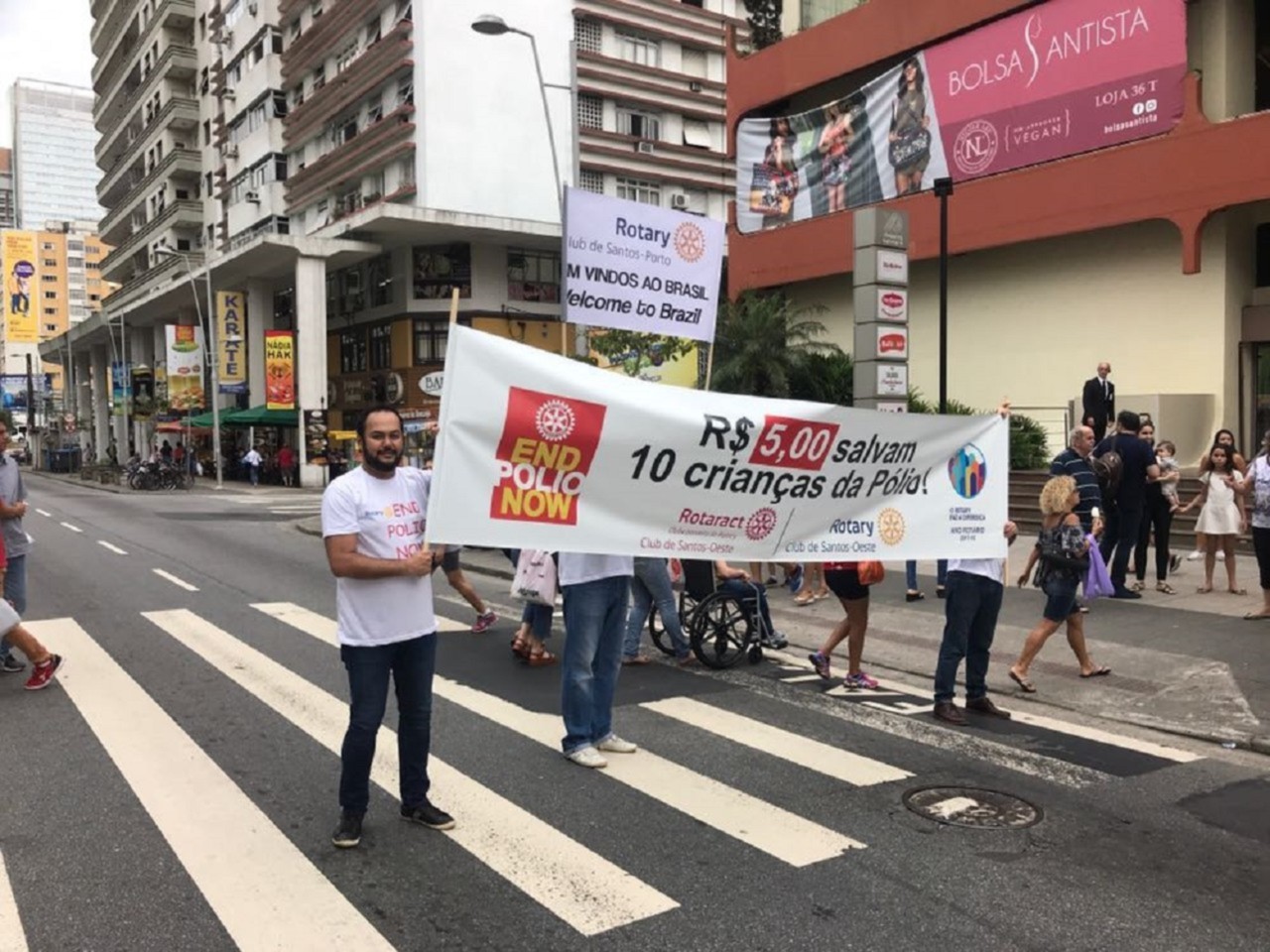 Em 24 de outubro é celebrado o Dia Mundial de Combate a Poliomielite. Na área de abrangência do Distrito 4420 do Rotary International, diversos monumentos e prédios receberam a projeção da campanha End Polio Now. Na noite de sexta-feira (20), a Fundação Pinacoteca Benedicto Calixto, foi um dos locais que começaram a divulgar esta importante causa rotária que continuou até o dia 22. Além disso, os Rotary Clubs da Área 13 se concentraram em frente ao Shopping Parque Balneário com pedágio e venda de Pins da Pólio no dia 21 onde também ocorreu o mutirão da saúde no Ginásio Dale Coutinho.