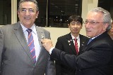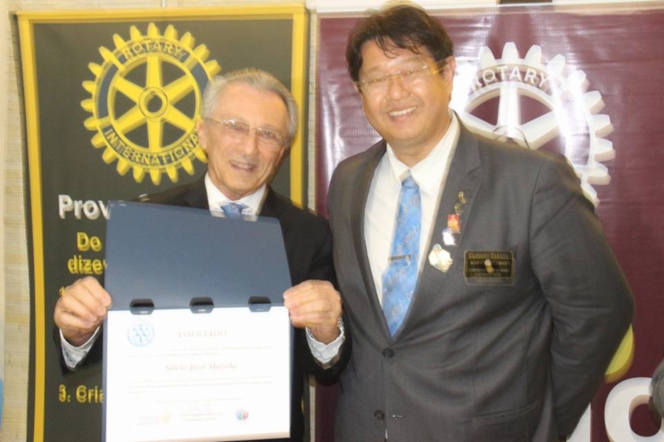 . A honra de recebermos em nosso clube como Sócios Honorários, os Companheiros Hiroshi Shimuta e SÍlvio José Marola, que ao fazerem uso da palavra deixaram claro seu apoio ao clube e desejando crescimento e continuidade das obras.