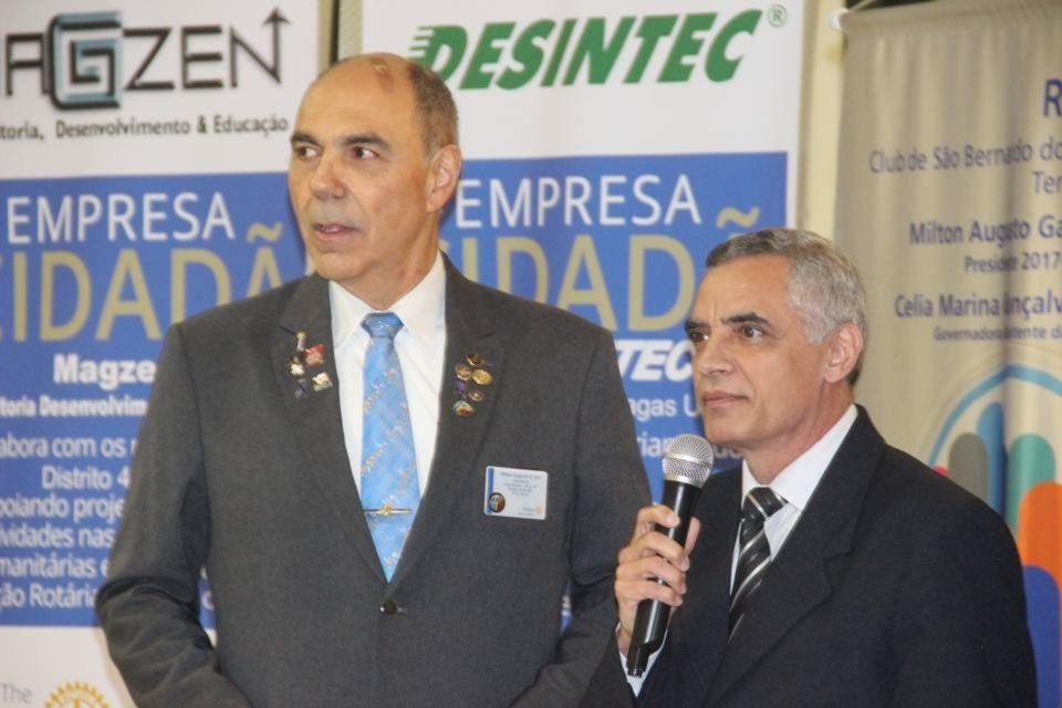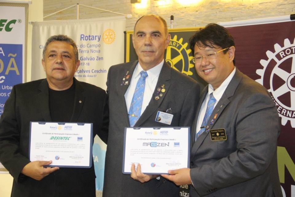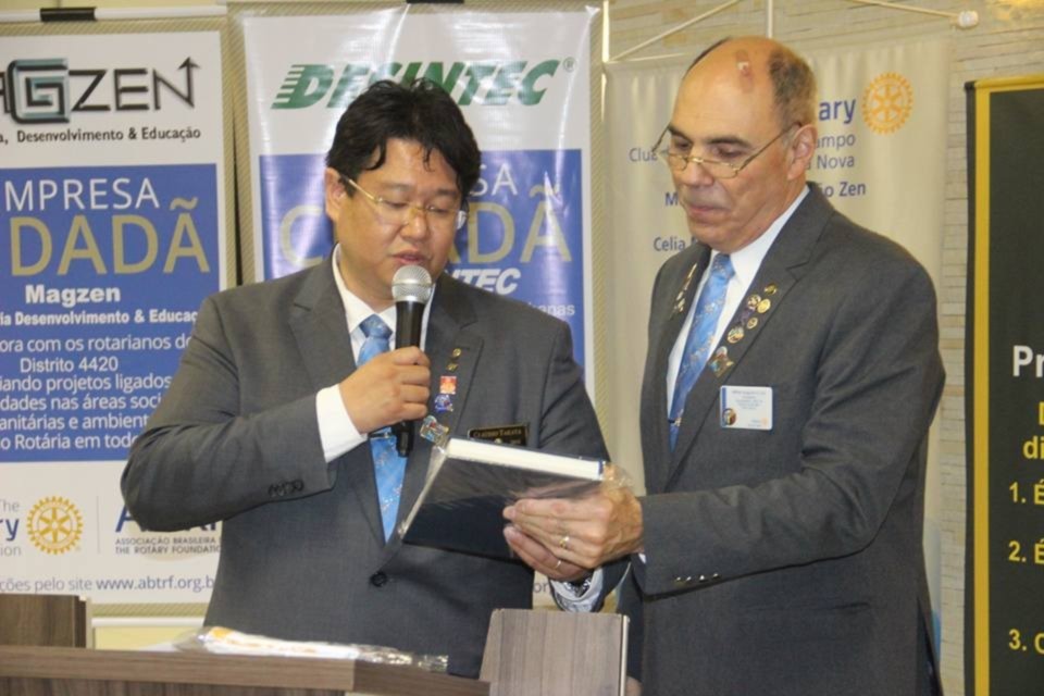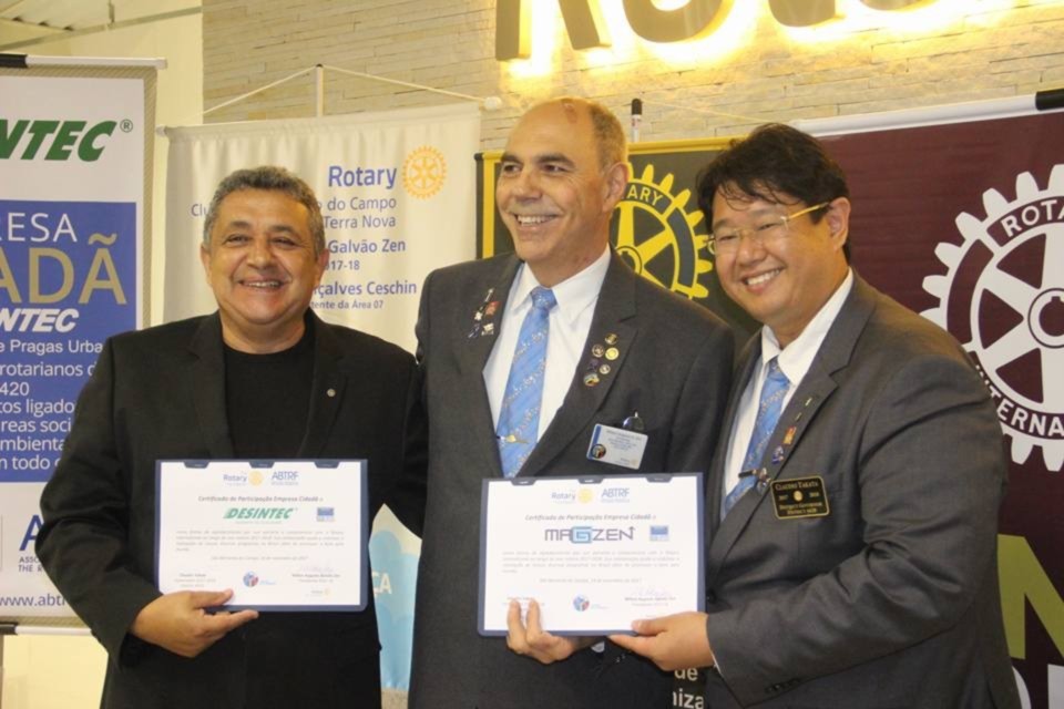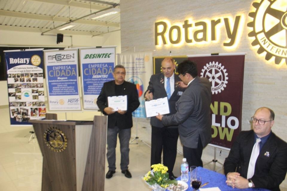 . Com uma presença especial, também foram homenageadas pelo Sr. Governador as Empresas Cidadãs de nosso clube por suas ações e compromissos com a causa rotária. Agradecemos à DESINTEC e MAGZEN Desenvolvimento Educação por todo apoio ao longo do ano Rotário.