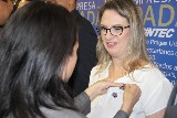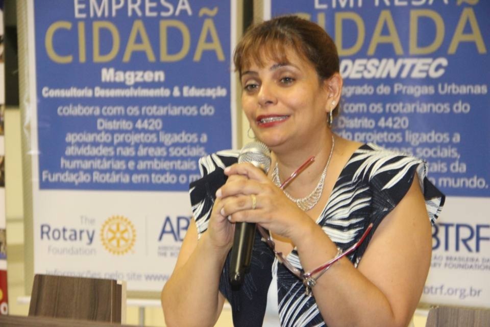 Como ato final, a Sra. Marina Sforzin, esposa de nosso mais antigo rotariano Cleodilson Sforzin, as flores à esposa do Governador, Sra. Marie.