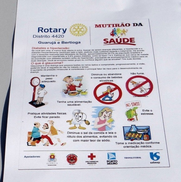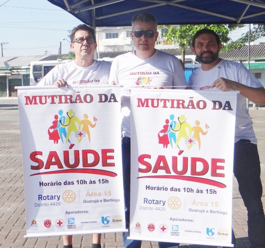 O Rotary Club de Guarujá juntamente com os clubes da área 15 que englobam os Rotarys Clubes das cidades de Bertioga e Guarujá participou coordenando o 1º Mutirão da Saúde da Área que foi realizado na Praça 14 Bis em Vicente de Carvalho. Foram cerca de 1000 atendimentos entre testes de glicemia, medição de pressão arterial e glaucoma. Ação contou com a parceria da Cruz Vermelha, Sabesp e Prefeitura do Guarujá e apoio da Porto Seguro, Translitoral e Barracão Restaurante.