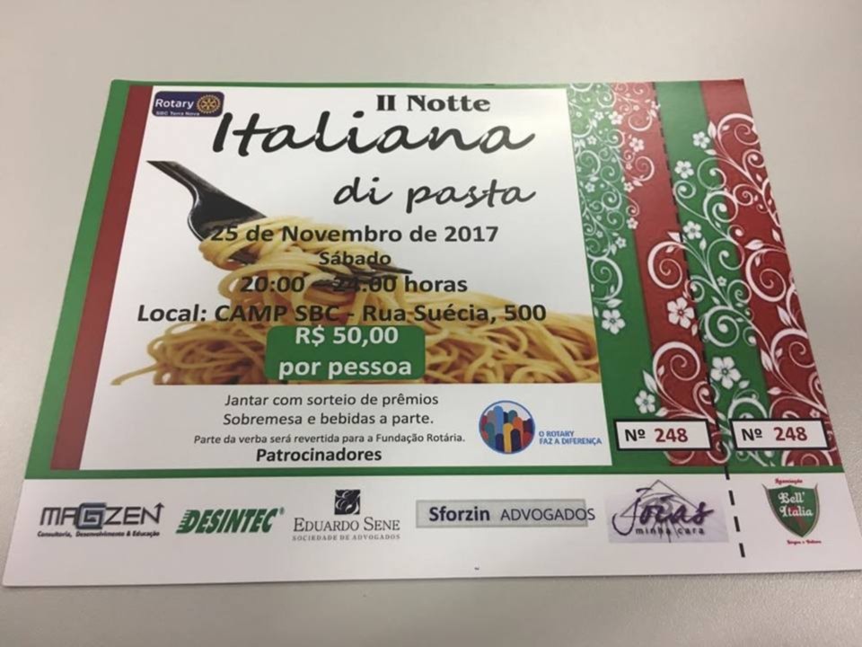 Em uma noite especial aconteceu hoje a II Noite Italiana di Pasta, promovida pelo RC SBC TERRA NOVA.