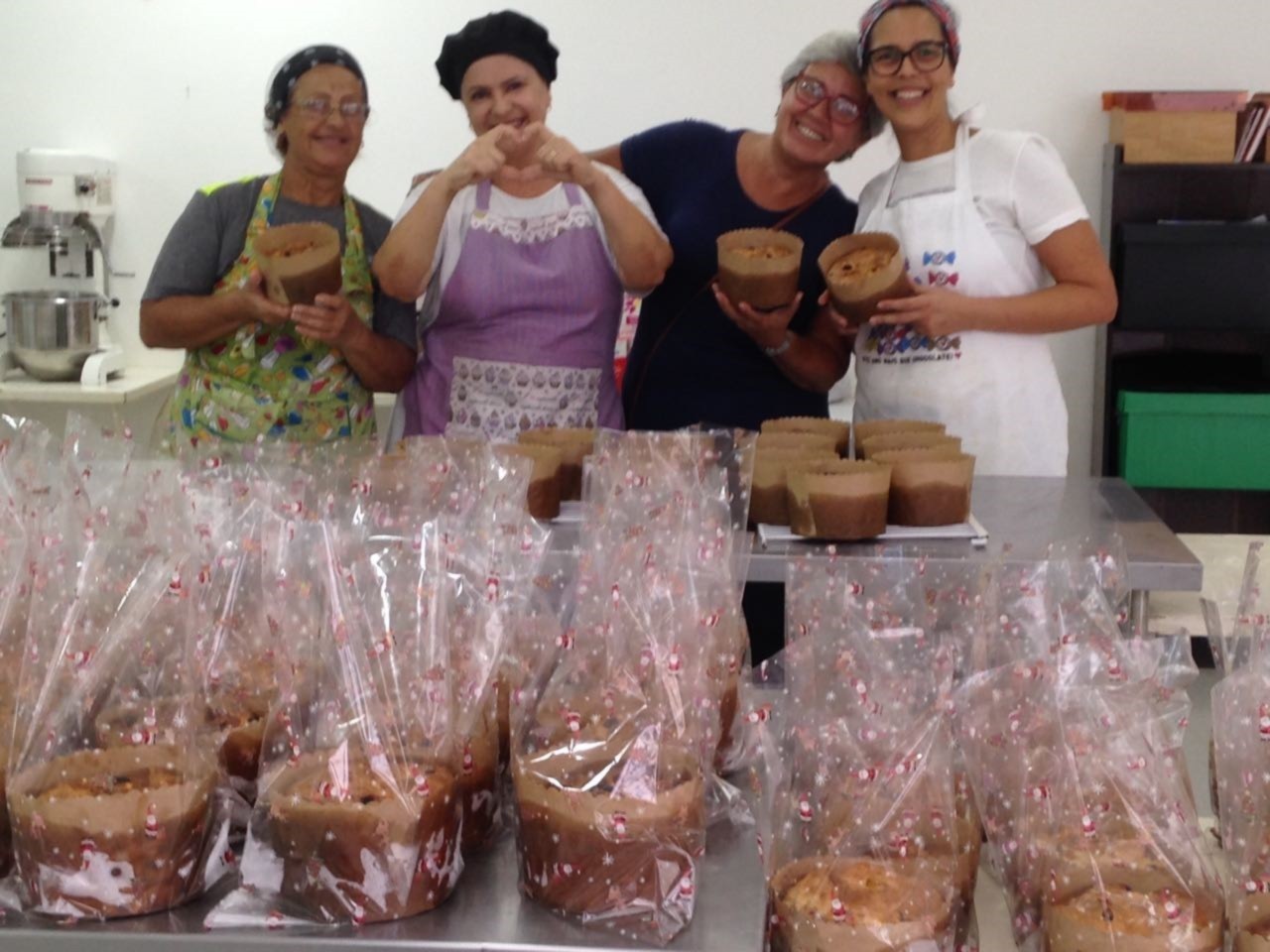 A Companheira Carolina Bulhões, junto com as voluntárias da Casa da Esperança de Santos, prepararam panettones que serão entregues as famílias assistidas pela Casa.