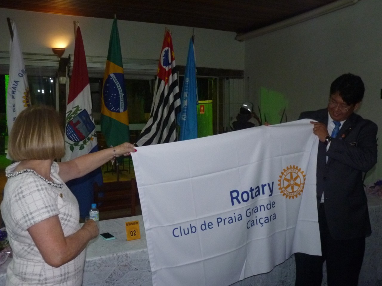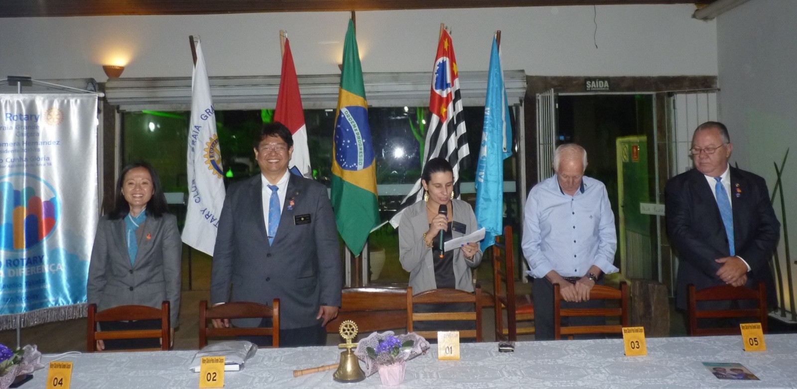 Aline Romera fez um breve discurso e agradeceu à presença de todos, em especial aos integrantes do clube. Afirmou sobre a noite agradável que passou ao lado do casal governador, falou sobre suas metas, projetos permanentes do clube e pediu aos associados que continuem a colaborar com este novo Conselho Diretor.