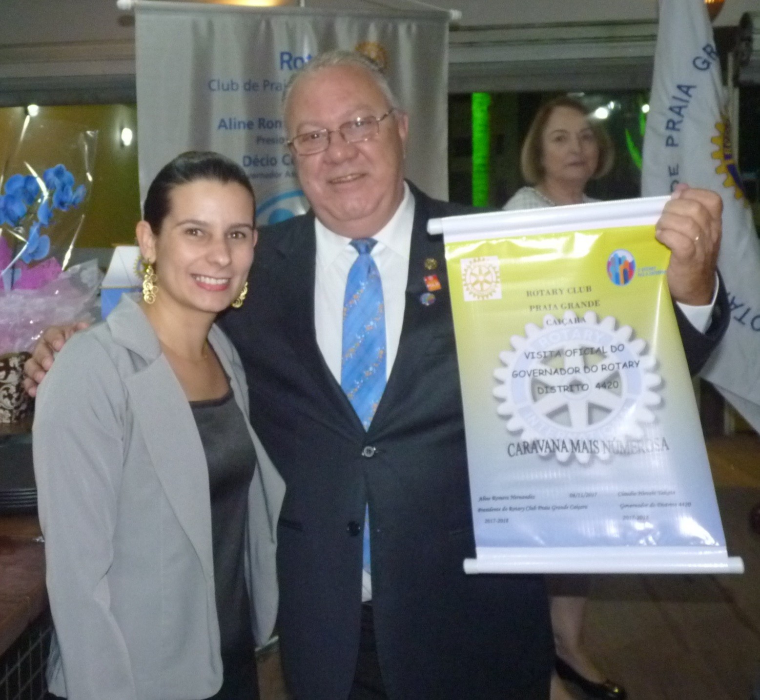 O casal foi recebido pelo governador assistente da área 16, Décio Cunha Glória, acompanhado pela presidente do clube, Aline Romera Hernandez alguns associados e equipe rotária.