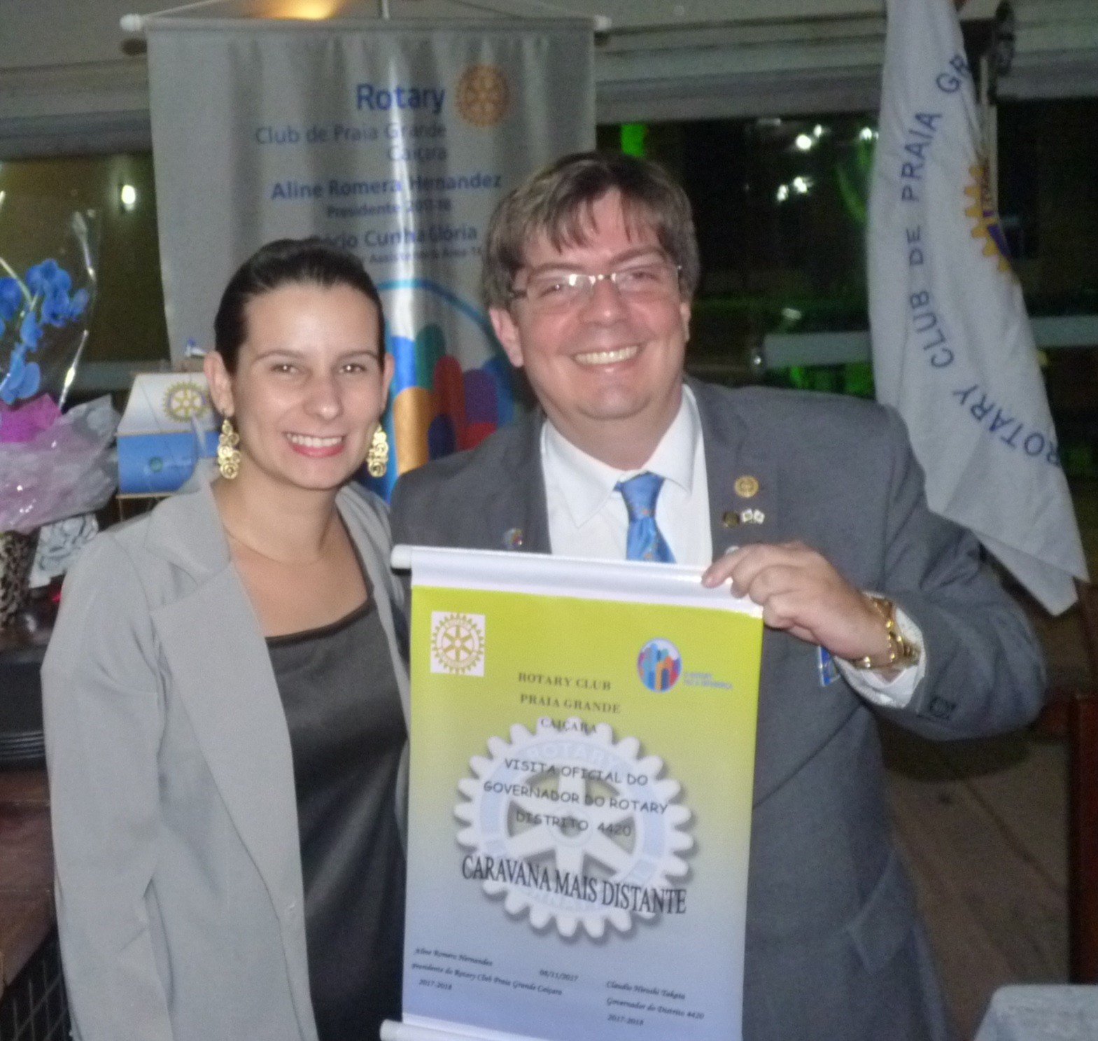 No dia 12 de novembro, o Rotary Club Praia Grande Caiçara recebeu a visita oficial do governador do Distrito 4420, Claudio Takata e sua esposa Marie. A festiva foi realizada no restaurante Forno de Ouro, em Praia Grande. O evento reuniu autoridades rotárias, membros da equipe distrital, familiares e amigos.