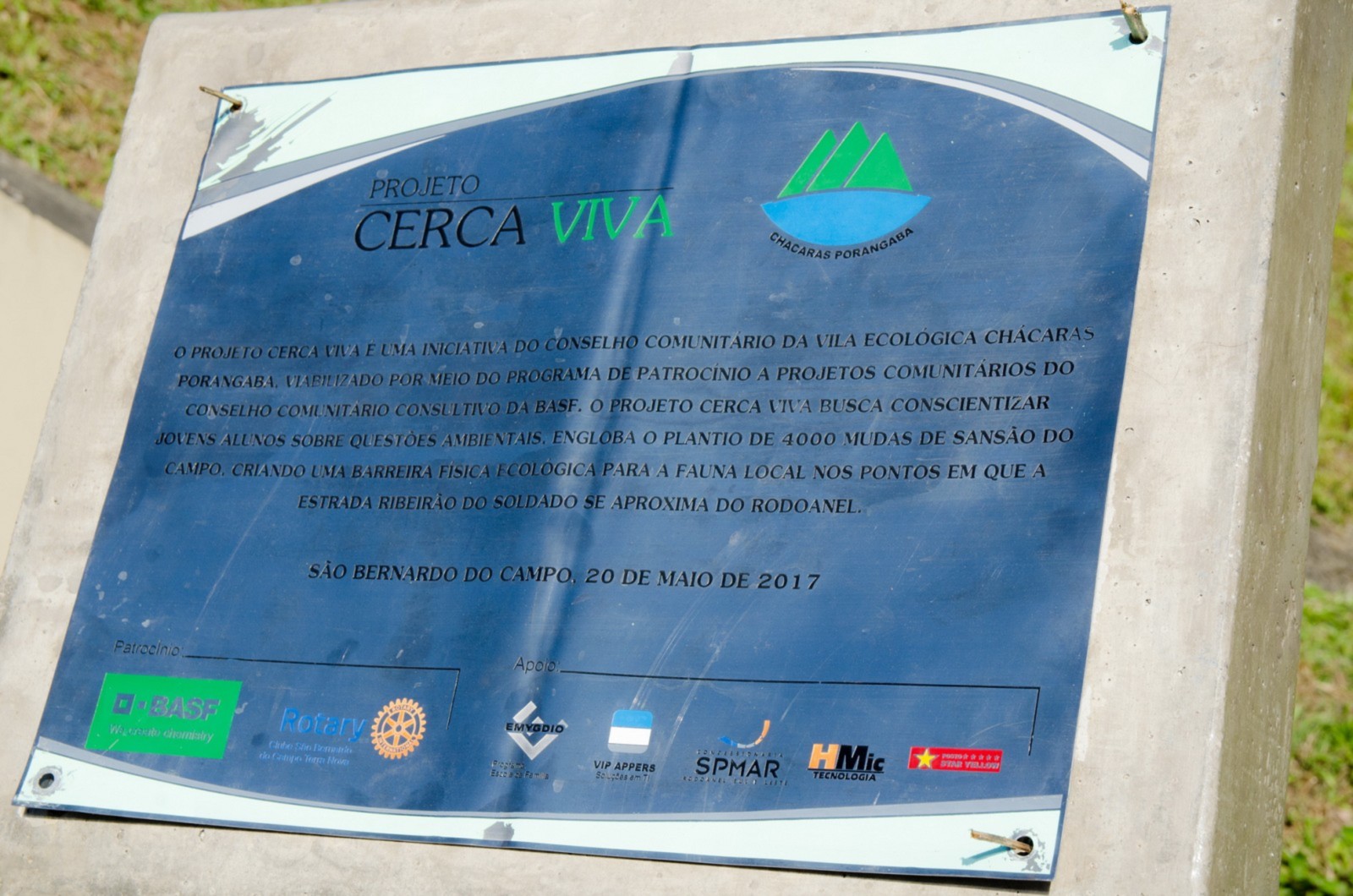 O projeto Cerca Viva é uma iniciativa do Conselho Comunitário da Vila Ecológica Chácaras Porangaba, viabilizado por meio do programa de patrocínio a projetos comunitários do Conselho Comunitário Consultivo da BASF em parceria com o RCSBC Terra Nova. Tem como objetivo conscientizar jovens alunos sobre as questões ambientais. Engloba o plantio de 4.000 mudas de Sansão do Campo, criando uma barreira física ecológica para a fauna local nos postos em que a estrada Ribeirão do Soldado se aproxima do Rodoanel.