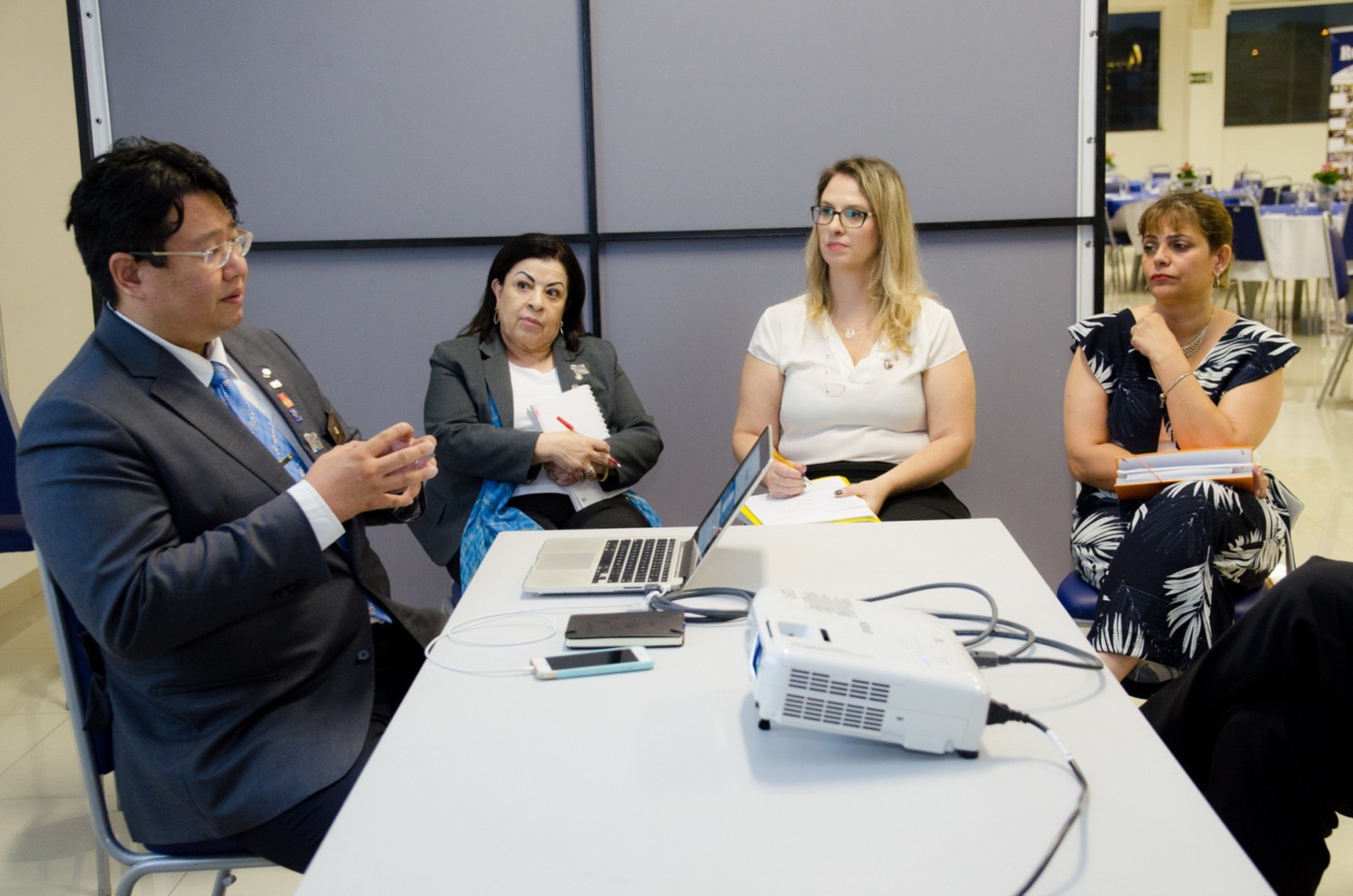 Em seguida, a equipe distrital retornou ao CAMP SBC, onde foi realizada uma breve reunião entre o governador e o presidente do clube, enquanto Célia Ceschin, governadora assistente, reunia-se com membros da secretaria e tesouraria.