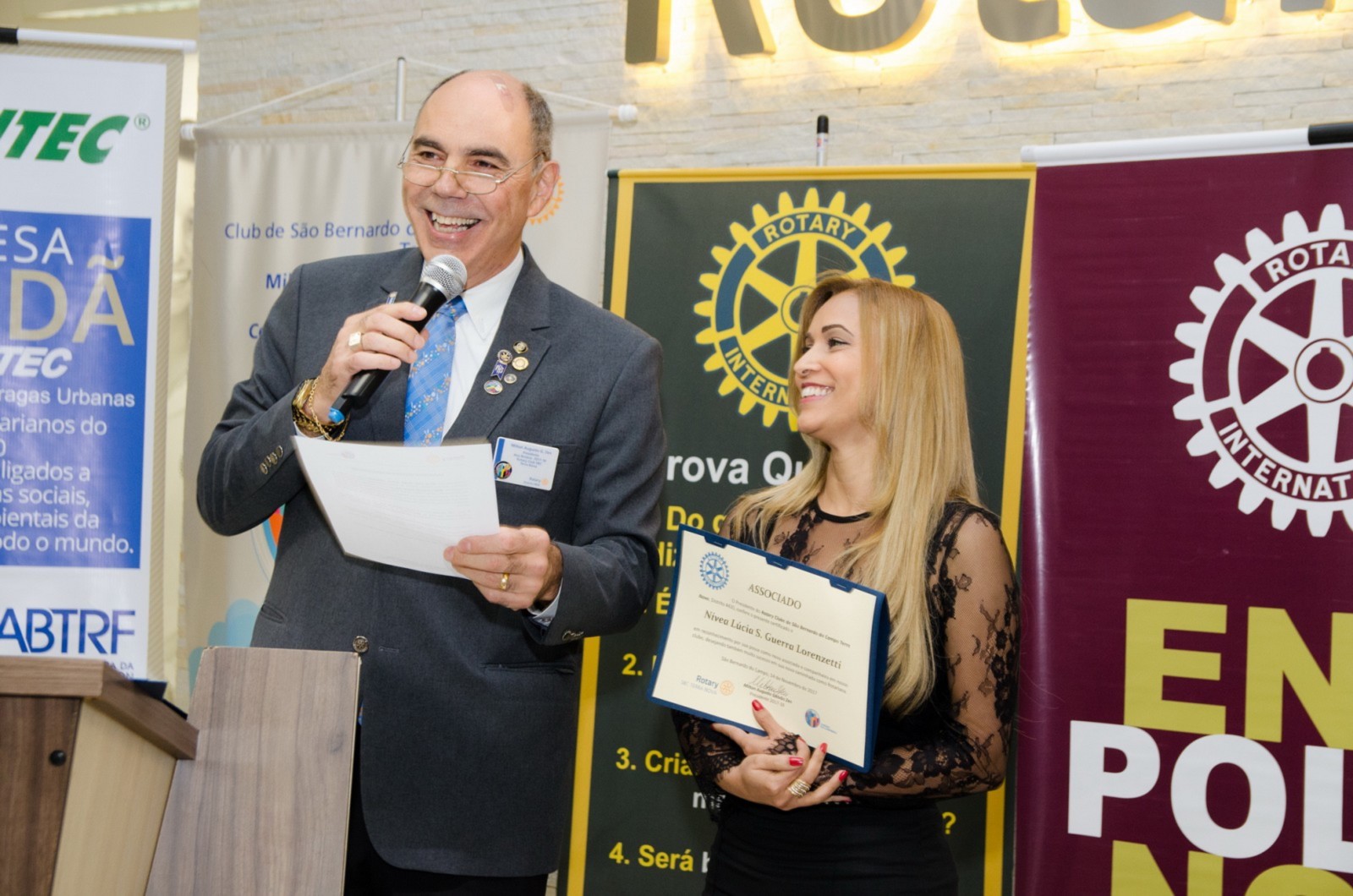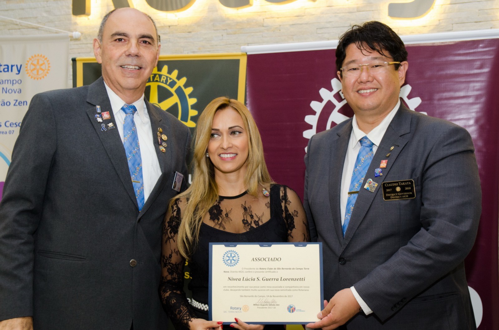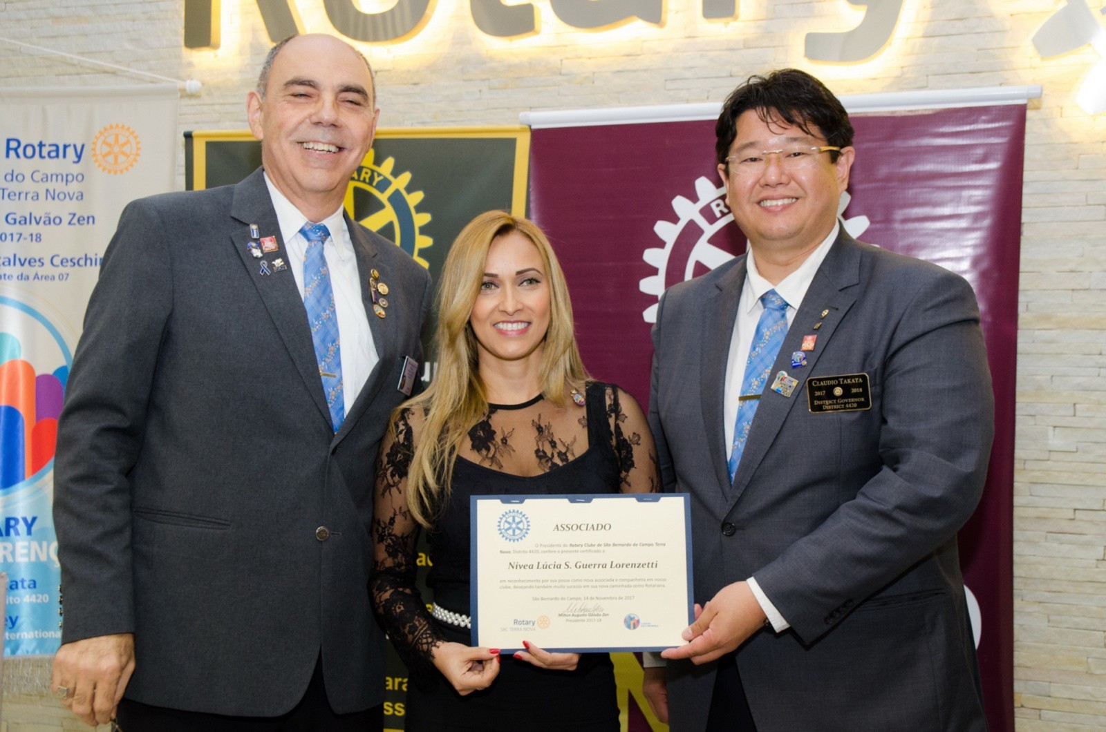 Durante a cerimônia, o presidente empossou uma nova companheira: Nívia Lucia S. Guerra Lorenzetti. Ela ocupou a tribuna e fez a leitura da Promessa Rotária.