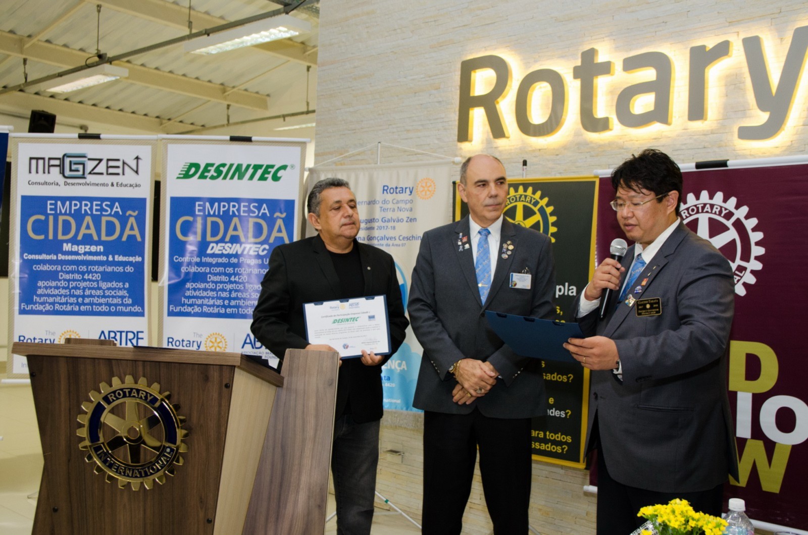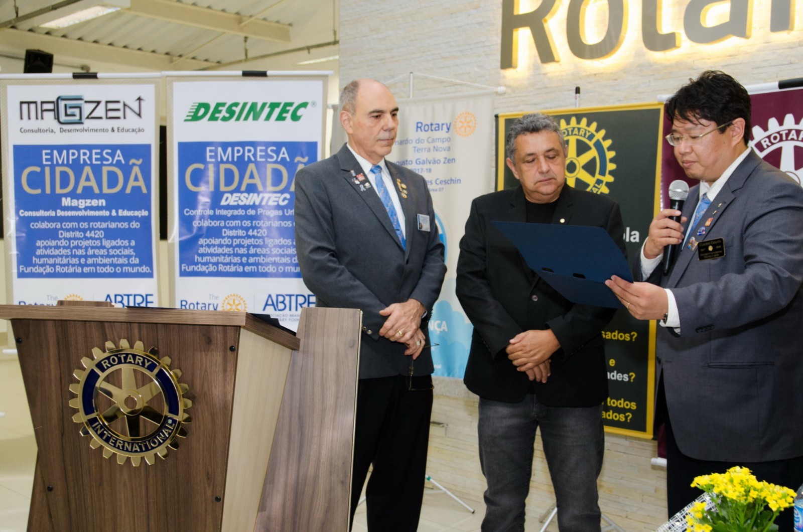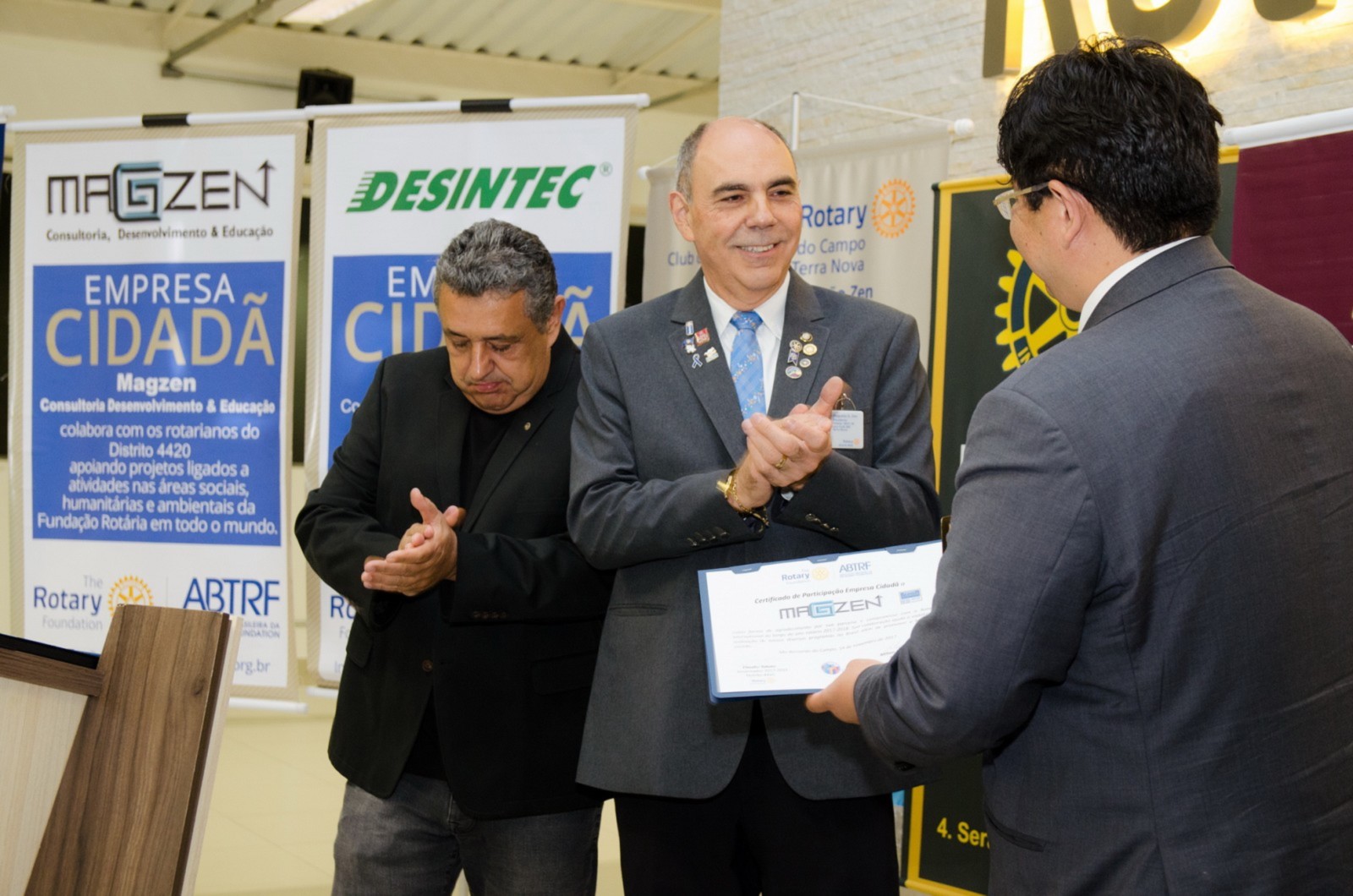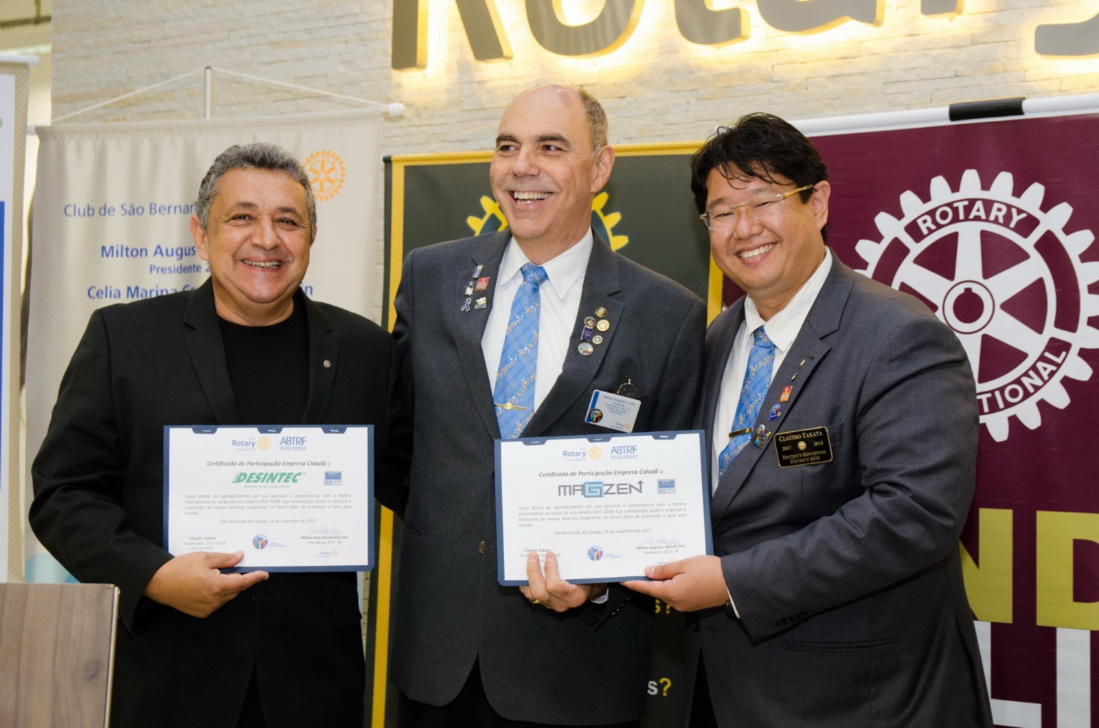 As empresas cidadãs Desintec e Magzen foram reconhecidas e homenageadas pelo governador por suas ações e compromissos com a causa rotária.
