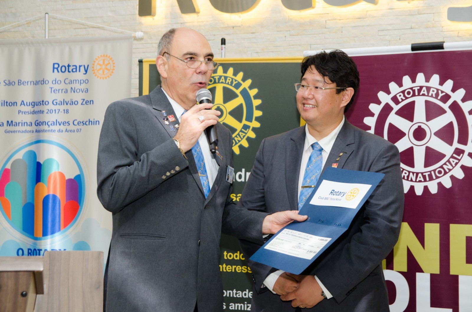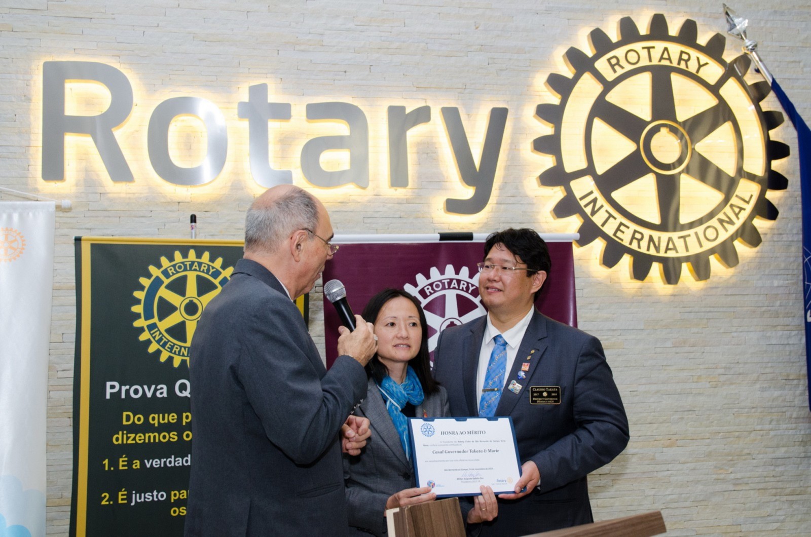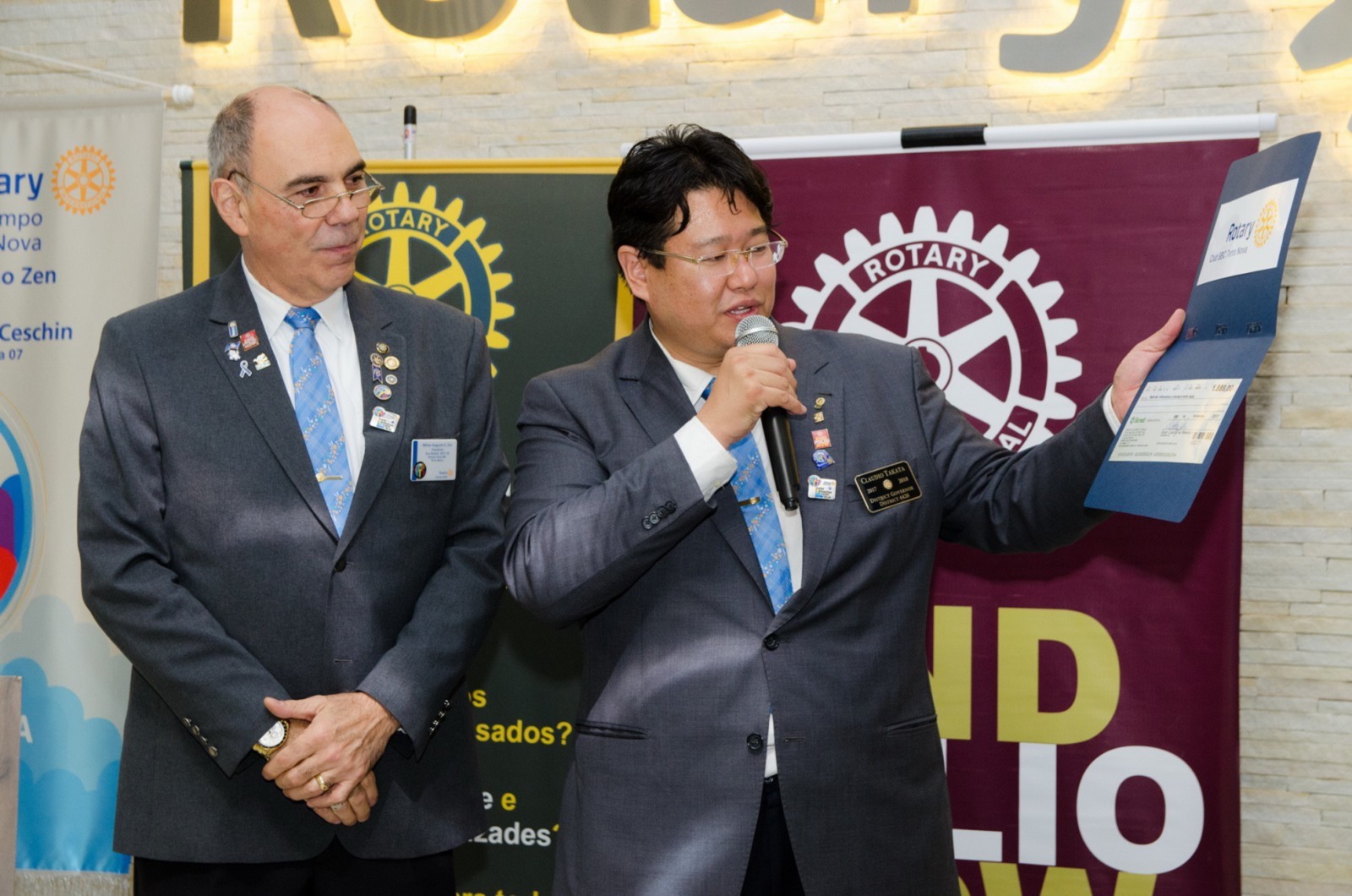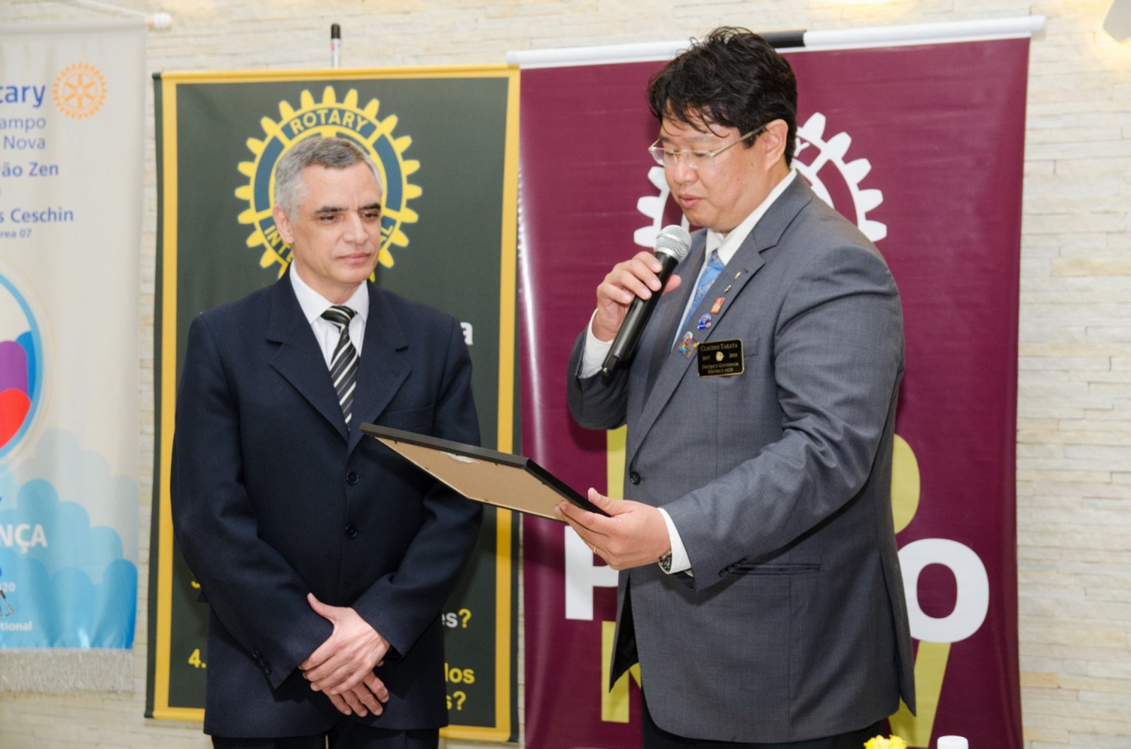 Silvio José Marola e Hiroshi Shimuta receberam o título de Sócio Honorário. O governador do Distrito os presenteou com um certificado em forma de reconhecimento e agradecimento aos serviços prestados.