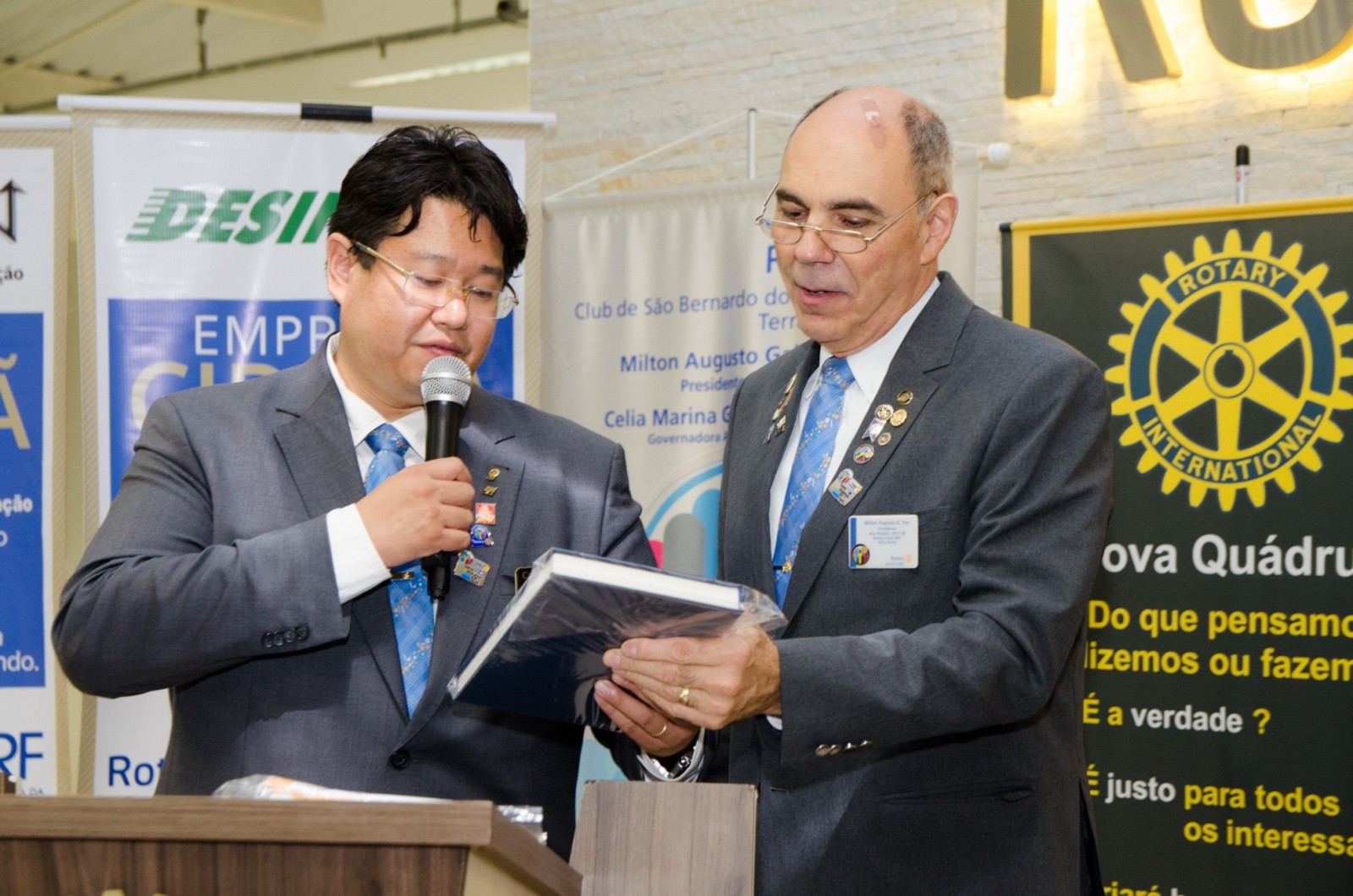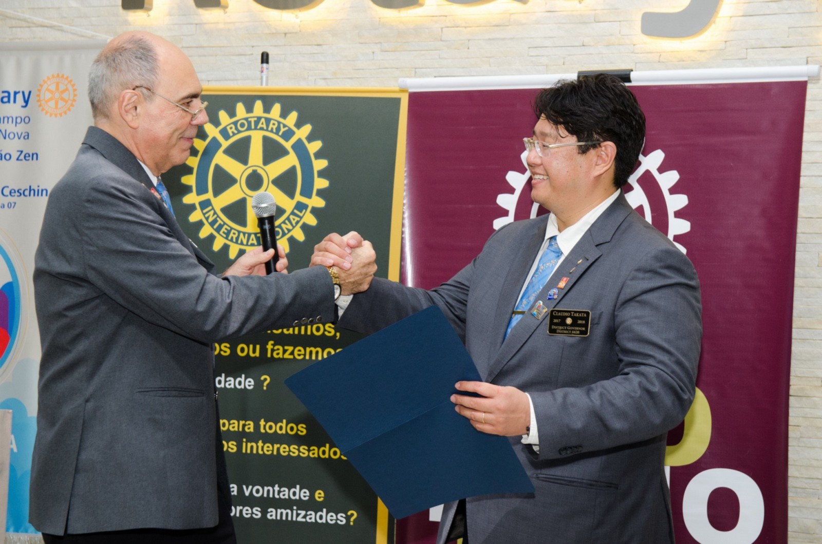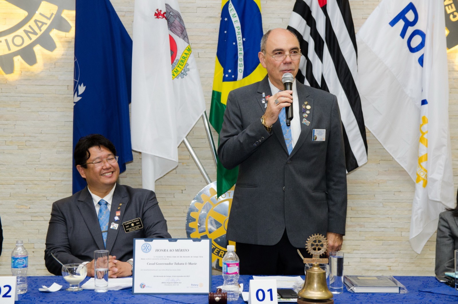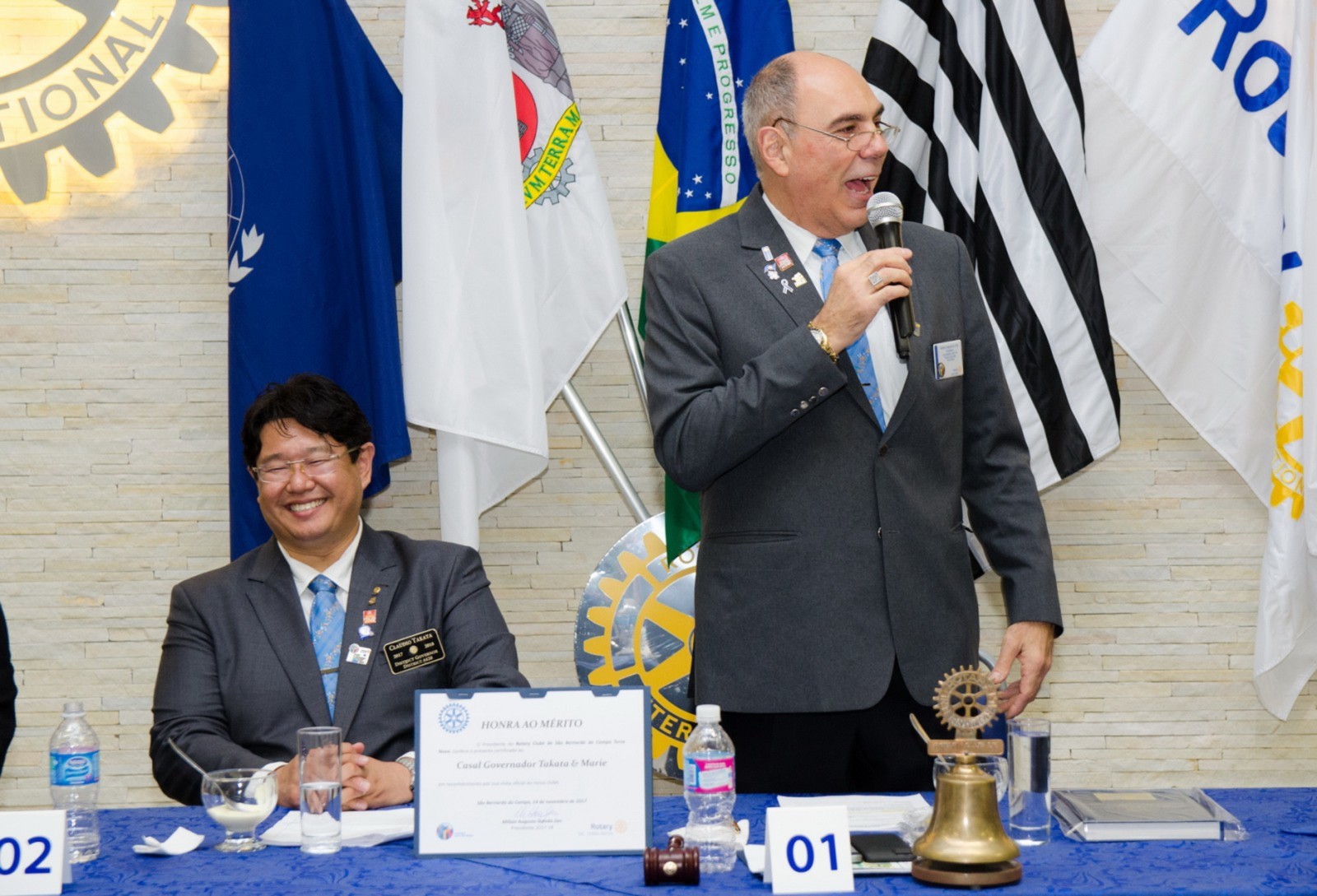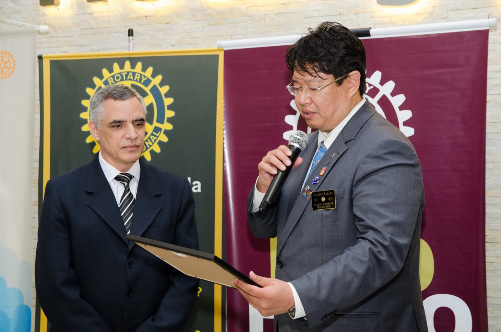 Silvio José Marola e Hiroshi Shimuta receberam o título de Sócio Honorário. O governador do Distrito os presenteou com um certificado em forma de reconhecimento e agradecimento aos serviços prestados.