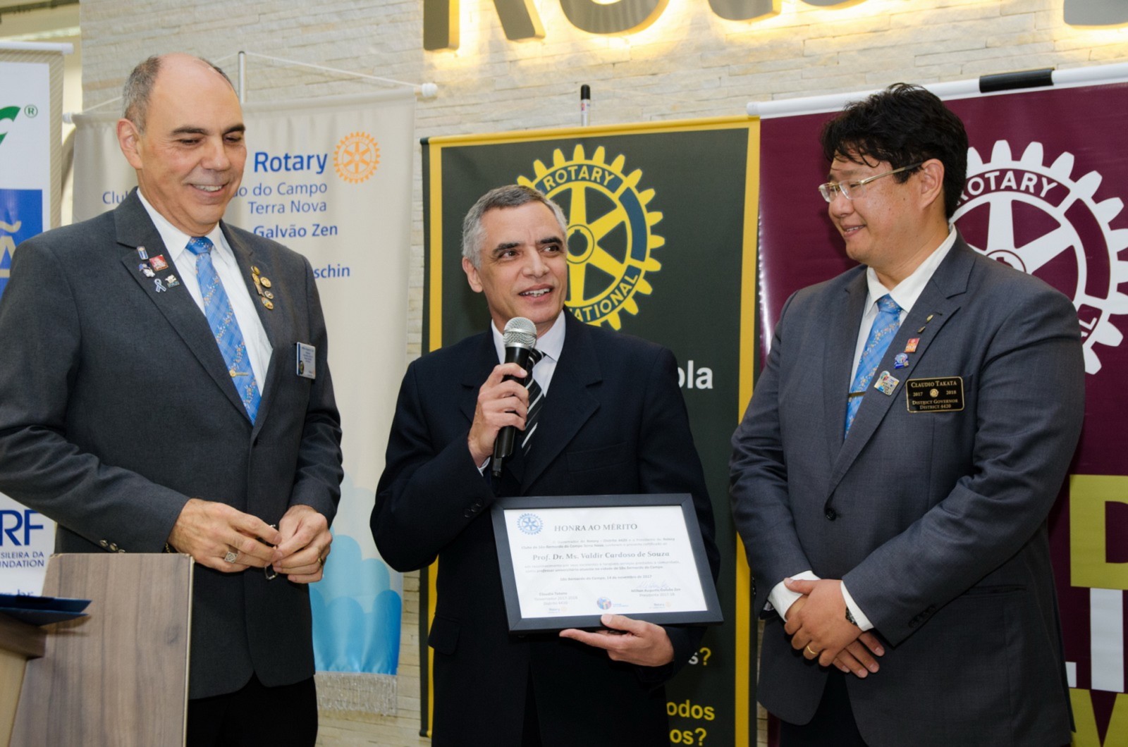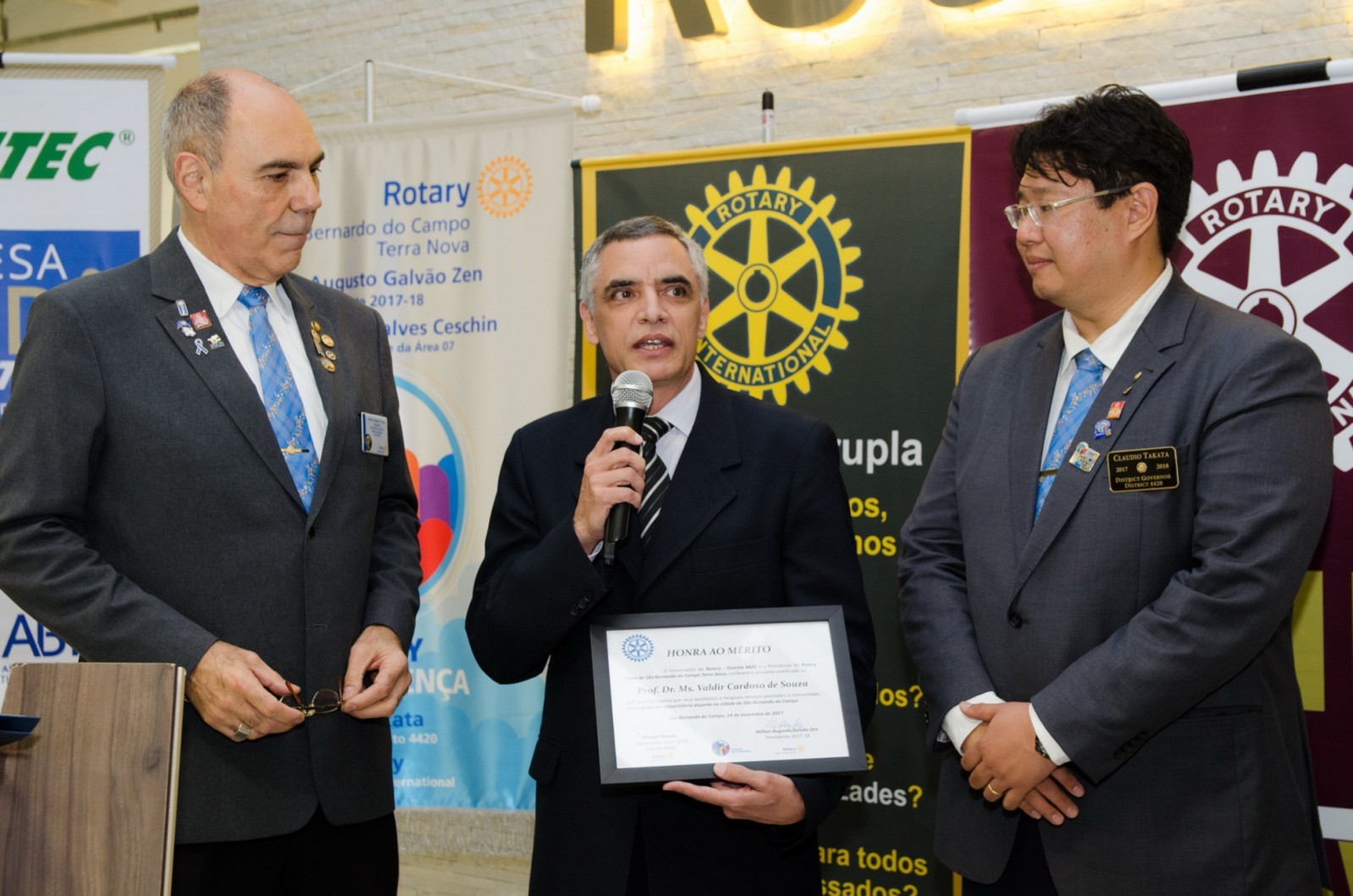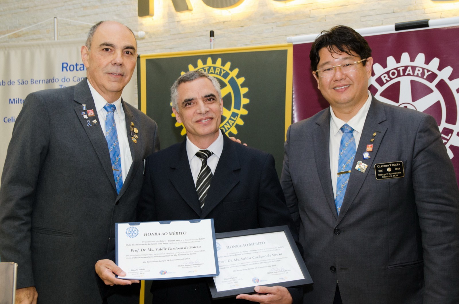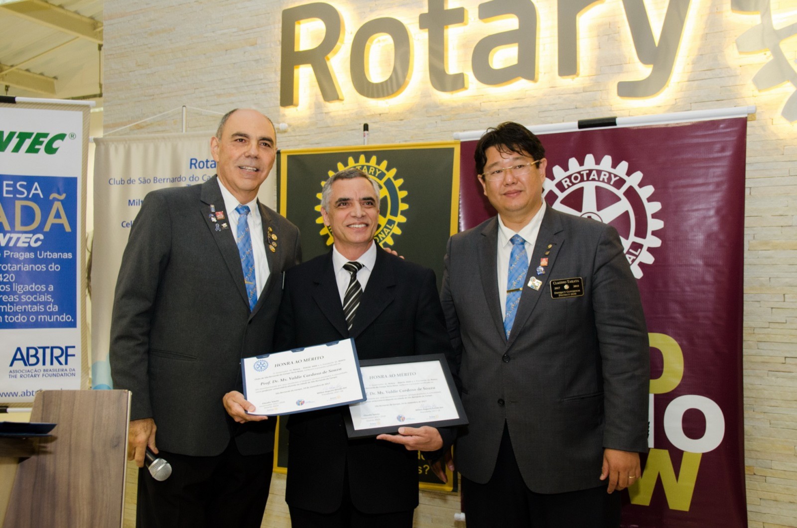 O Prof. Dr. Ms. Valdir Cardoso de Souza foi o homenageado na área educação. Ele recebeu das mãos do governador do Distrito 4420, um certificado e uma placa em forma de reconhecimento e agradecimento pelos relevantes serviços prestados como educador universitário na cidade de São Bernardo do Campo.
