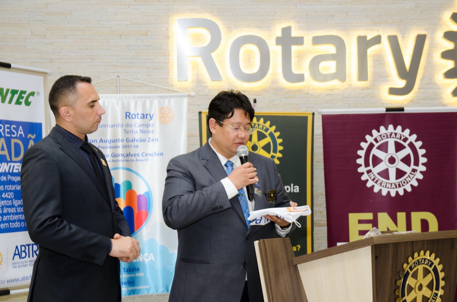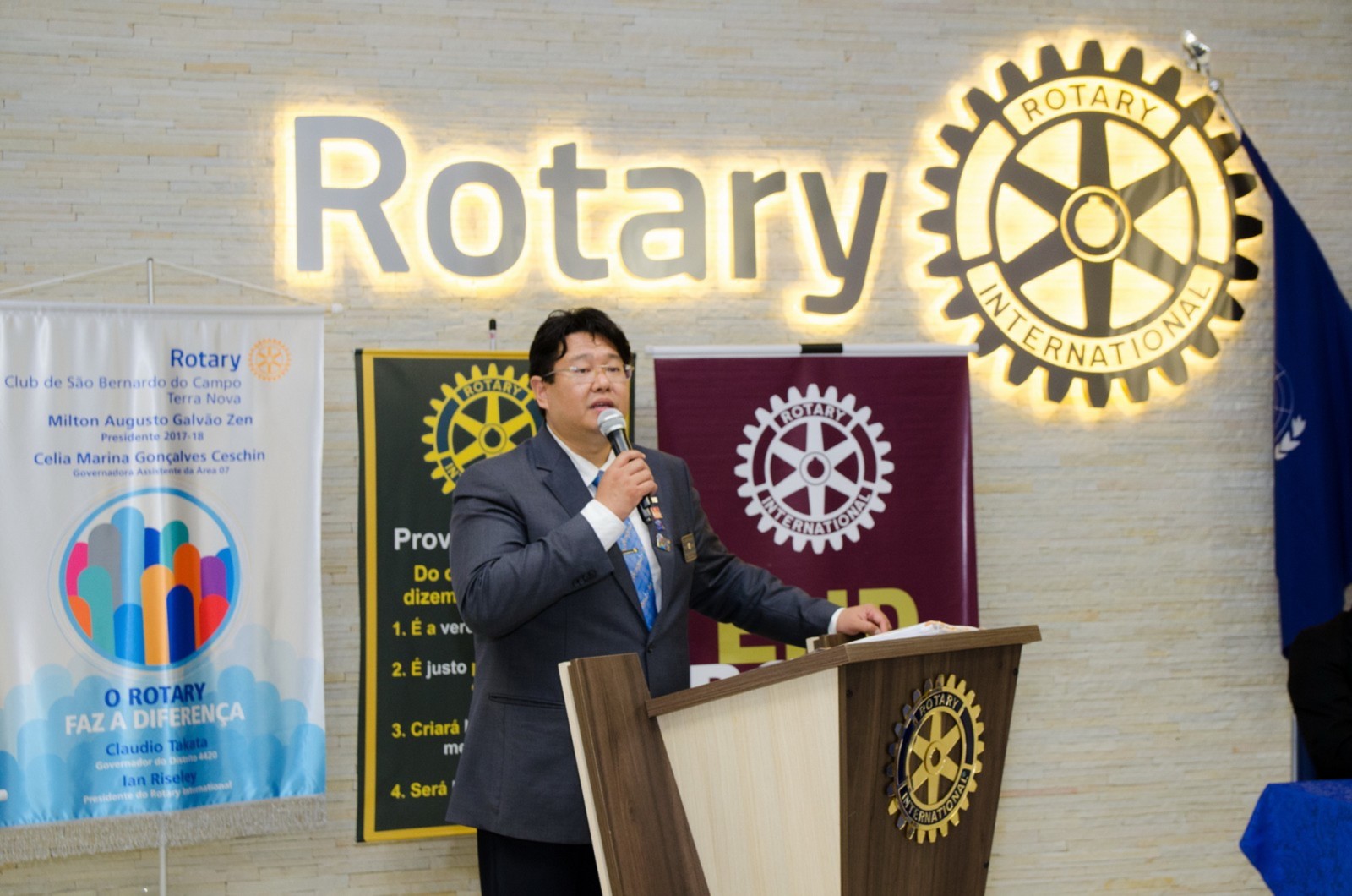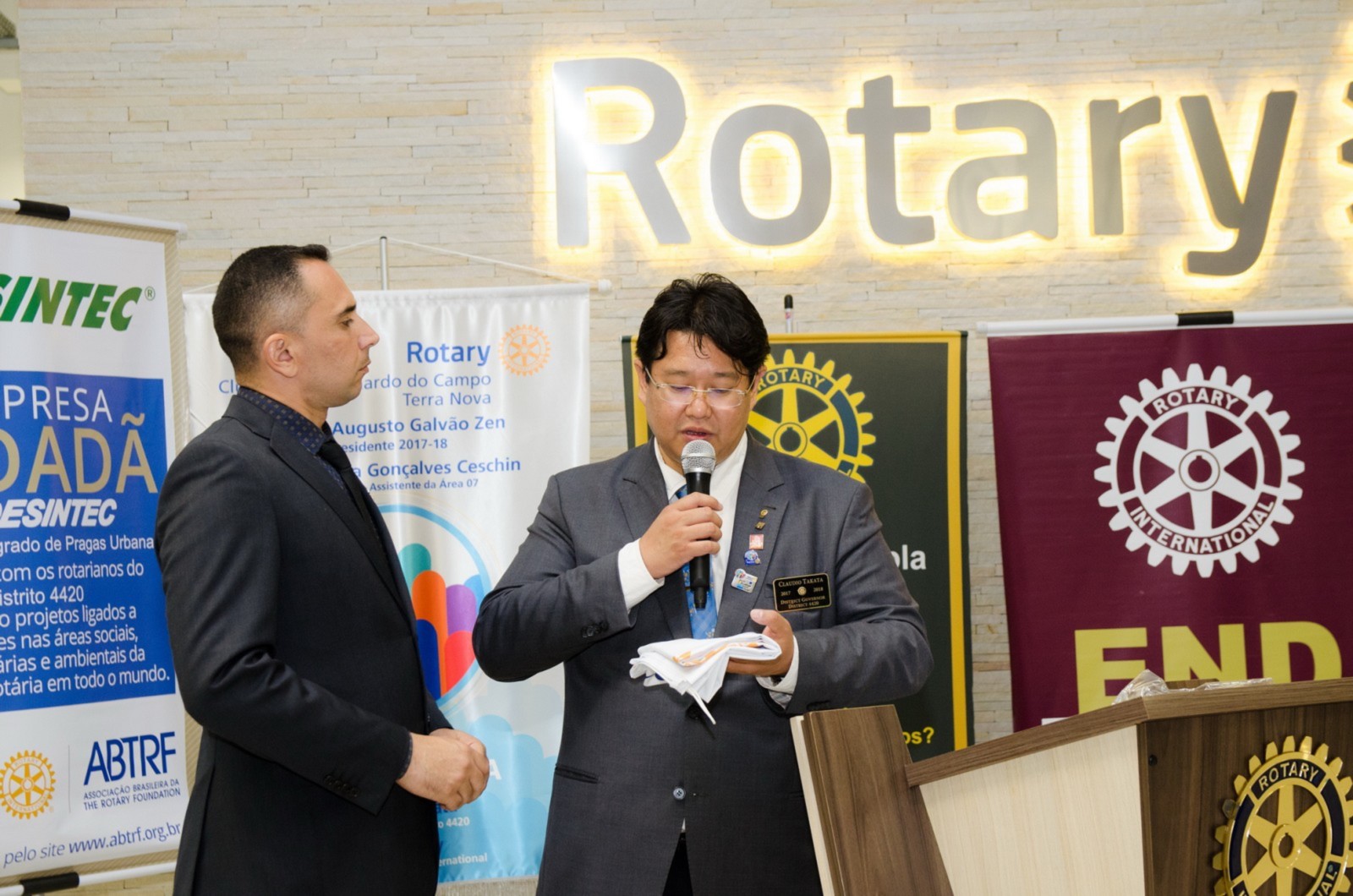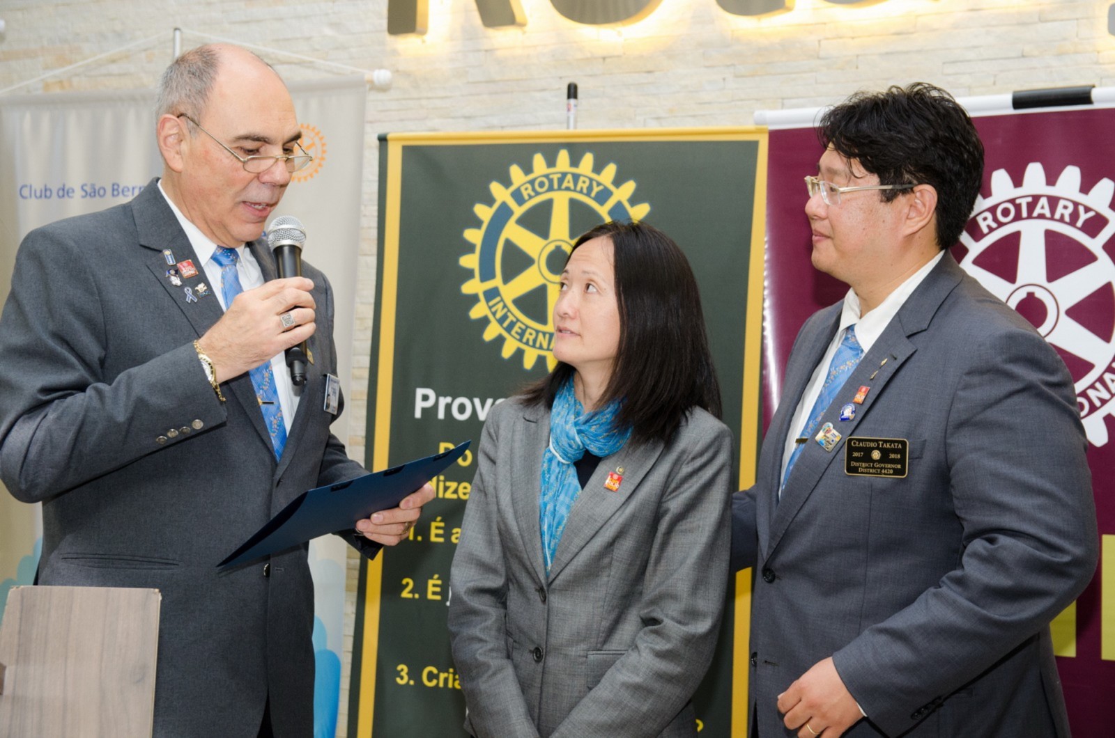 Após foi realizada à assembleia com integrantes da equipe rotária. Takata reforçou que para o novo ano rotário 2017-2018 foram definidas como prioridades as seguintes estratégias organizacionais: fortalecimento e apoio aos clubes; maior enfoque à expansão dos serviços humanitários como o reforço do combate a poliomielite, o plantio de árvores, aumento da projeção e imagem pública da organização, entre outros.