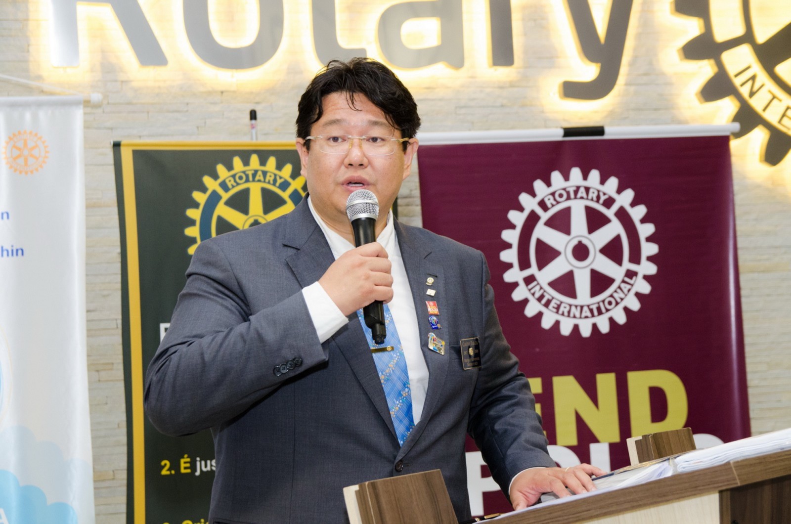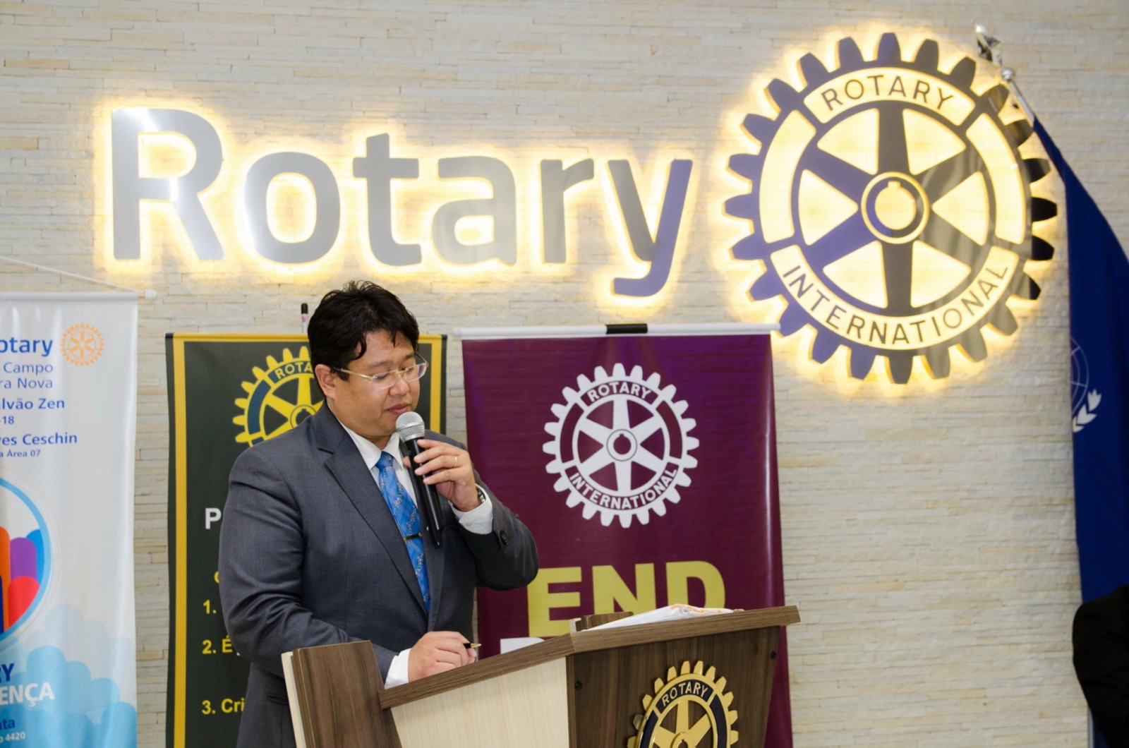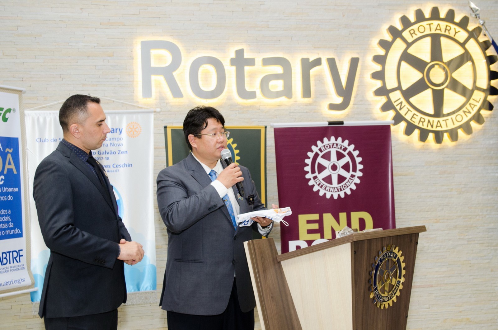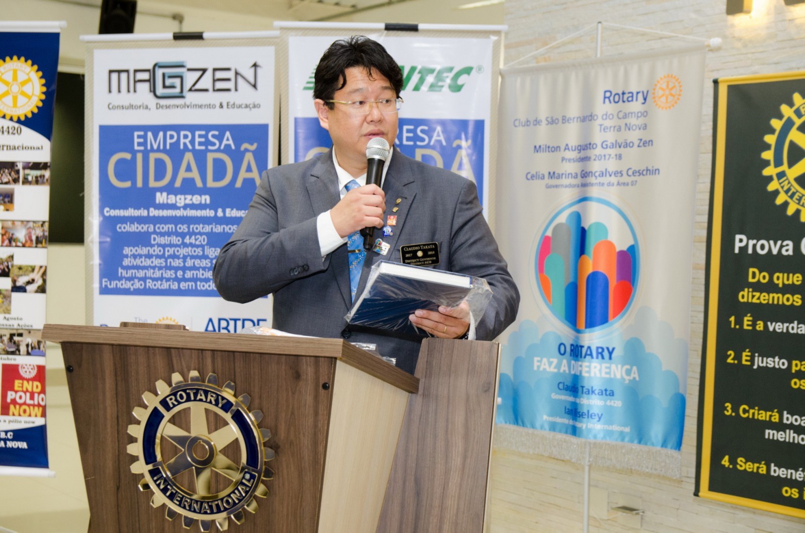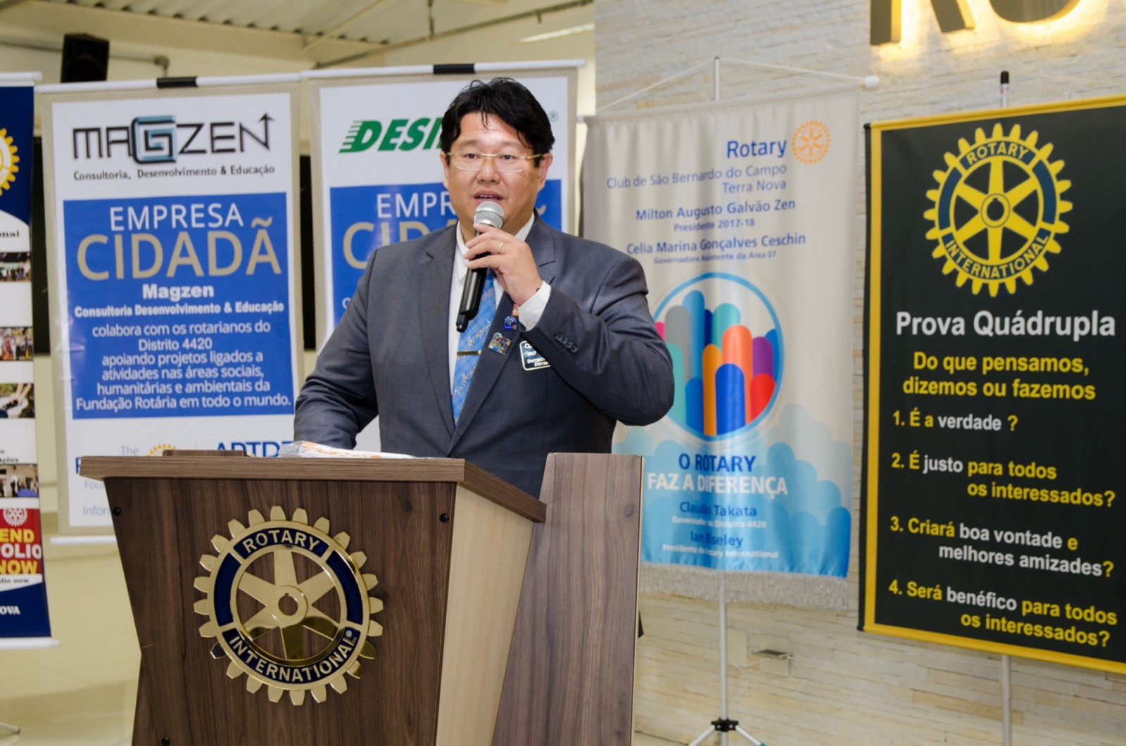 Após foi realizada à assembleia com integrantes da equipe rotária. Takata reforçou que para o novo ano rotário 2017-2018 foram definidas como prioridades as seguintes estratégias organizacionais: fortalecimento e apoio aos clubes; maior enfoque à expansão dos serviços humanitários como o reforço do combate a poliomielite, o plantio de árvores, aumento da projeção e imagem pública da organização, entre outros.