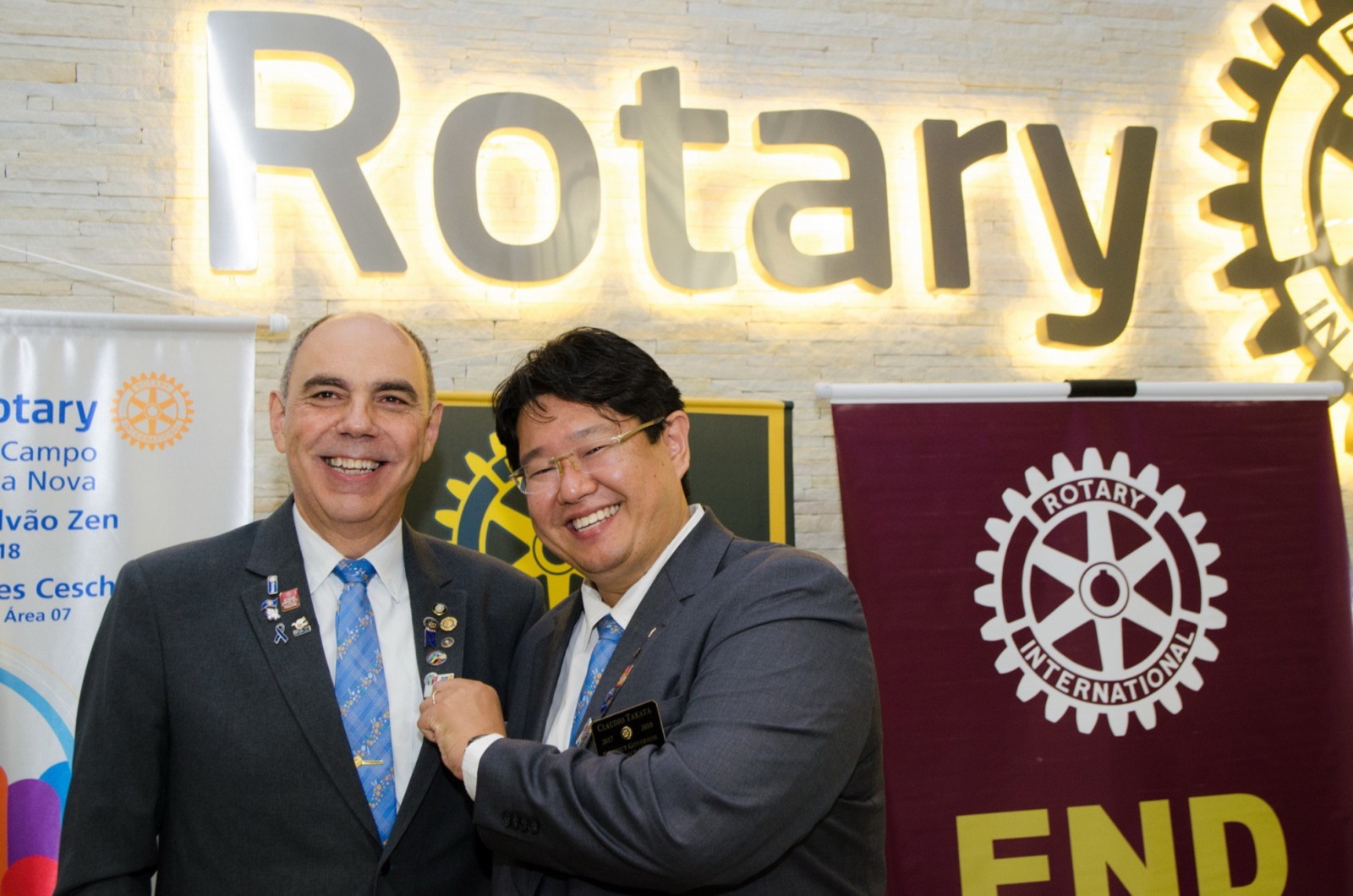 Claudio Takata parabenizou o clube pelos certificados de 100 Erey e 100 na Campanha End Polio Now, todos os associados receberam um pin em forma de agradecimento. É uma tradição de o clube apoiar o próximo, sempre comprometido com a região.