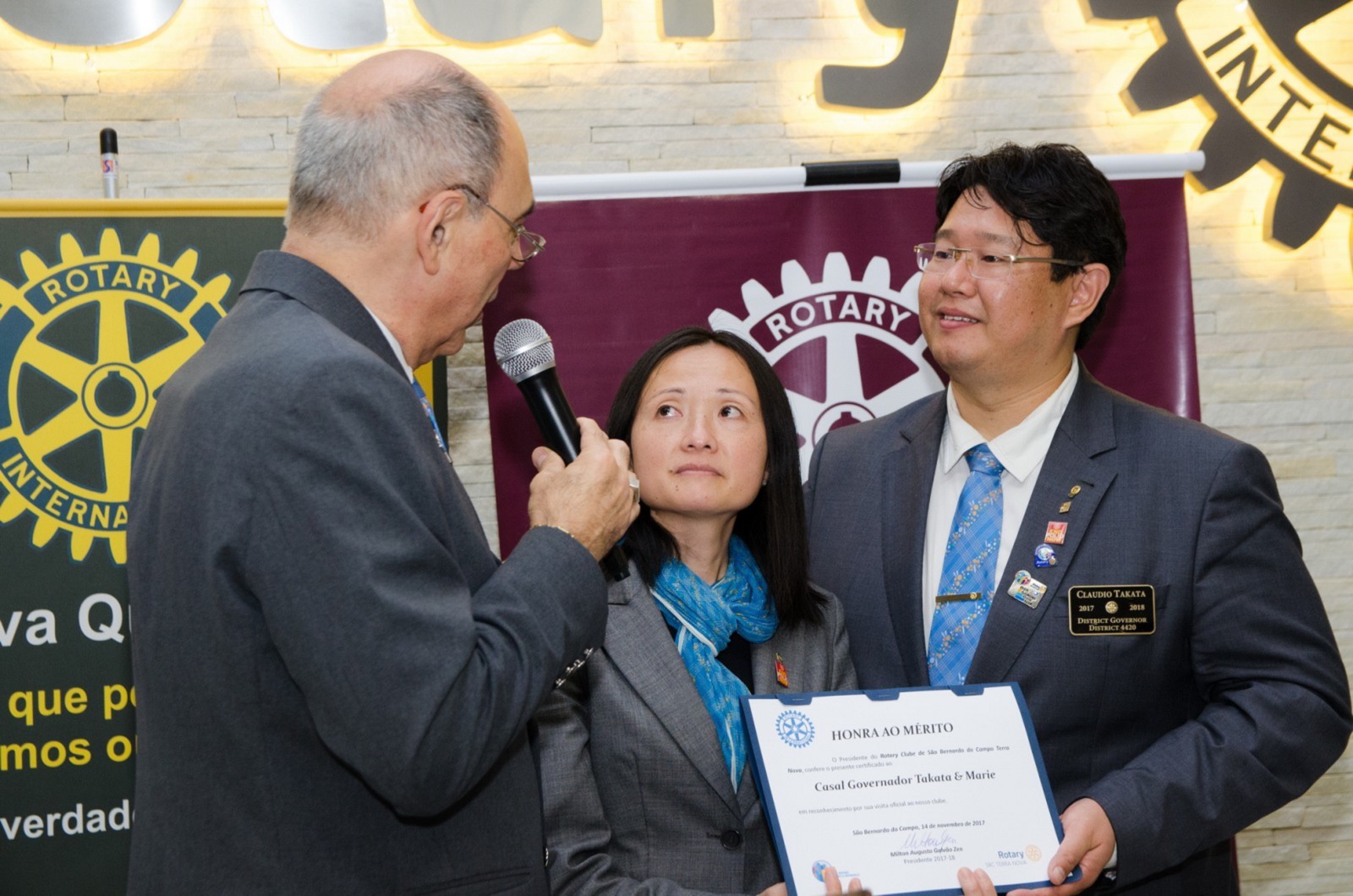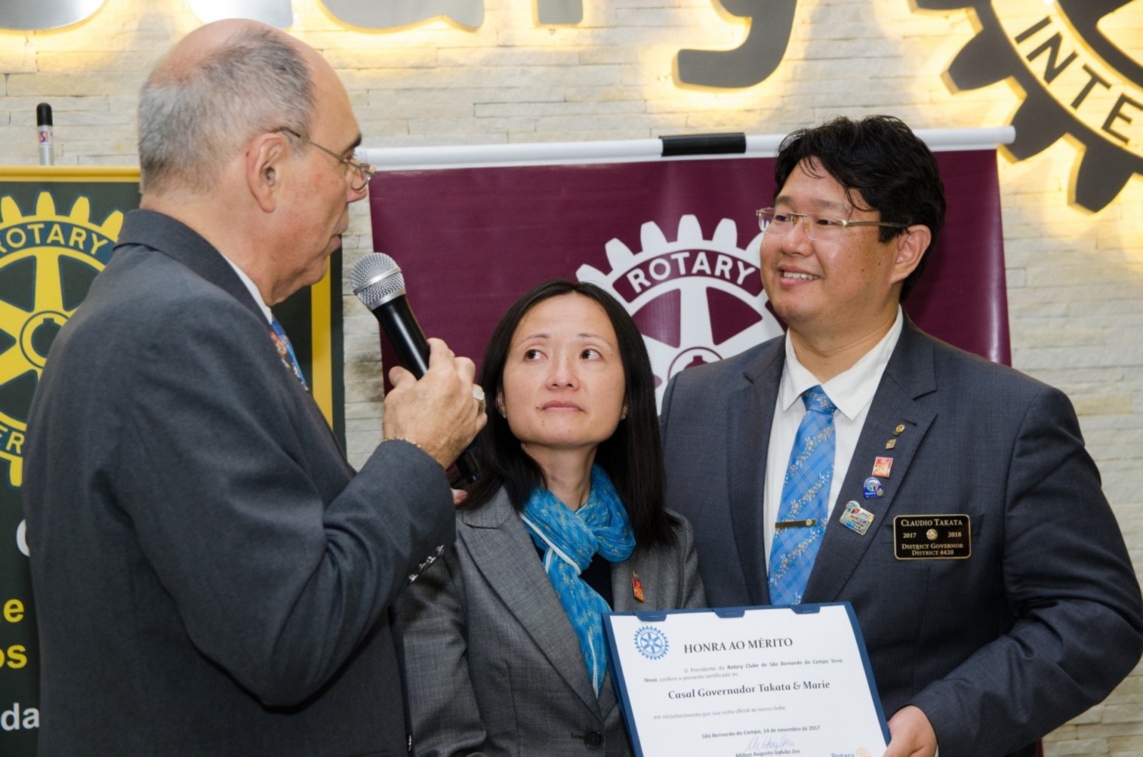 No dia 14 de novembro, o Rotary Club São Bernardo do Campo Terra Nova recebeu a visita oficial do governador do Distrito 4420, Claudio Takata e sua esposa Marie. A festiva foi realizada no CAMP SBC (Centro de Formação e Integração Social) em São Bernardo do Campo. O evento reuniu autoridades rotárias, membros da equipe distrital, familiares e amigos.