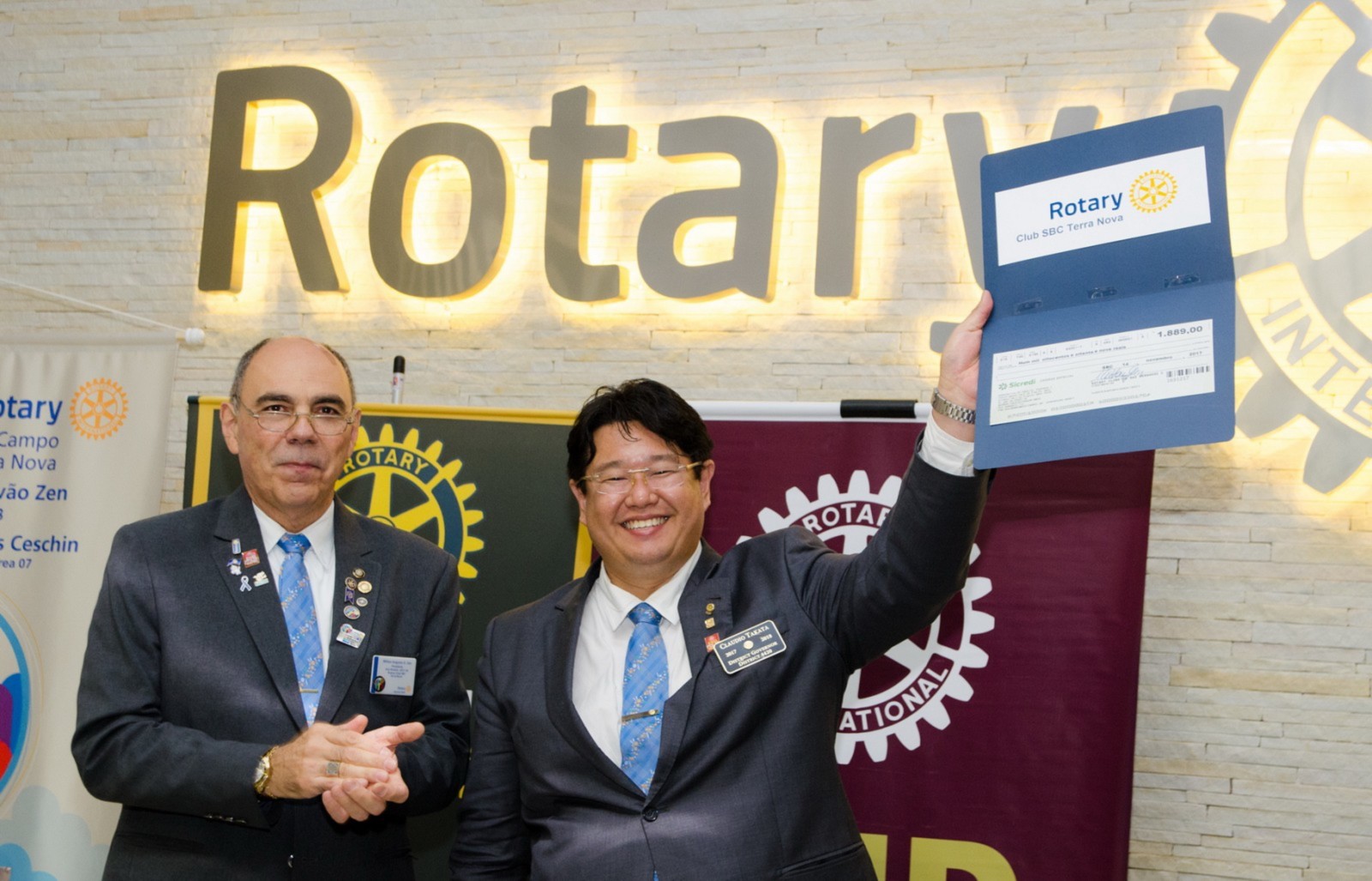 O presidente do RCSBC Terra Nova presenteou o governador com a doação de um cheque no valor de R$ 1.889,00, destinados à Fundação Rotária. Também homenageou o casal governador com um certificado de Honra ao Mérito, em reconhecimento à visita oficial. Takata agradeceu em nome do Distrito 4420.