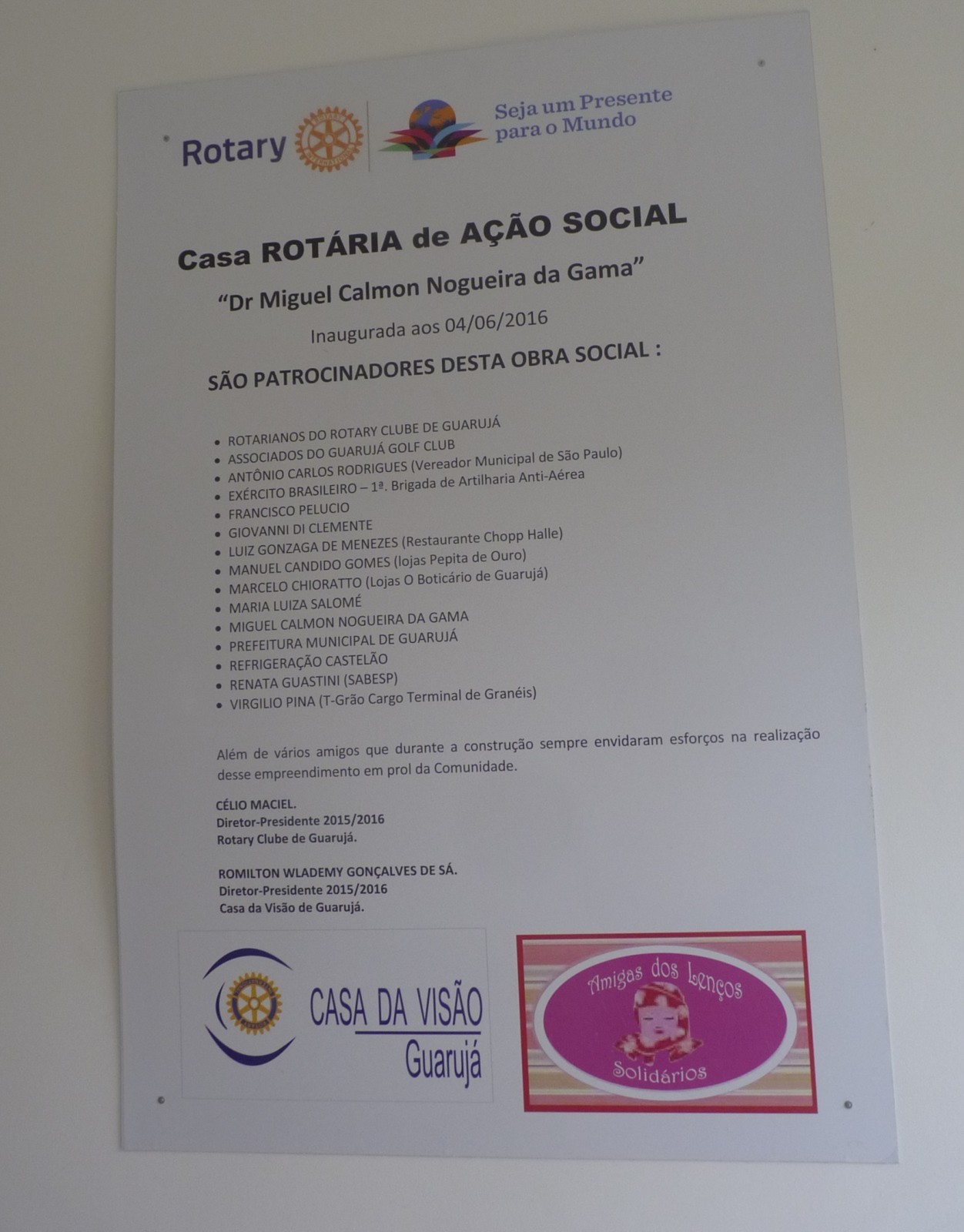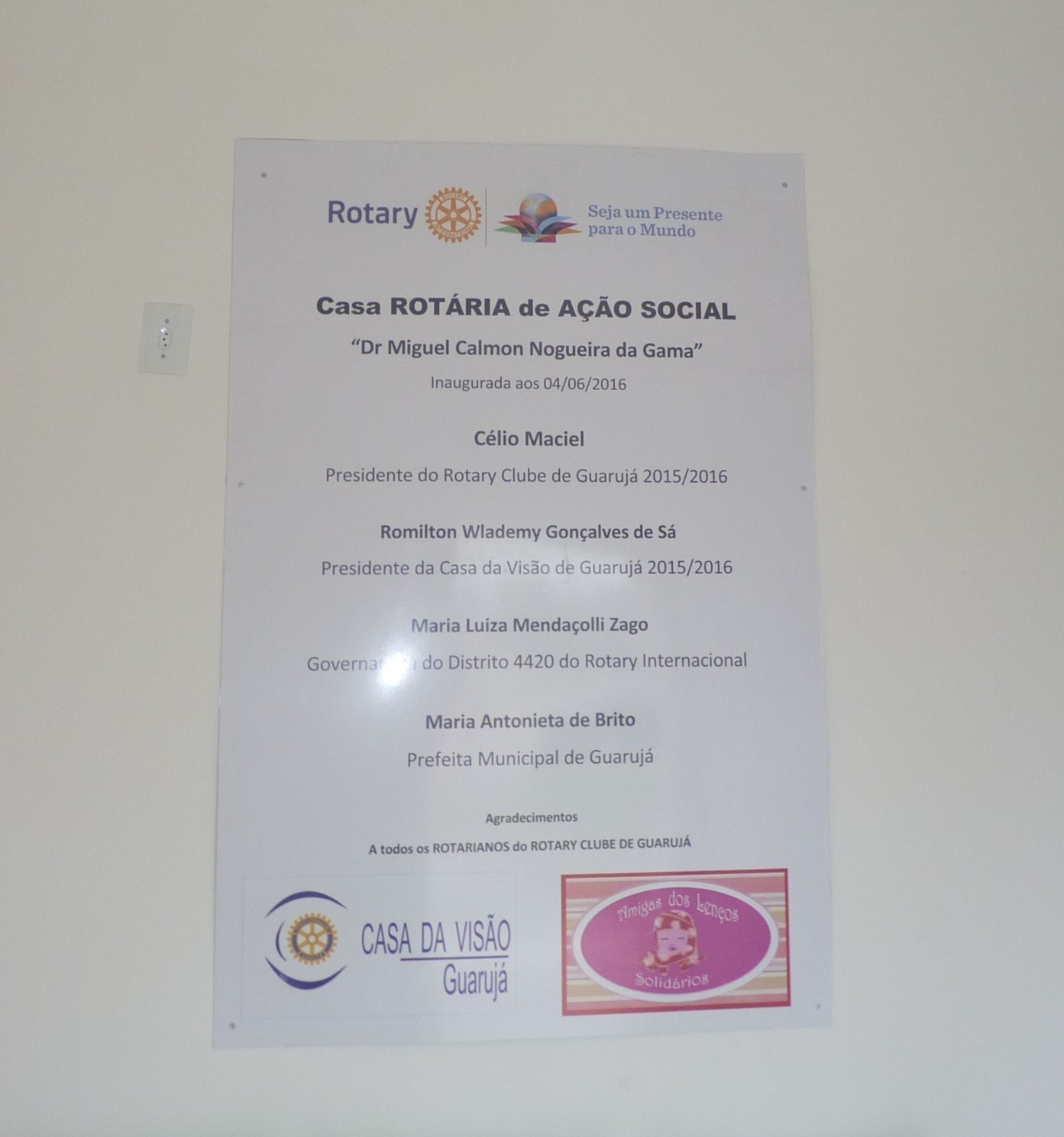 A Casa Rotária de Ação Social - Doutor Miguel Calmon Nogueira da Gama foi fundada em 04 de junho de 2016 pelo Rotary Club Guarujá, gestão 2015-16, em parceria com a Prefeitura, que cedeu o terreno para construção do espaço. Sua estrutura é formada pela Casa da Visão e Instituto das Amigas dos Lenços Solidários.