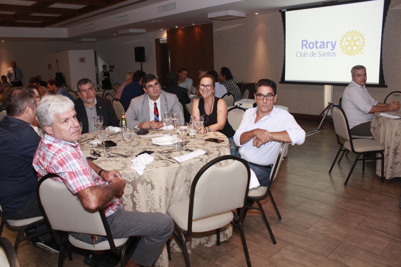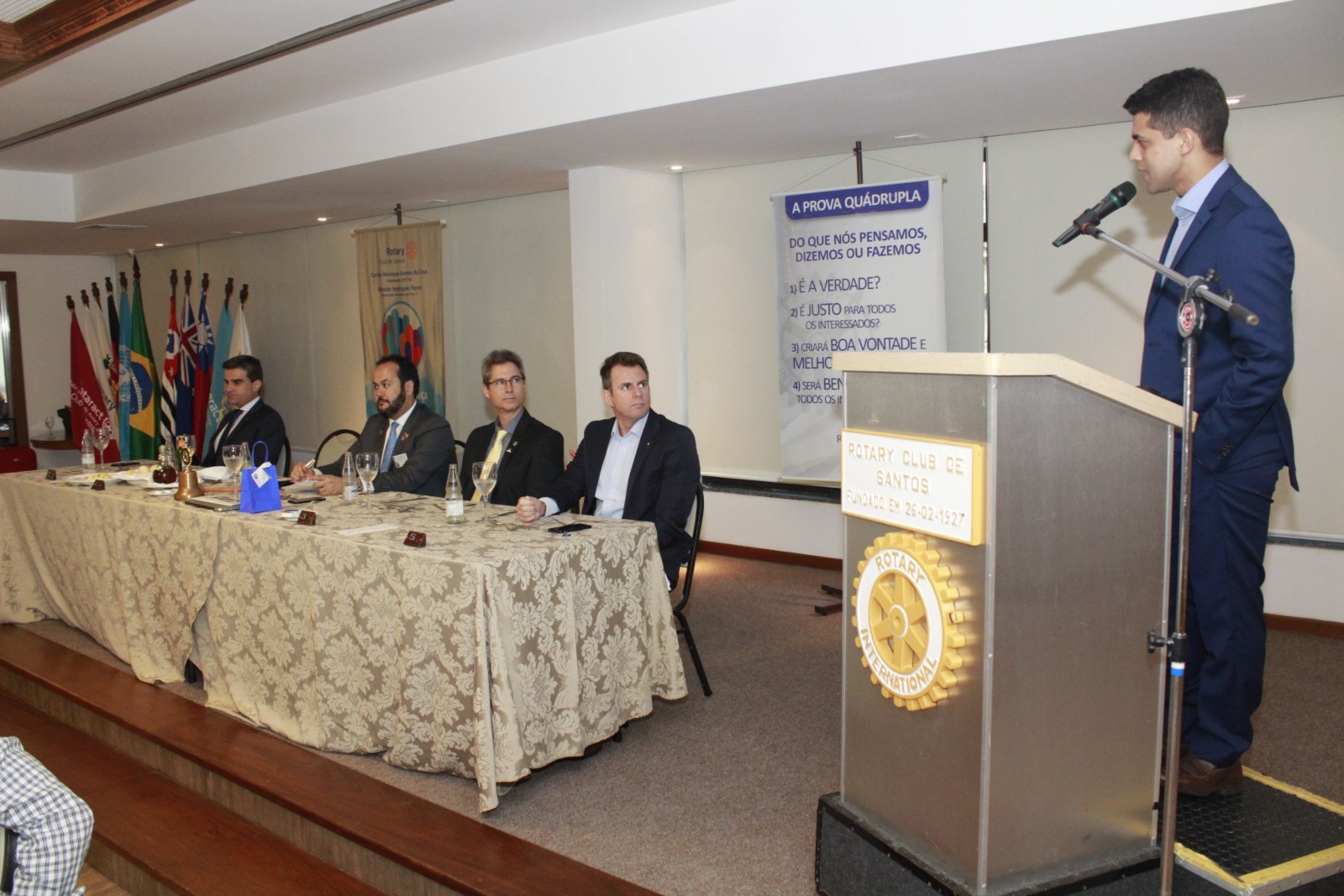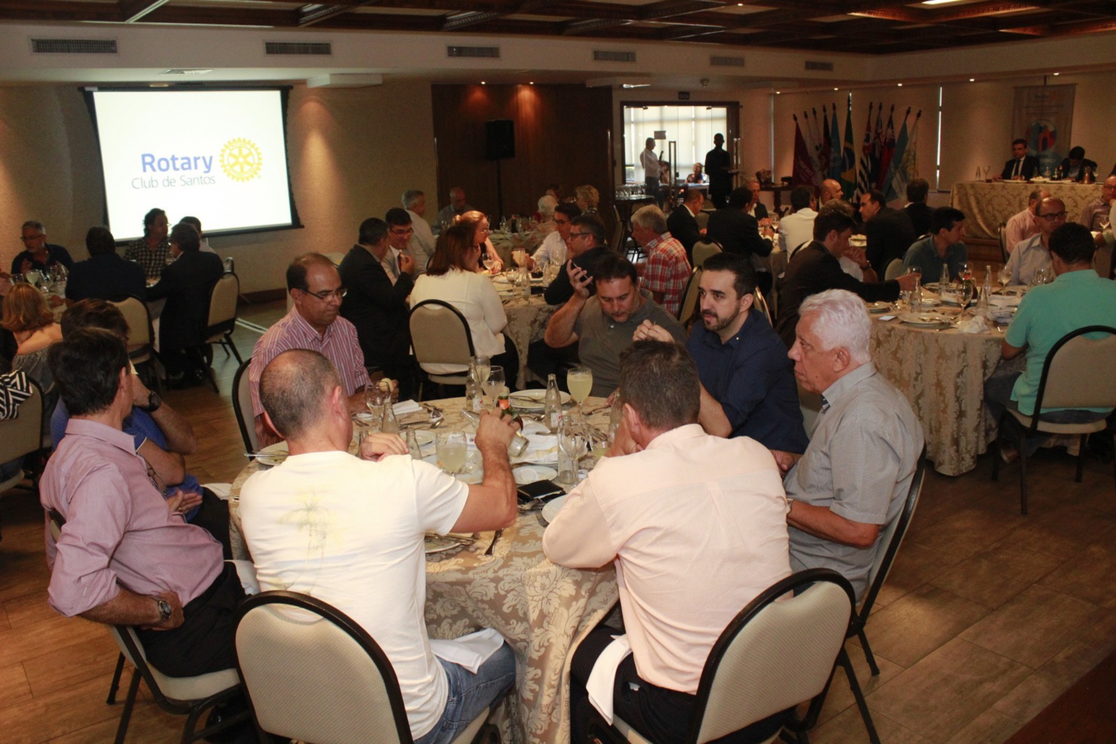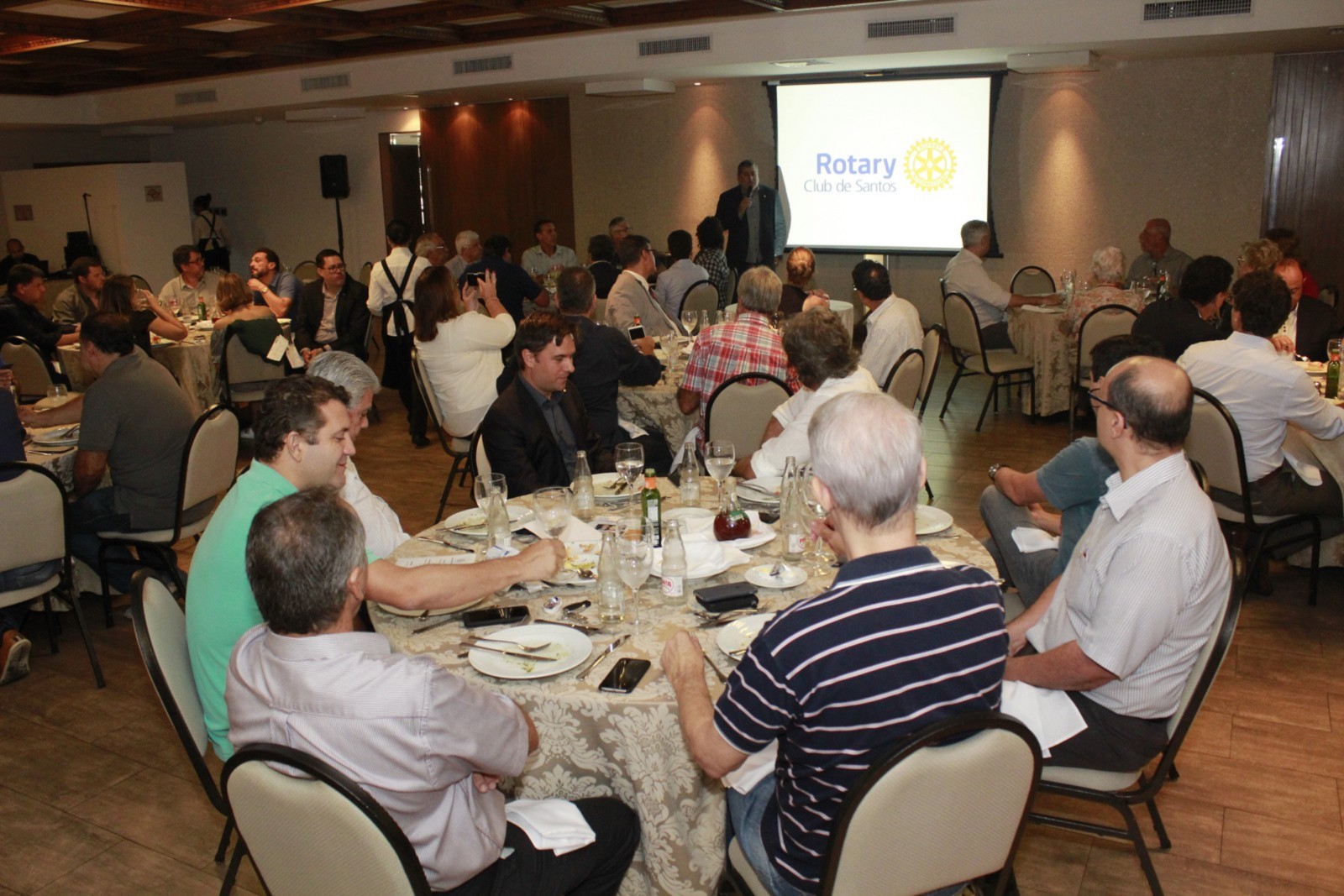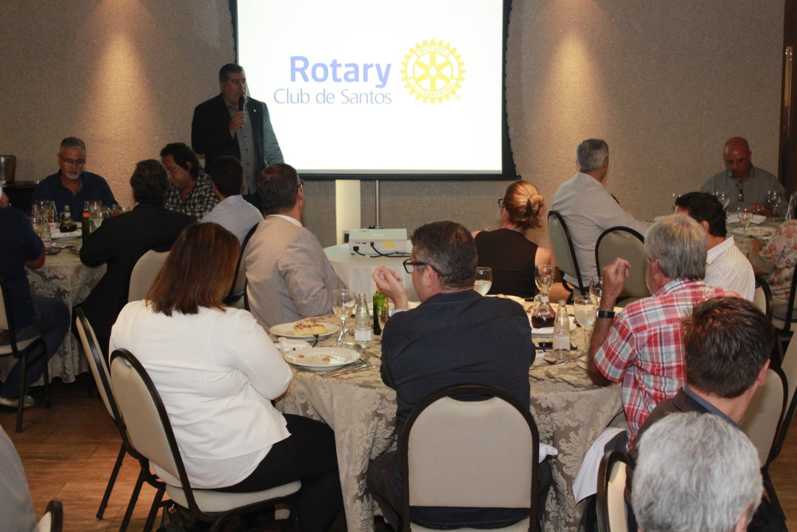 Após a apresentação, foi dado inicio a palestra da reunião, que teve como tema: Prestação de contas do Mandato e Realizações em Santos, em qual o Deputado Estadual Caio França foi palestrante. Cerca de 80 pessoas estiveram presentes entre Companheiros (as), cônjuges, convidados, Intercambistas e Rotaractianos.