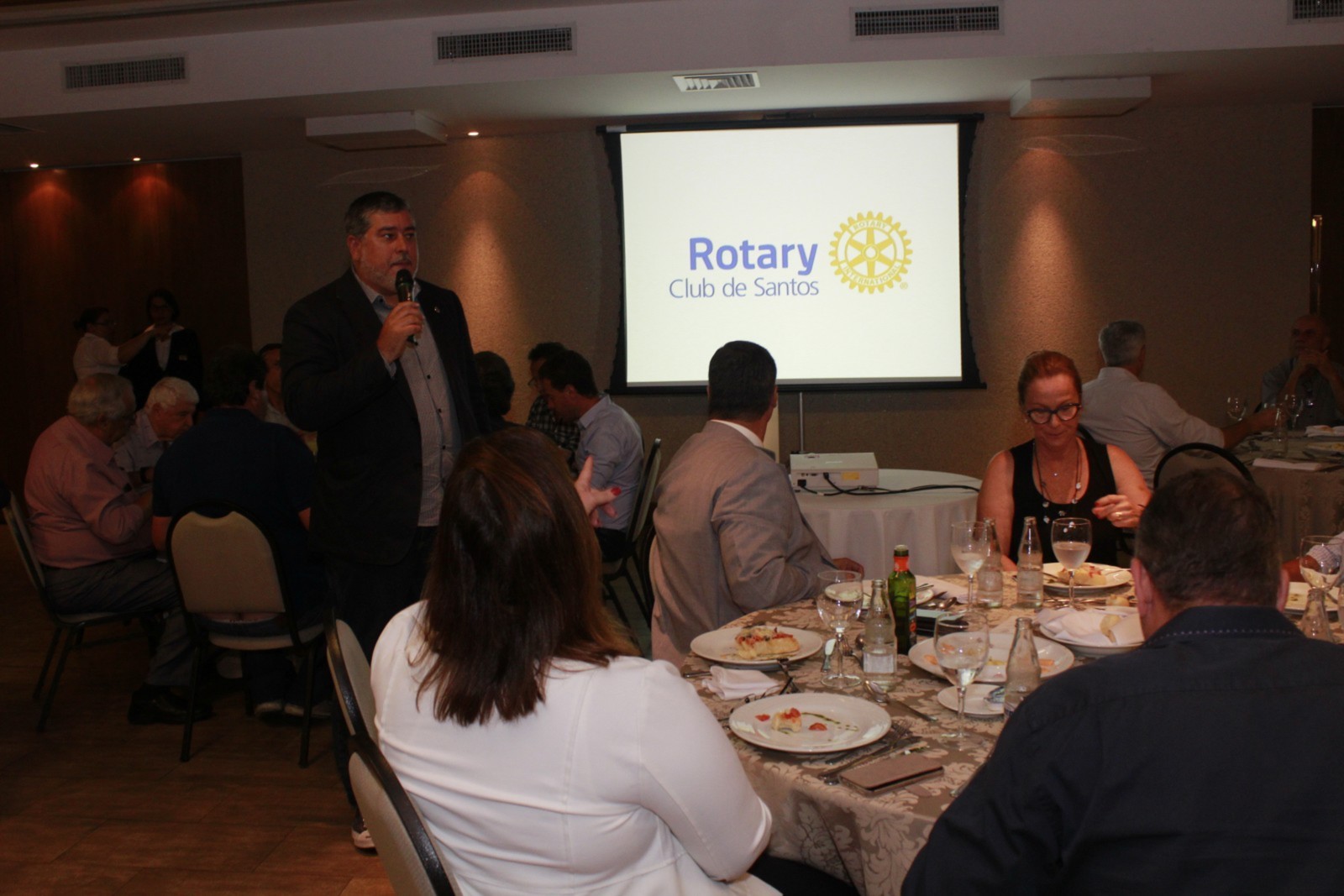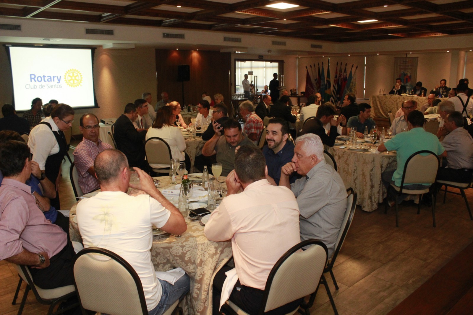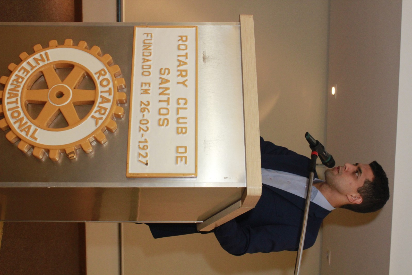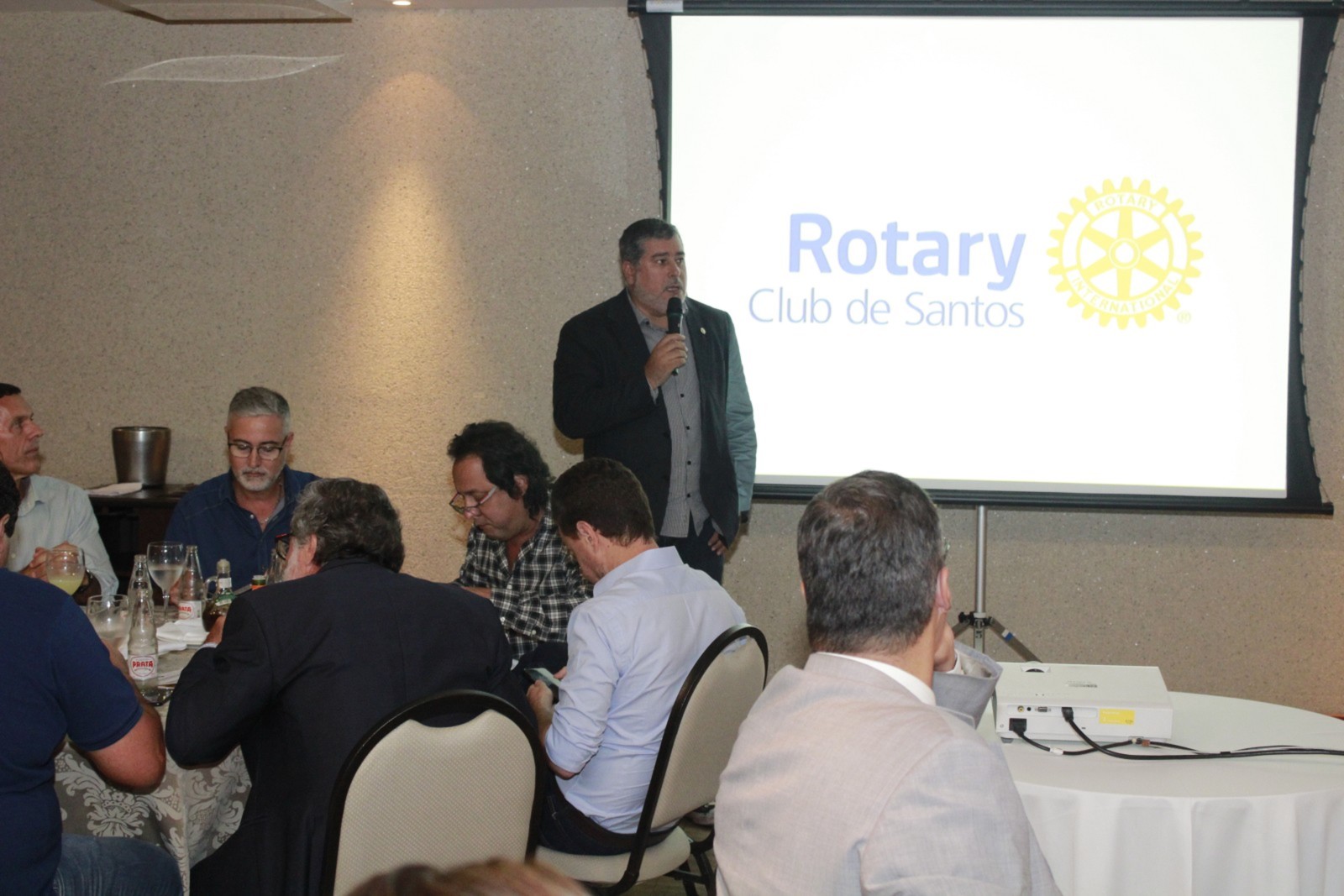Após a apresentação, foi dado inicio a palestra da reunião, que teve como tema: Prestação de contas do Mandato e Realizações em Santos, em qual o Deputado Estadual Caio França foi palestrante. Cerca de 80 pessoas estiveram presentes entre Companheiros (as), cônjuges, convidados, Intercambistas e Rotaractianos.